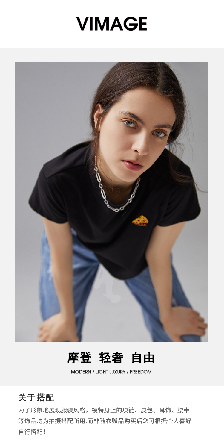 VIMAGE纬漫纪夏季新款透气舒适宽松圆领短袖T恤上衣V1502113