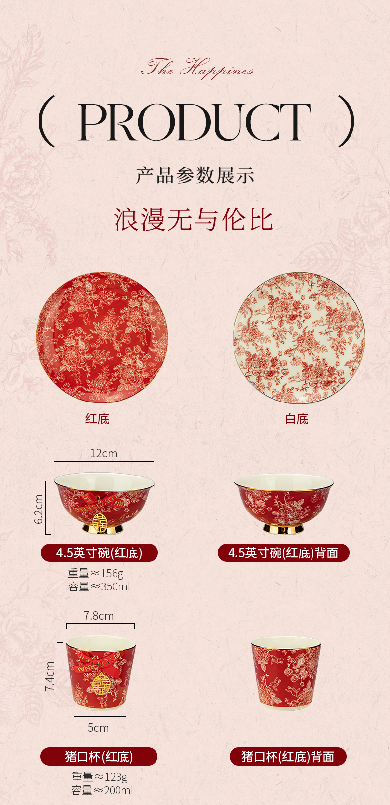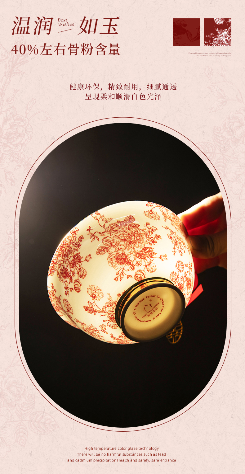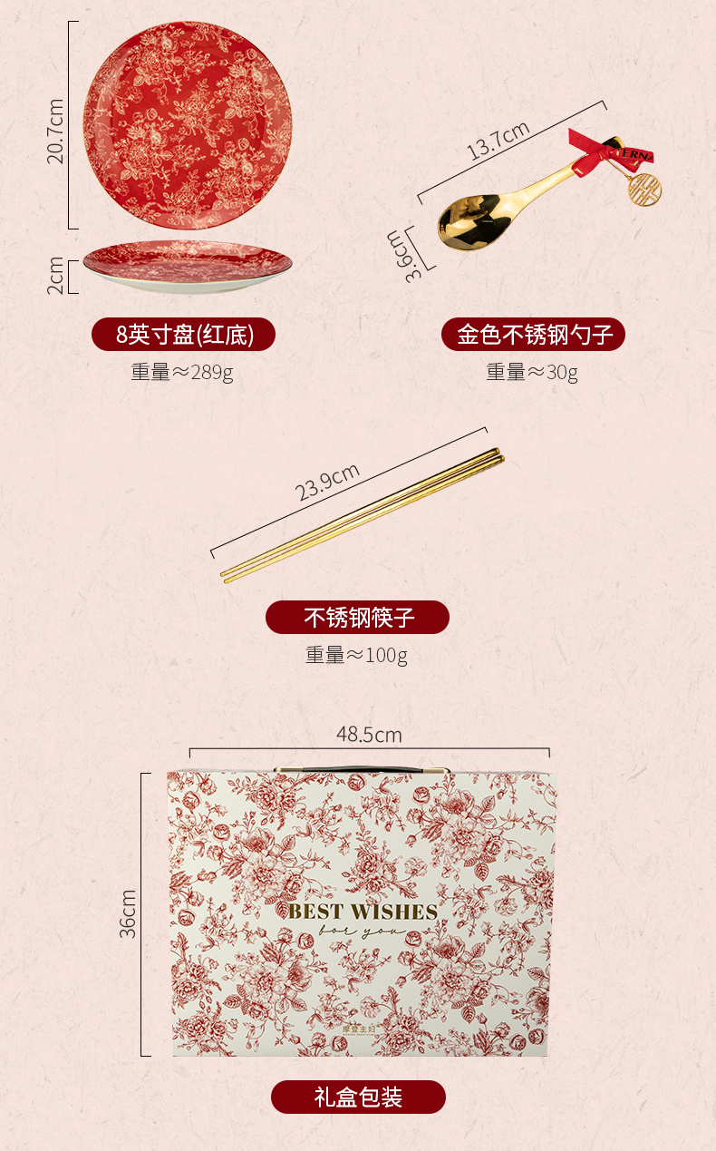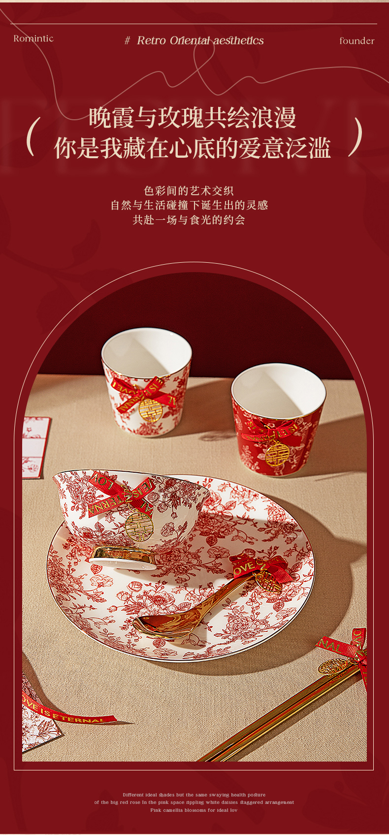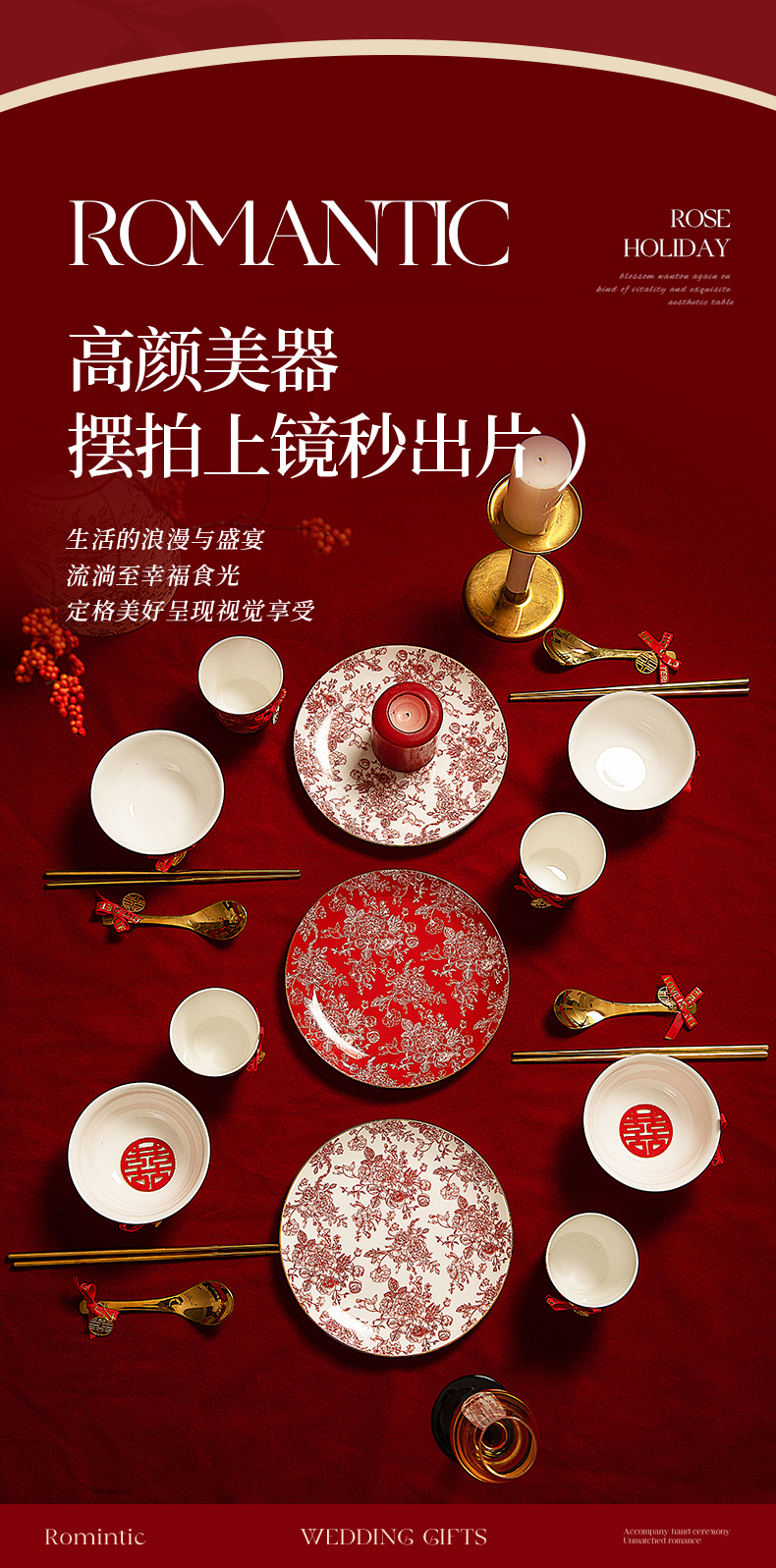摩登主妇玫瑰假日订婚结婚新婚礼物新年乔迁新居骨瓷碗碟餐具套装
