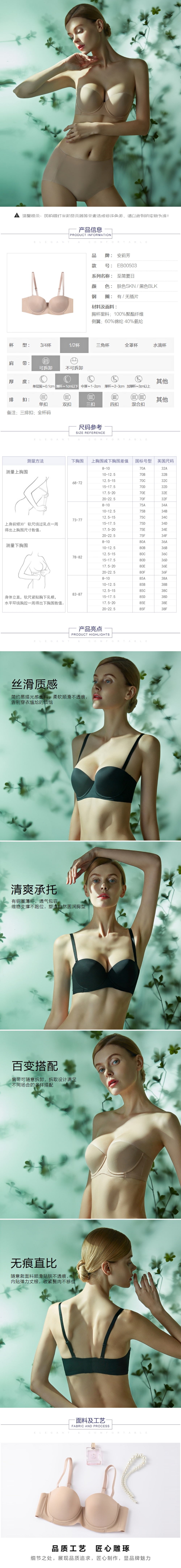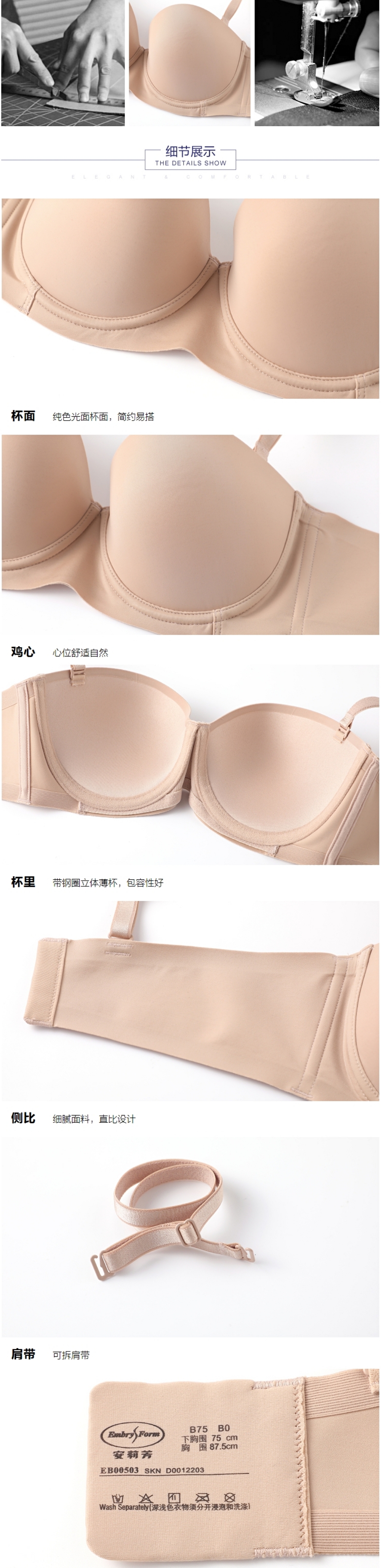 安莉芳薄款大码光面文胸女士半杯无肩带大胸无痕内衣EB00503