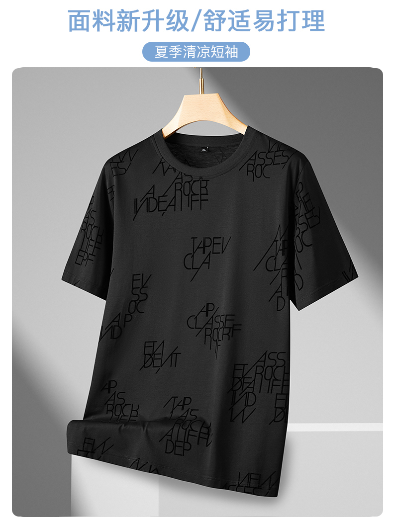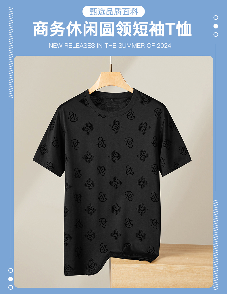 【丝光棉】【新款DPF】大依优型大码短袖T恤圆领加肥加大男装大号大码上衣男士休闲半袖夏季