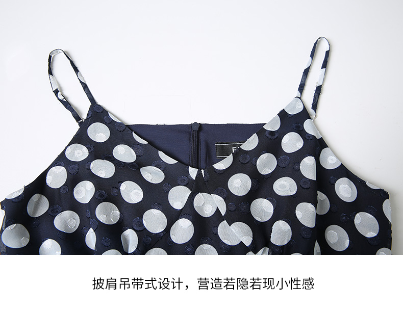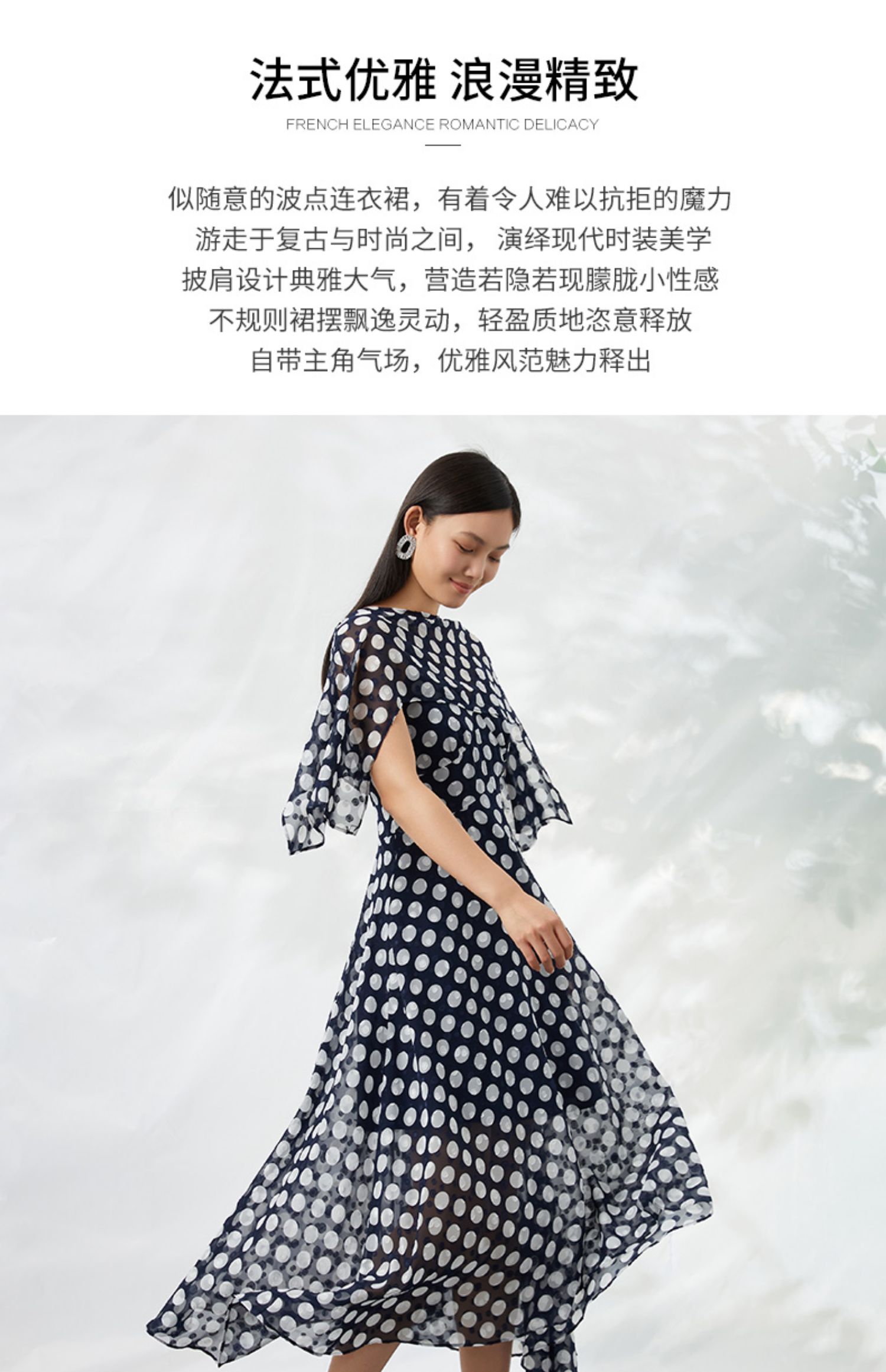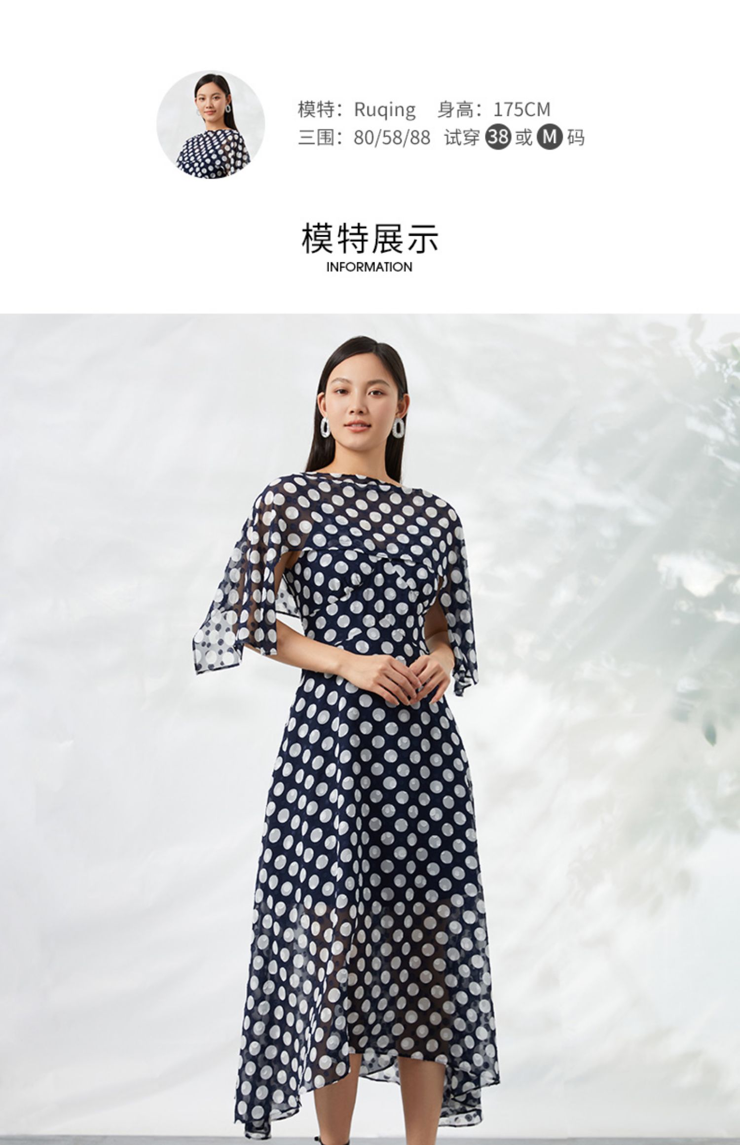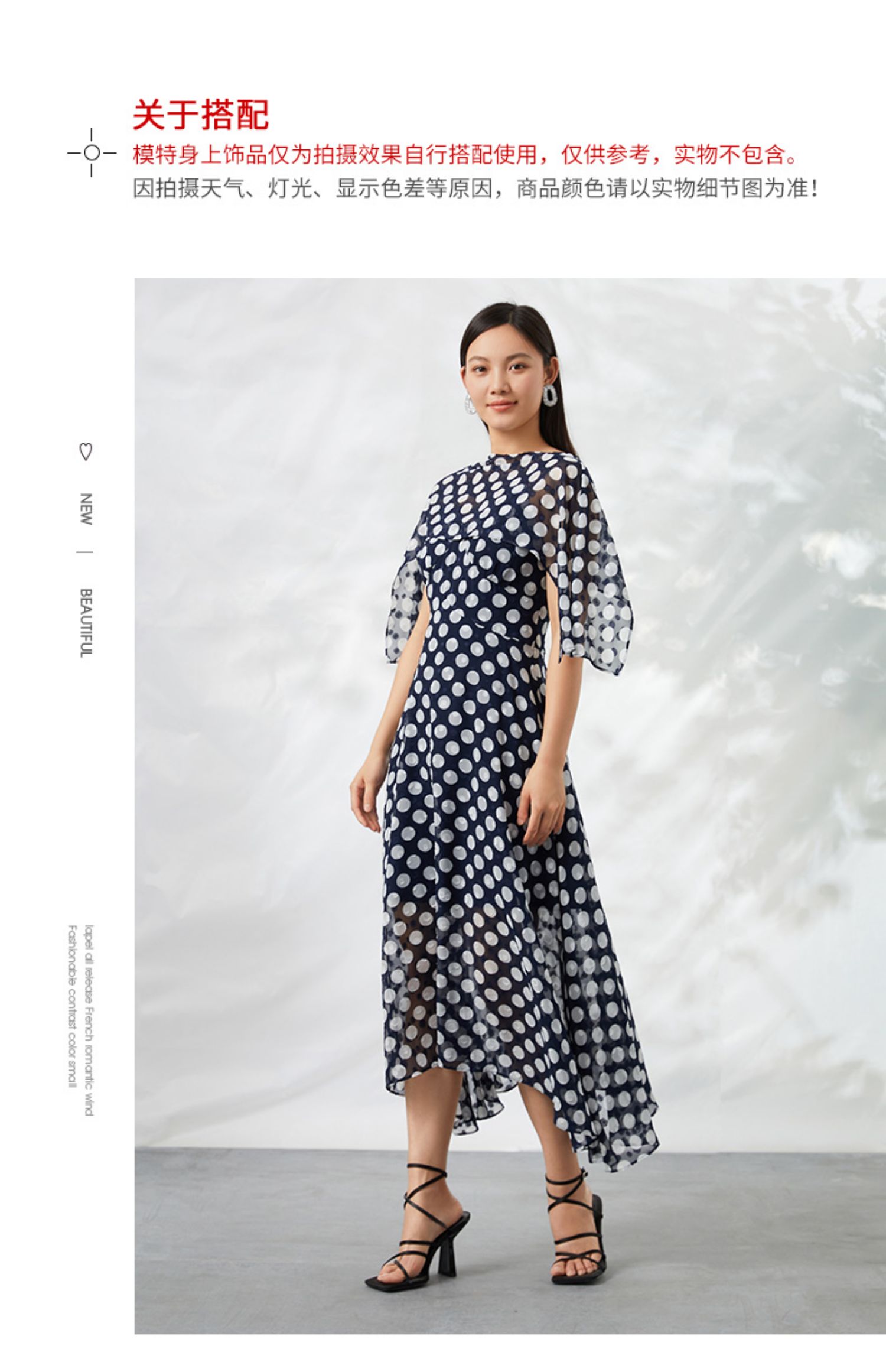 下架-EITIE爱特爱夏季新款时尚长款显瘦一字领波点撞色连衣裙B2207978