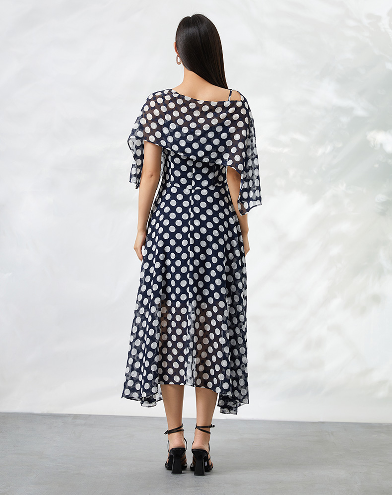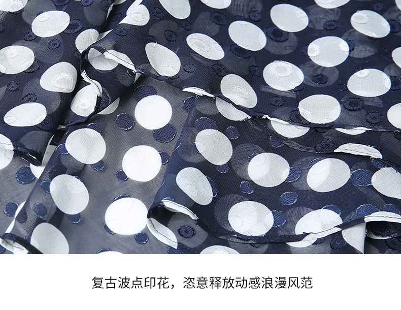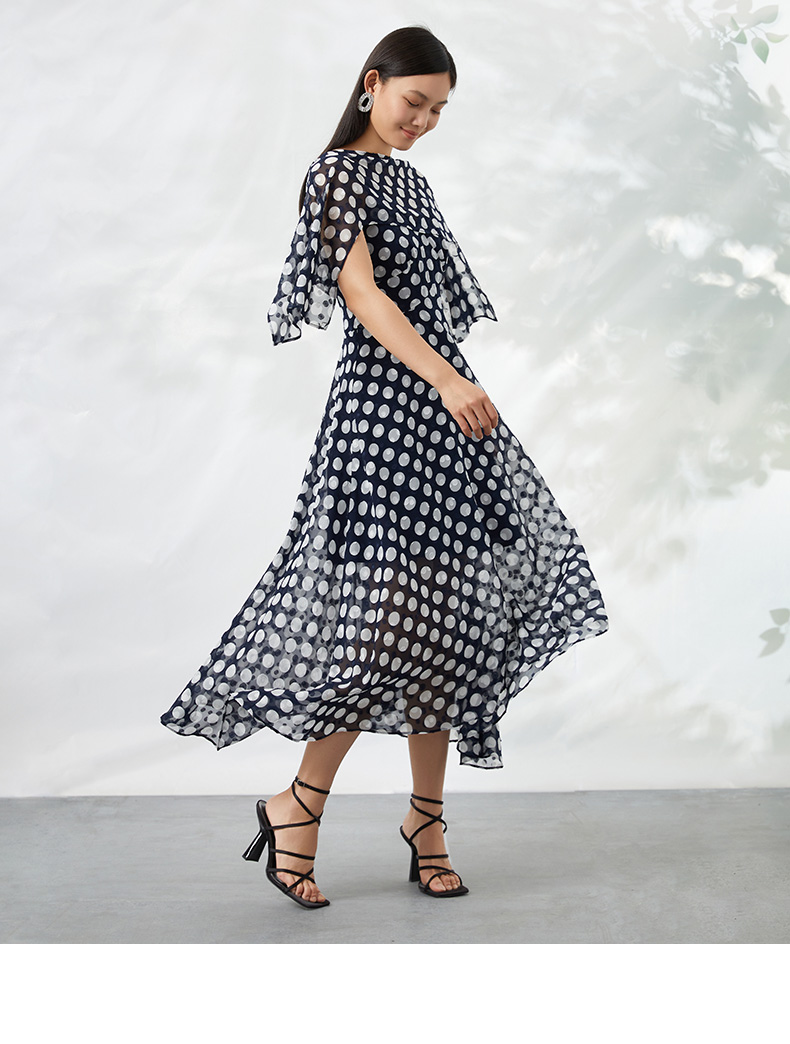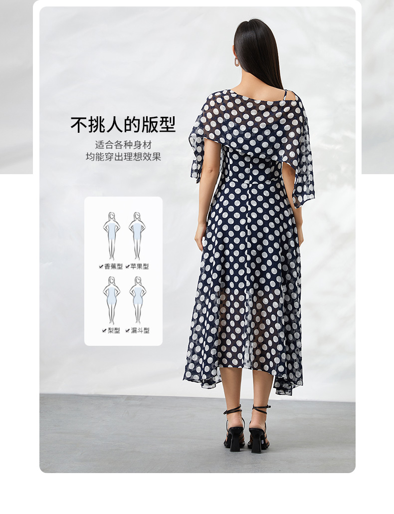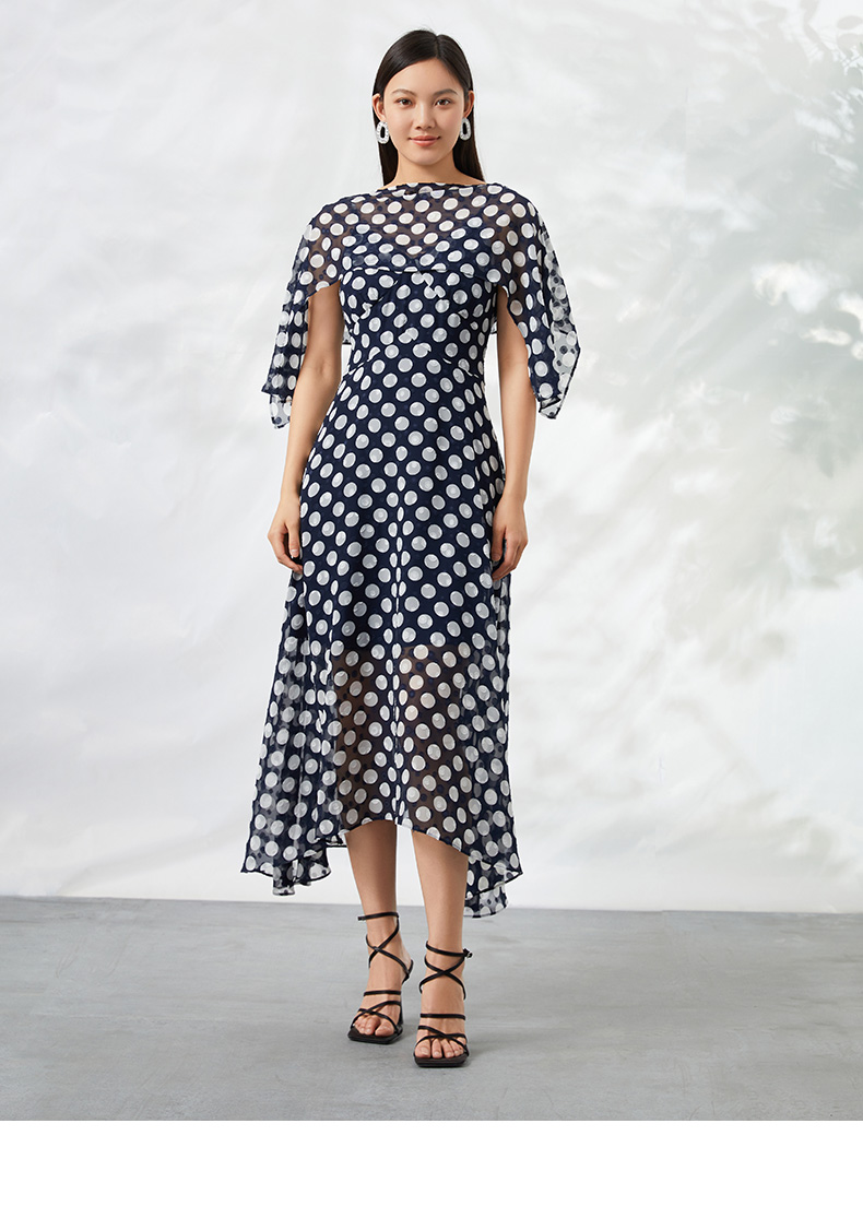 下架-EITIE爱特爱夏季新款时尚长款显瘦一字领波点撞色连衣裙B2207978