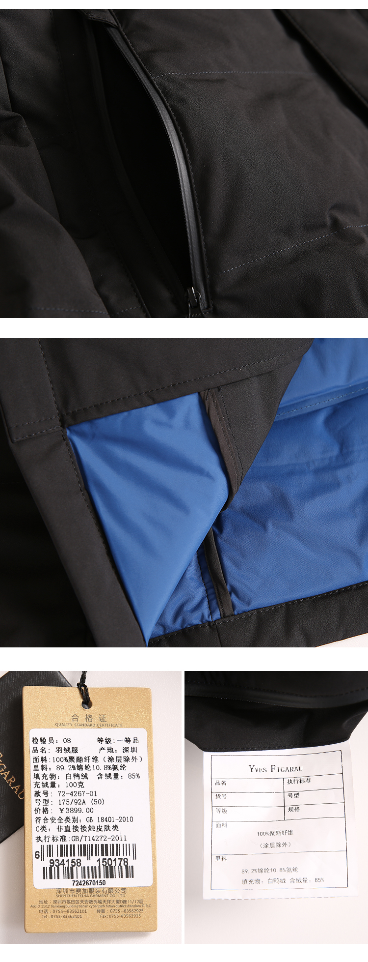 YvesFigarau伊夫·费嘉罗冬季厚款商务休闲时尚保暖中长款立领羽绒服724267