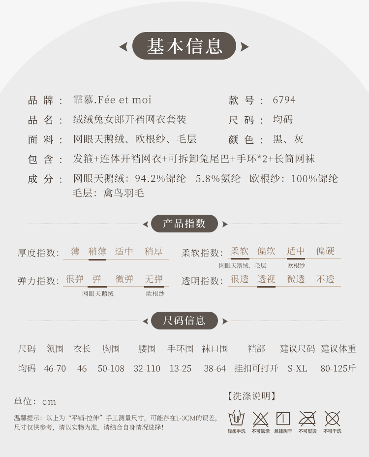 【情趣内衣】霏慕性感兔女郎网衣制服套装激情大码情趣内衣魅力女6794