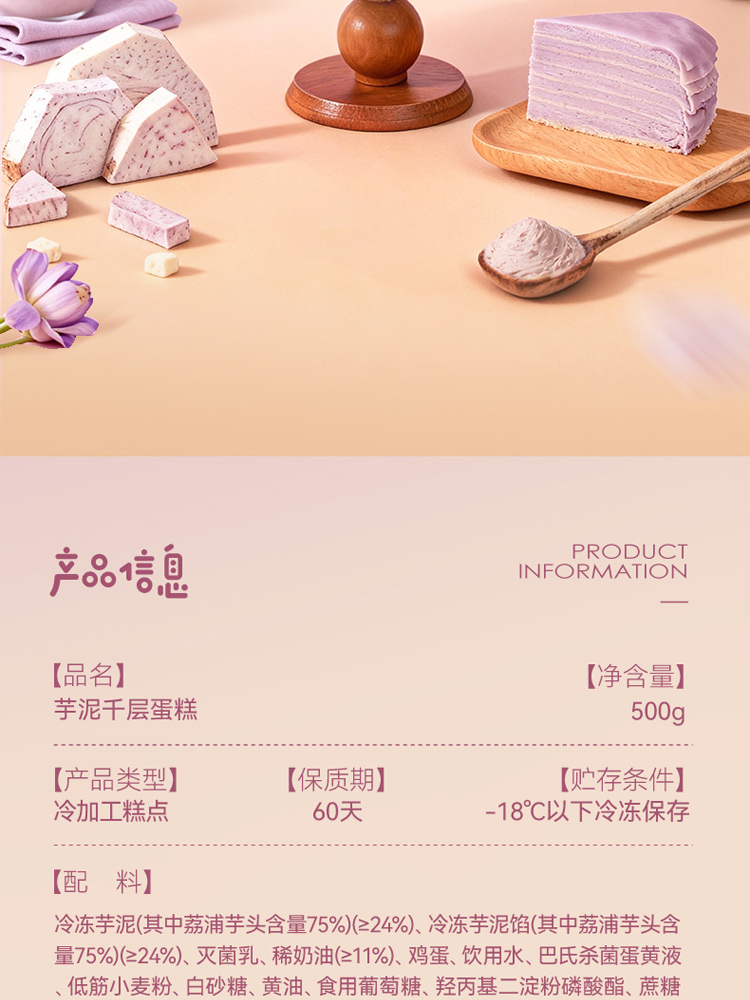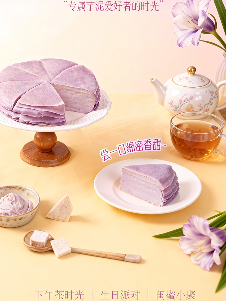 【代理专享】芋泥千层6英寸生日蛋糕动物奶油下午茶甜品500g