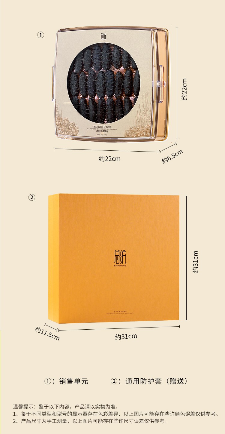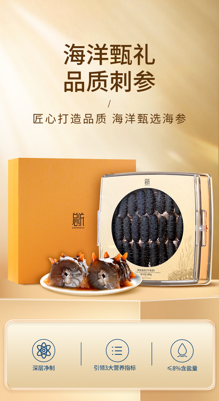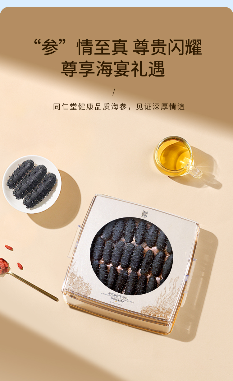 【正宗同仁堂品牌】北京同仁堂 总统牌 净制海参(干海参)140克(81-100头/500克)去砂嘴 去内脏 参体肥厚SY