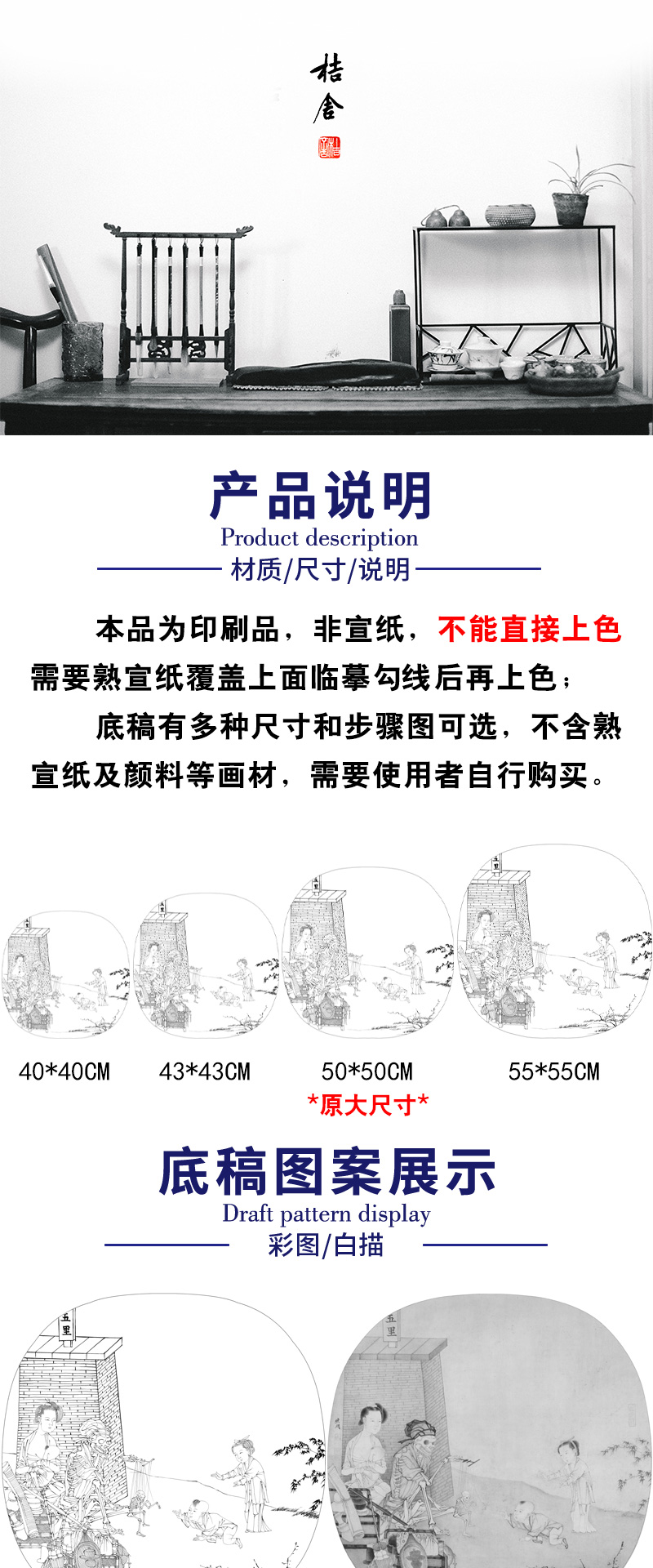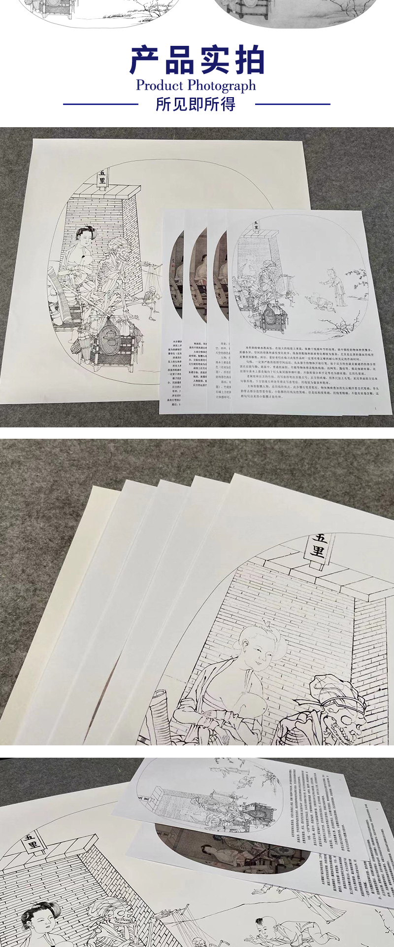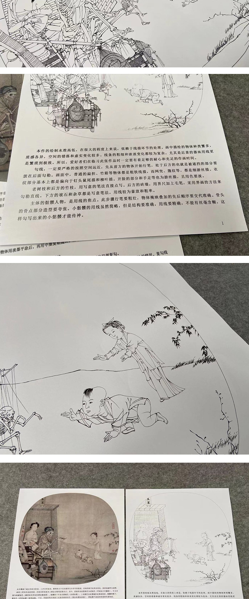 【有步骤、大彩图】李晓明工笔画白描底稿圆形小品《骷髅幻戏图》骷髅初学者临摹人物线稿KC18