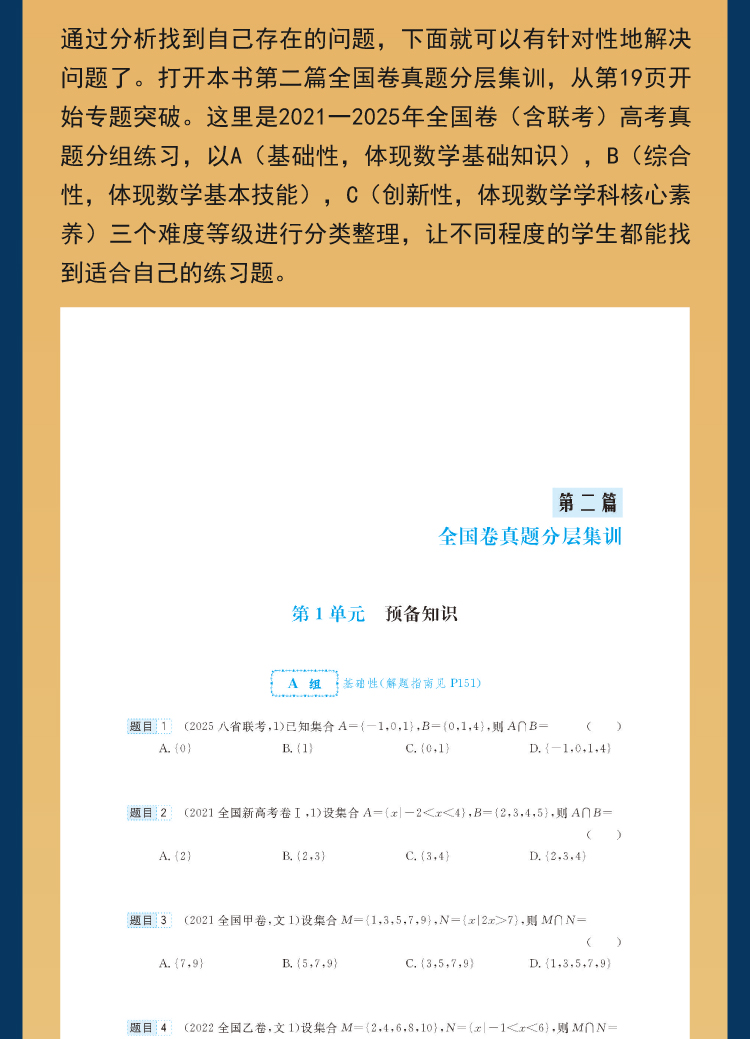 本书是新高考“红宝书”的最新版本,根据新高考考向,选取了2021-2025五年的全国卷高考数学试题。通过对全国2021年新高考以来历年(五年)的高考真题进行分析,阐述新高考数学怎么考?考什么?本书既是一本很好的讲解图书,更是一本很有价值的练习册!练真题、学方法!引领全国教师教好高中数学,全国学生如何学好高中数学! 全书分为分为11章,对2021-2025五年的全国卷高考数学试题进行分类汇编;新高考数学试题解题指南单独成册,每题包含命题意图、参考答案(既有通性通法,也有奇思妙解)。