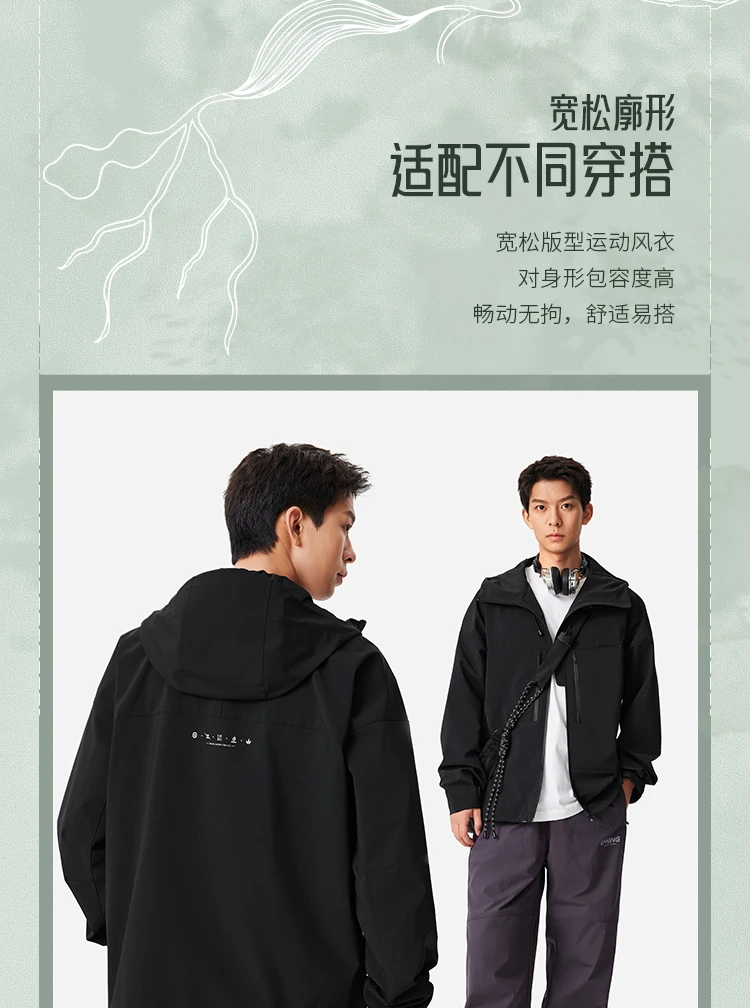 【L/XL/2XL断码】李宁CROSS男子防泼水宽松运动风衣AEMU009【库存有限,如无货将做退款,介意慎拍!】
