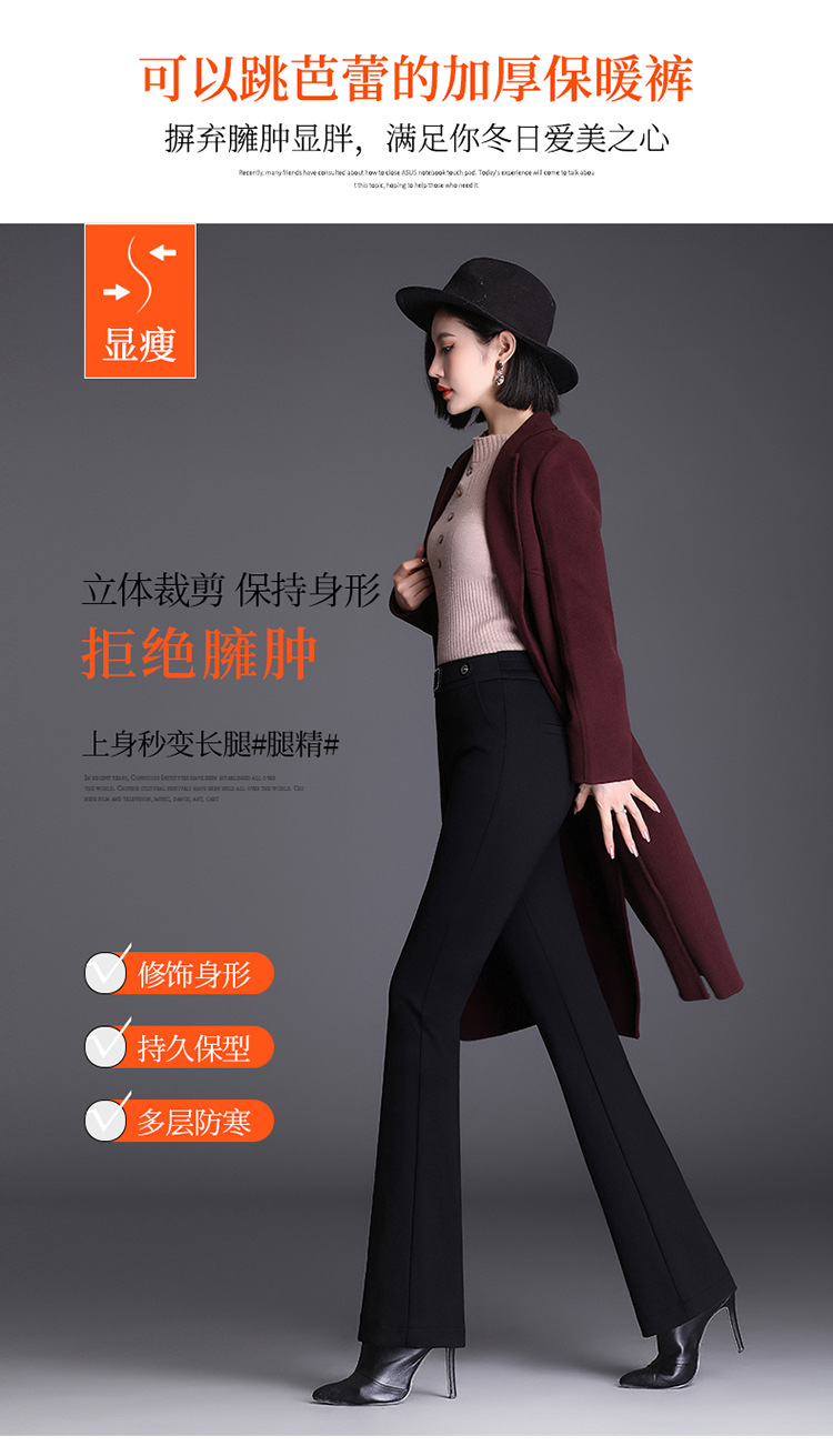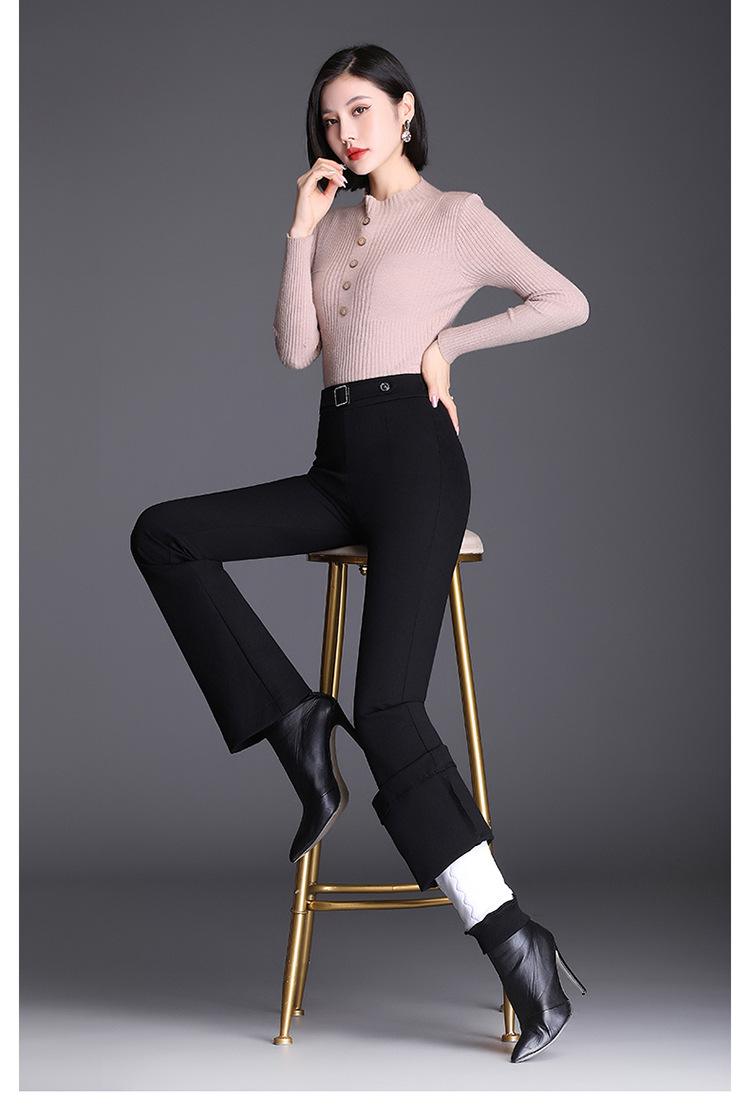 MYX-HWM-8901-Y,高腰喇叭裤女秋冬季2021新款加绒保暖棉裤休闲女装裤微喇裤长裤