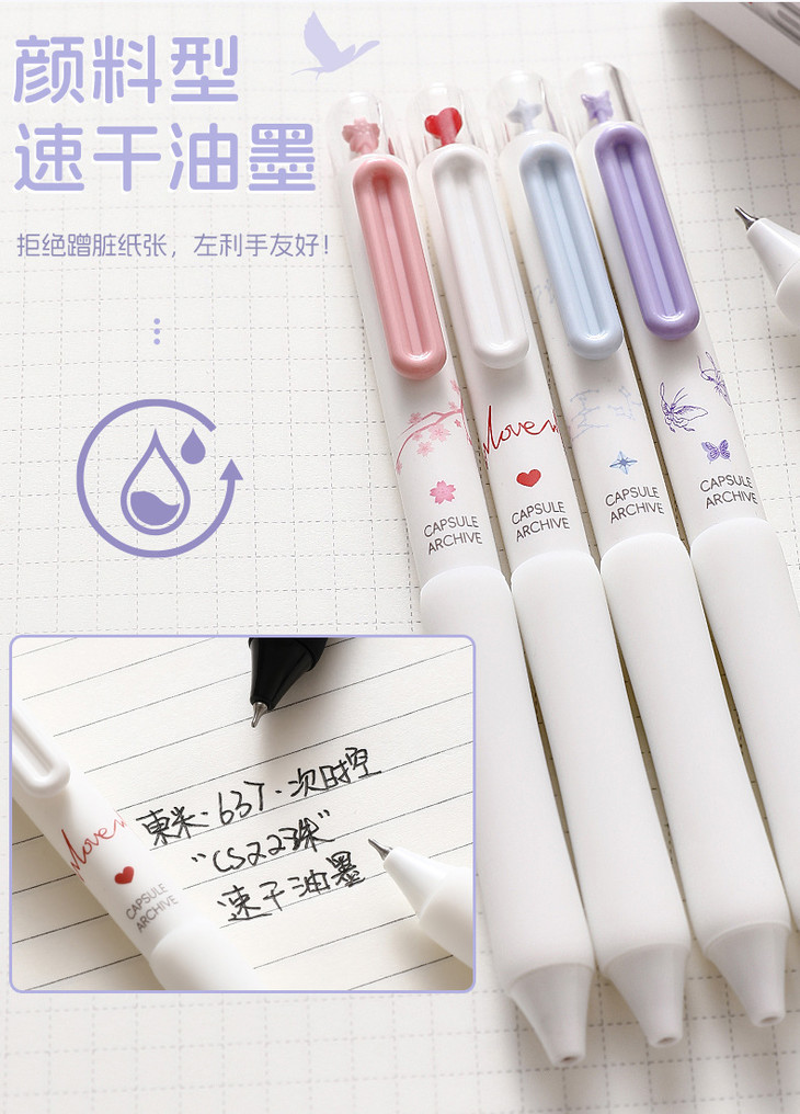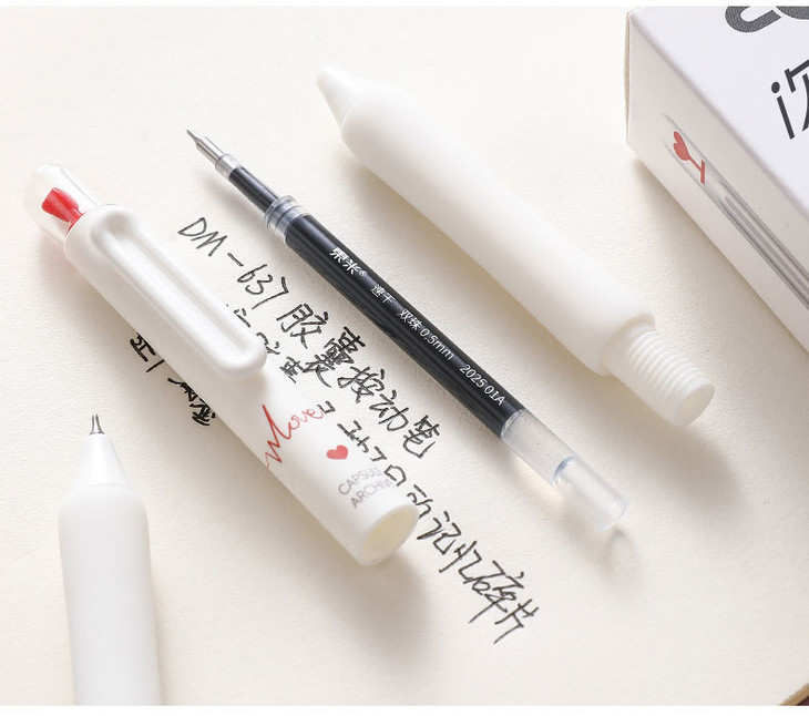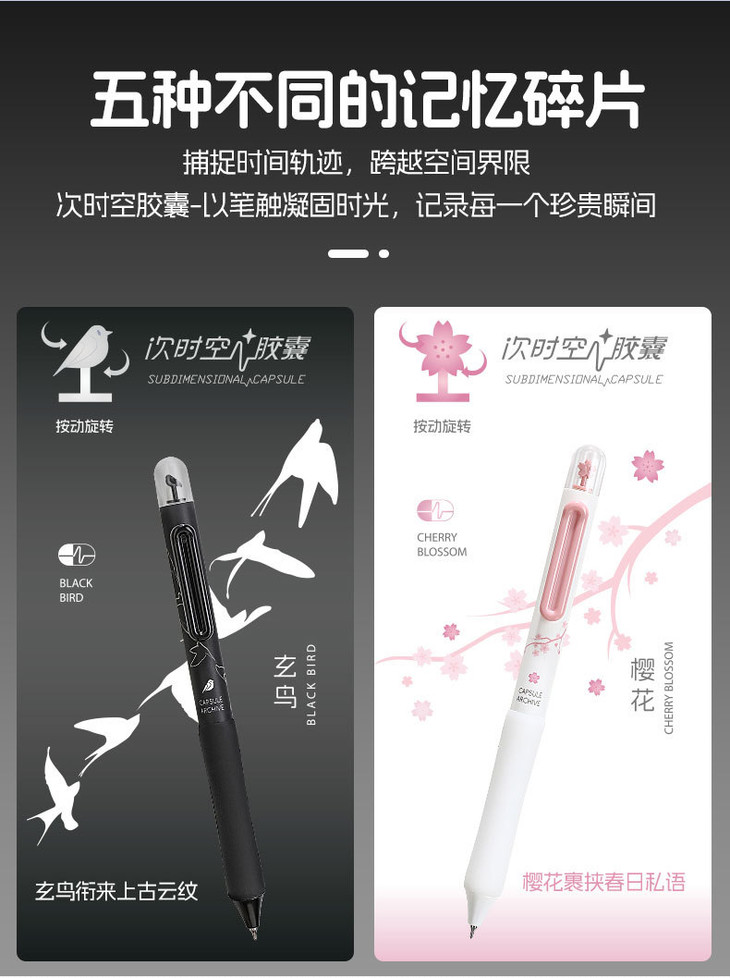 开学季!秒杀5支装【笔夹按动出芯!每次按动摆件都会转动】时空胶囊旋转解压学生中性笔双珠CS速干高颜值刷题办公黑笔。ra