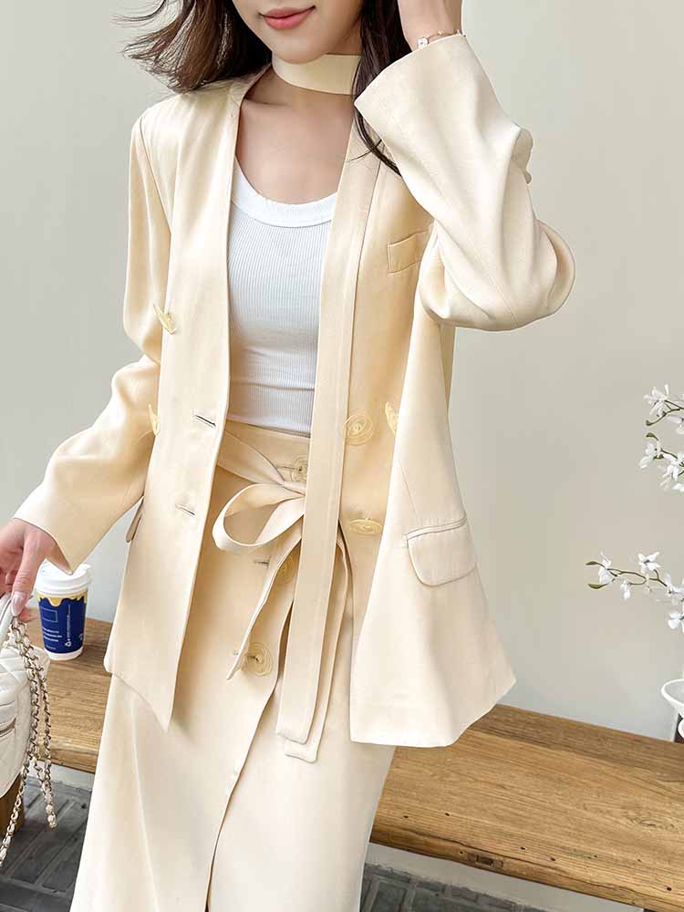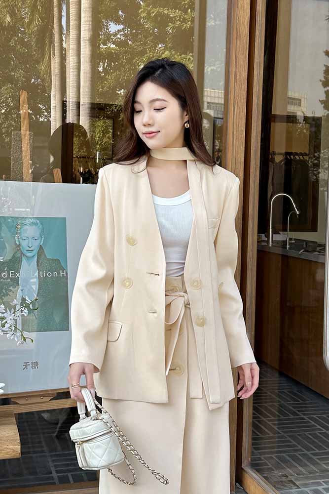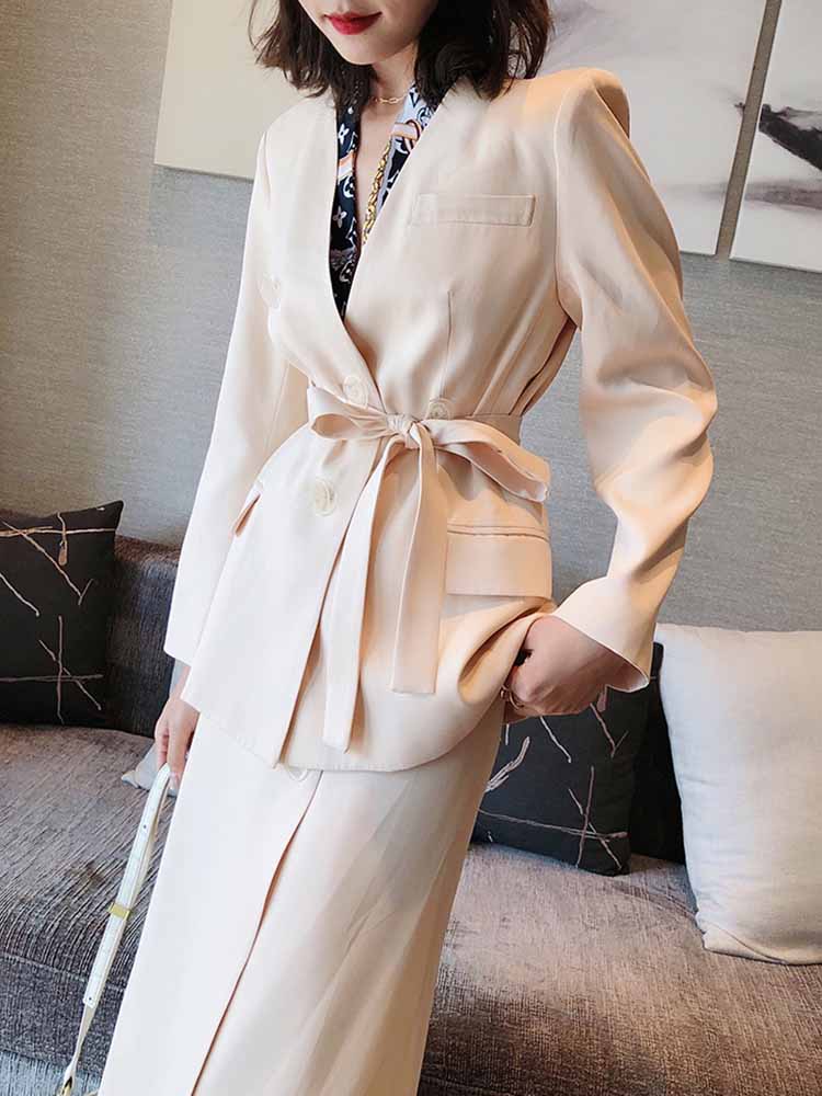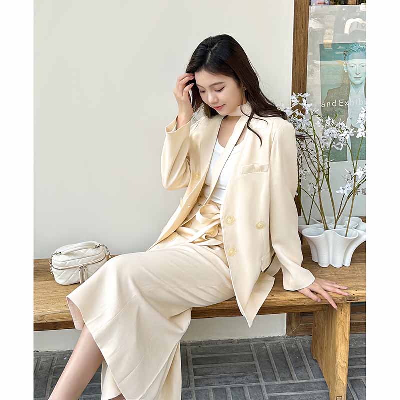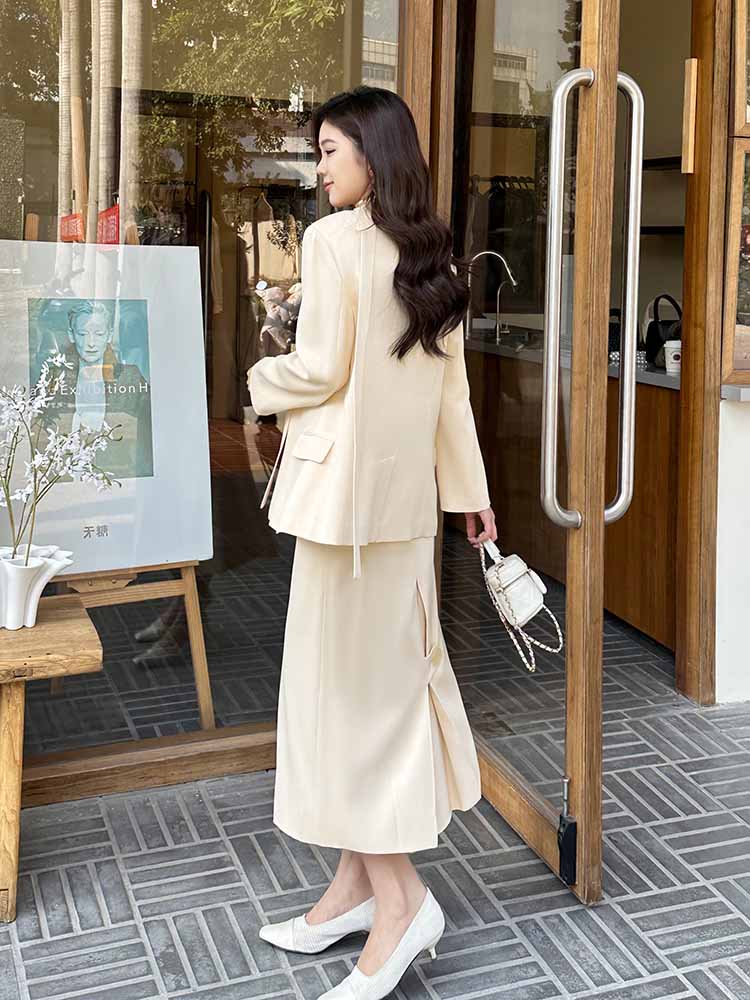 顺丰包邮洛诗琳99551高级感职场纯色通勤西装外套半身裙20908
