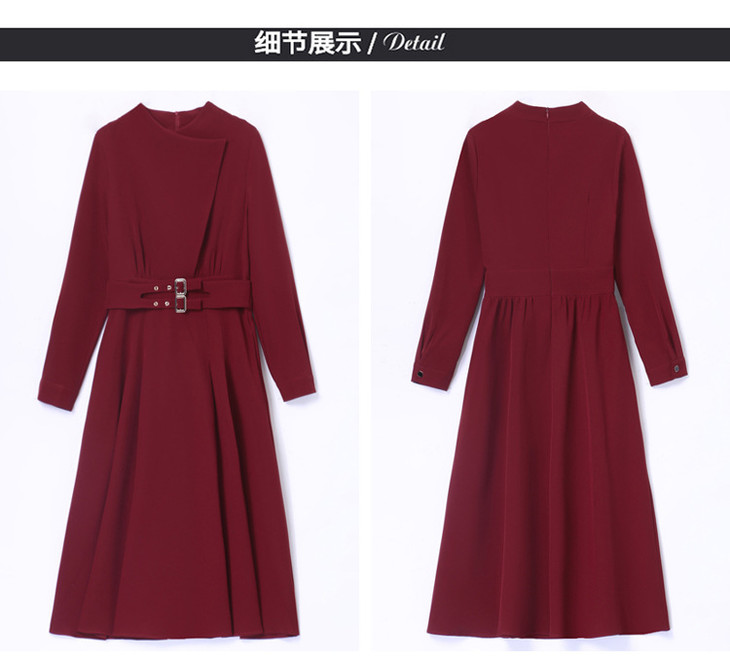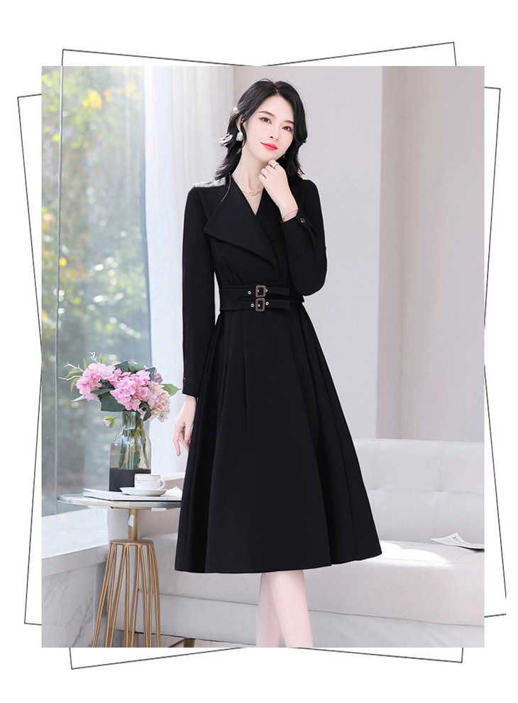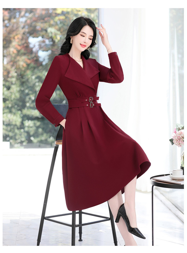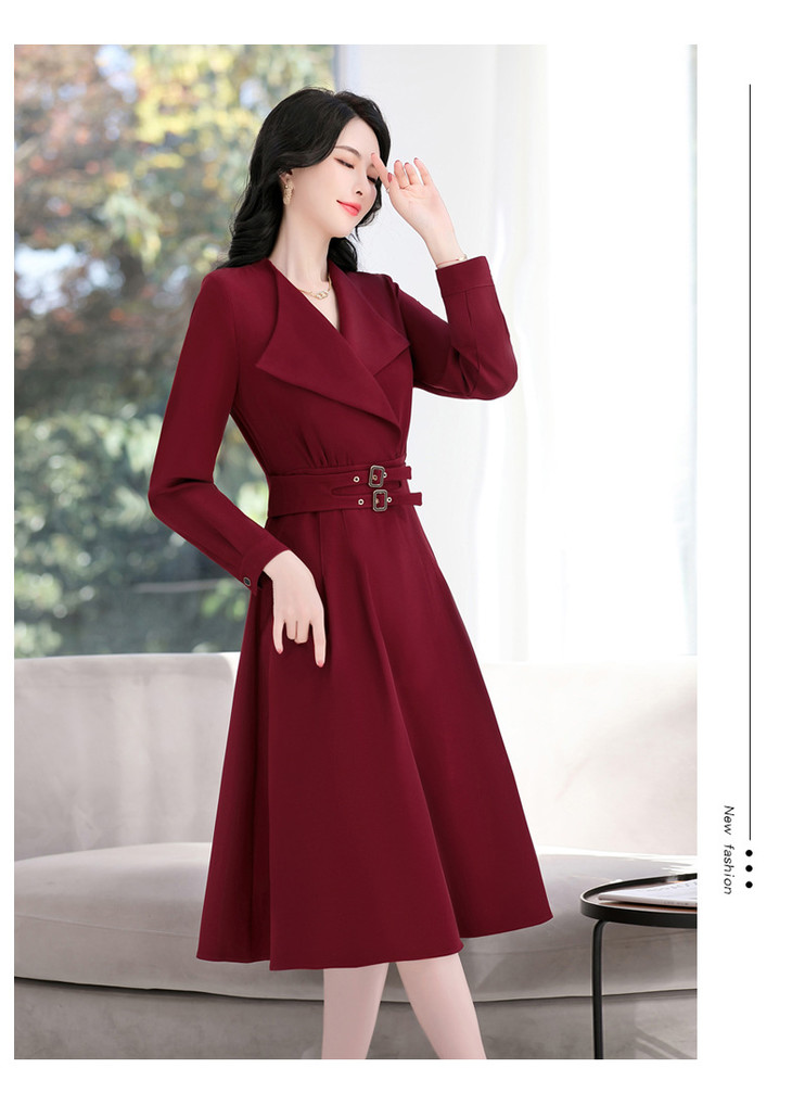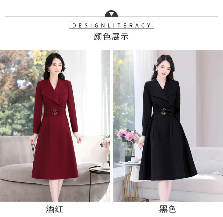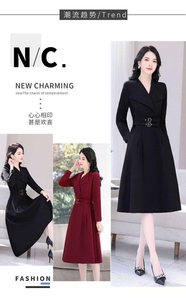 LJYNY2287 2022春季新品韩版修身显瘦纯色V领中长款系带连衣裙