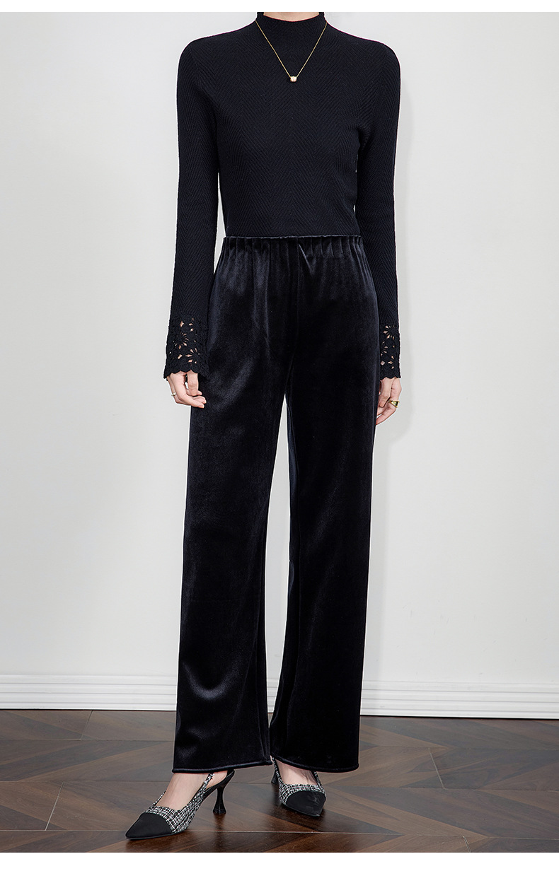 「高货wl」全新升级【铂金会员220/天猫299/差价79】(22158)洛诗琳气质垂坠感丝绒裤2025秋冬新中式百搭休闲长裤女
