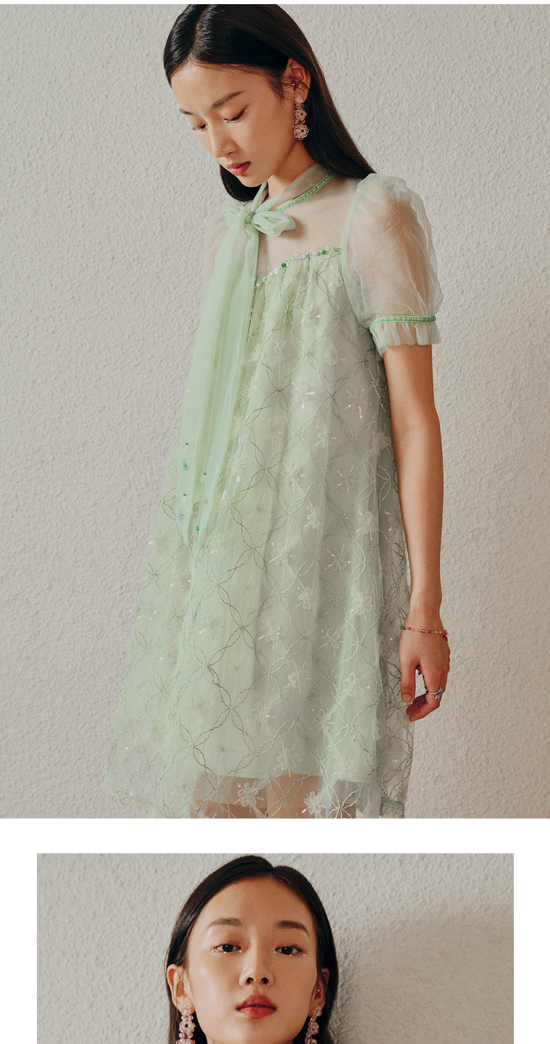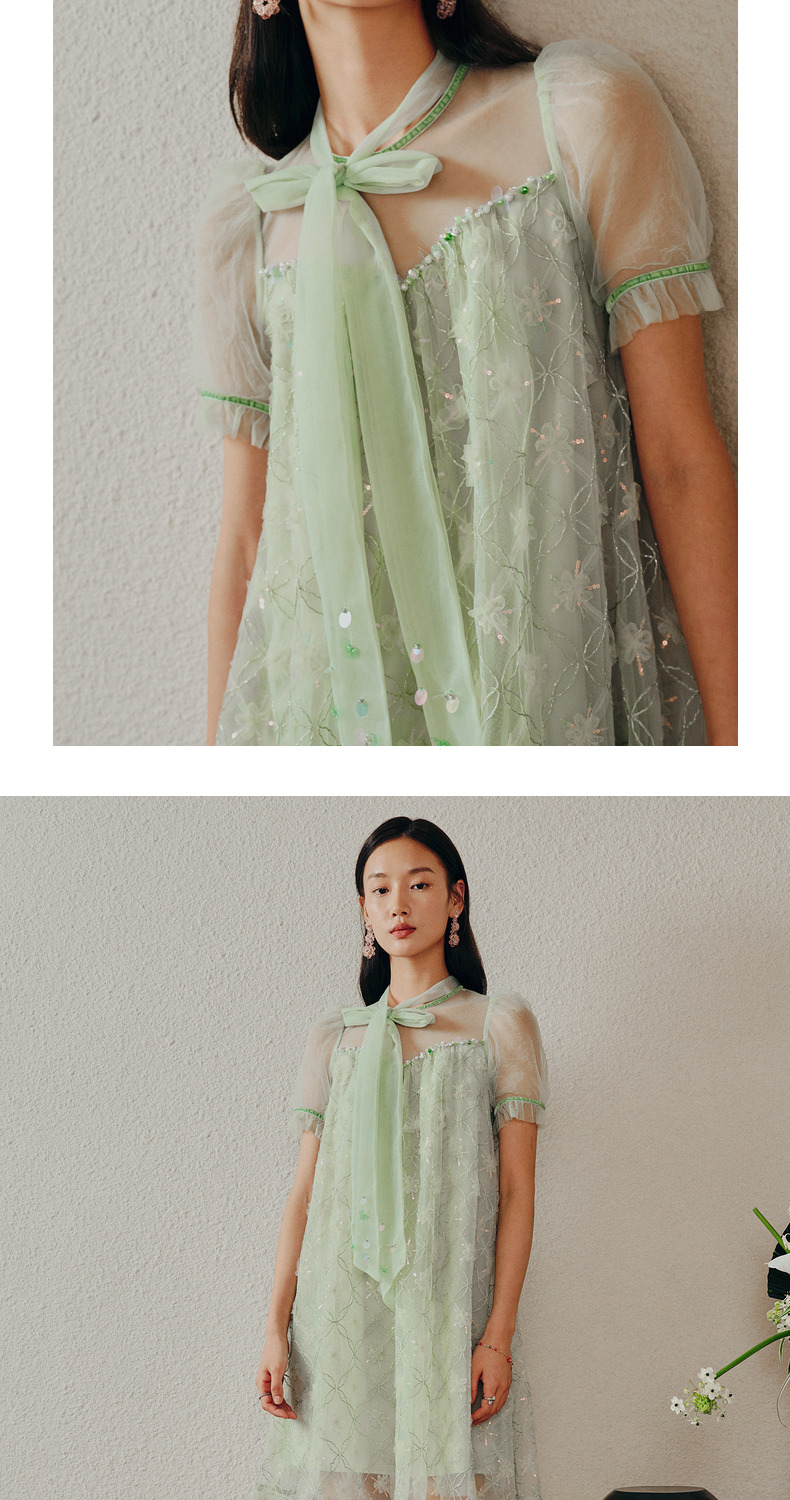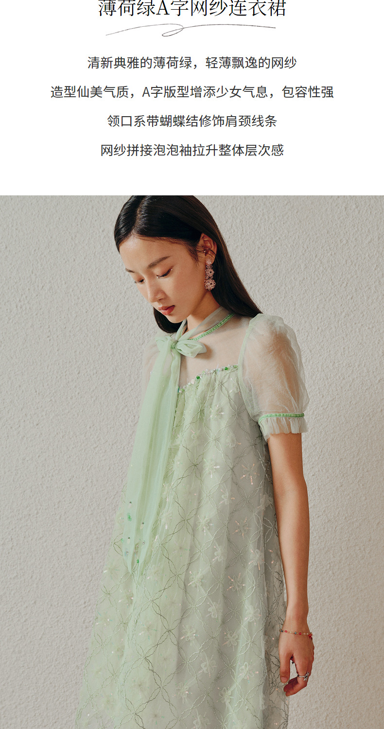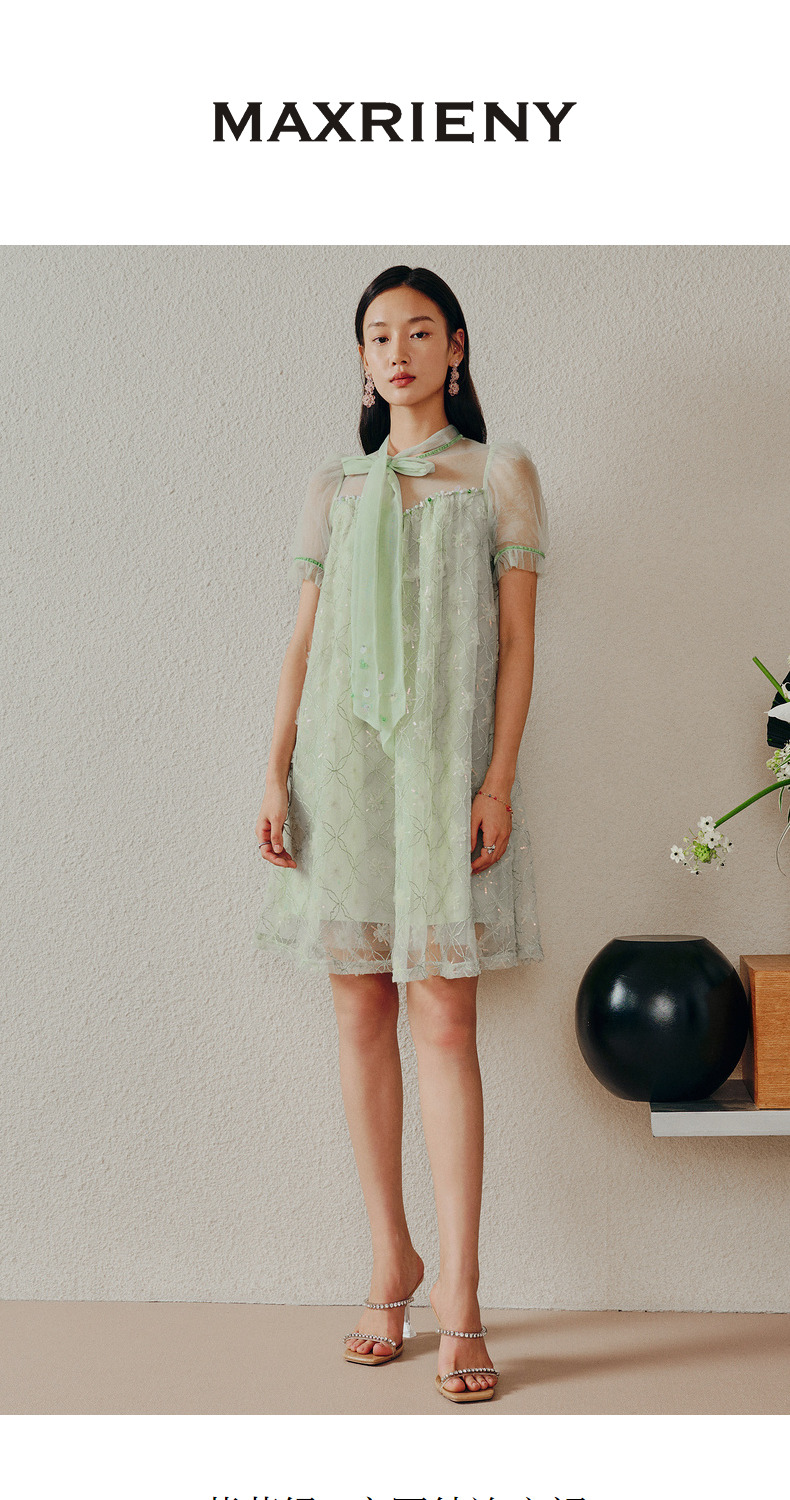 MAXRIENY欧式园艺风网纱连衣裙薄荷曼波风穿搭裙子(货号:MC88DR263)