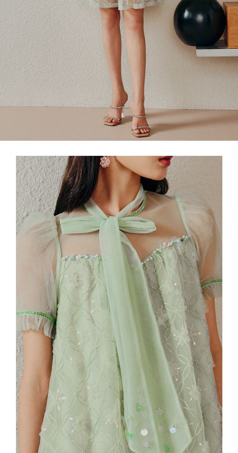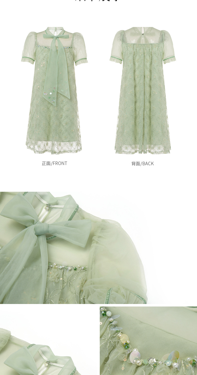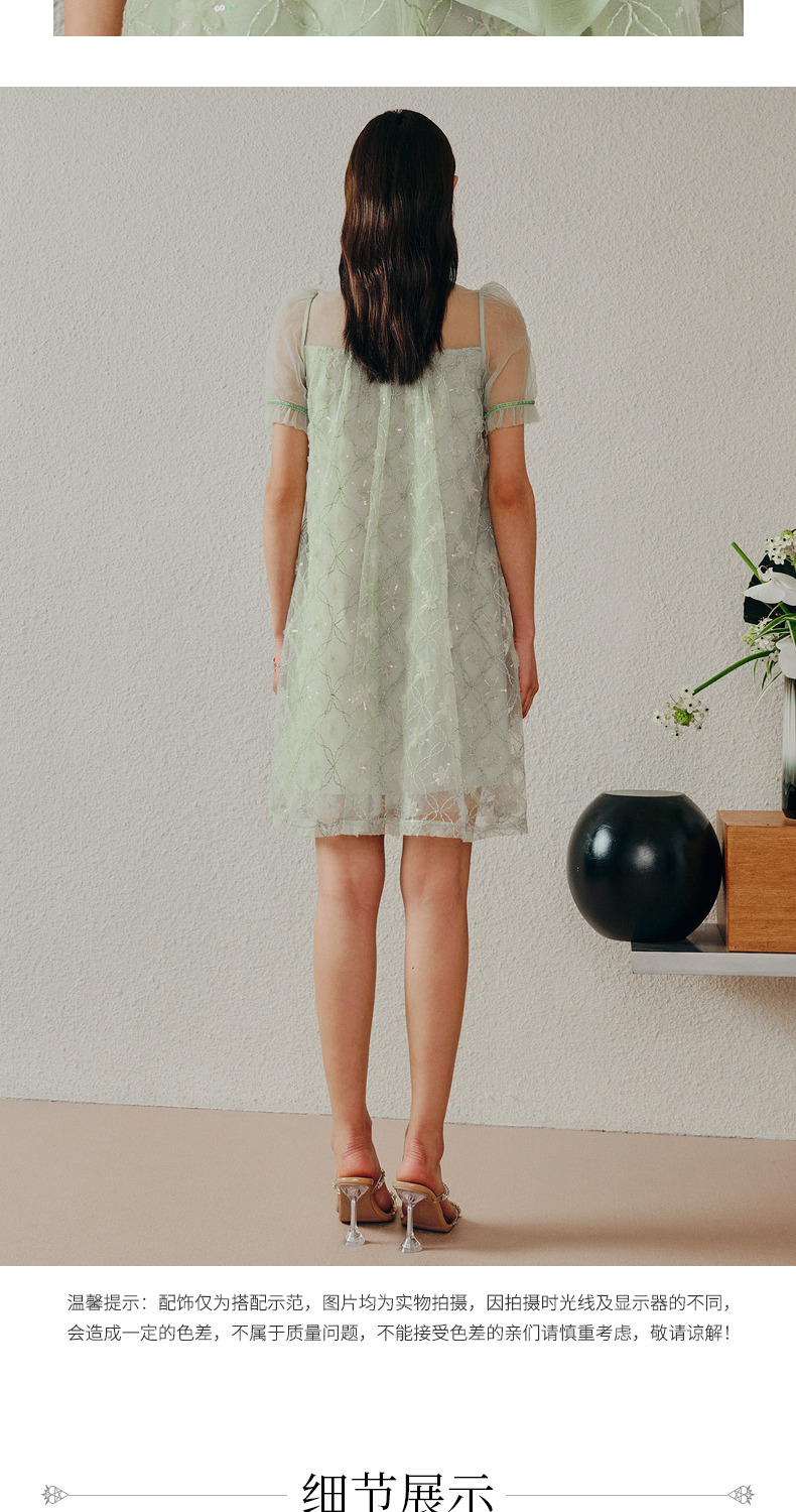 MAXRIENY欧式园艺风网纱连衣裙薄荷曼波风穿搭裙子(货号:MC88DR263)