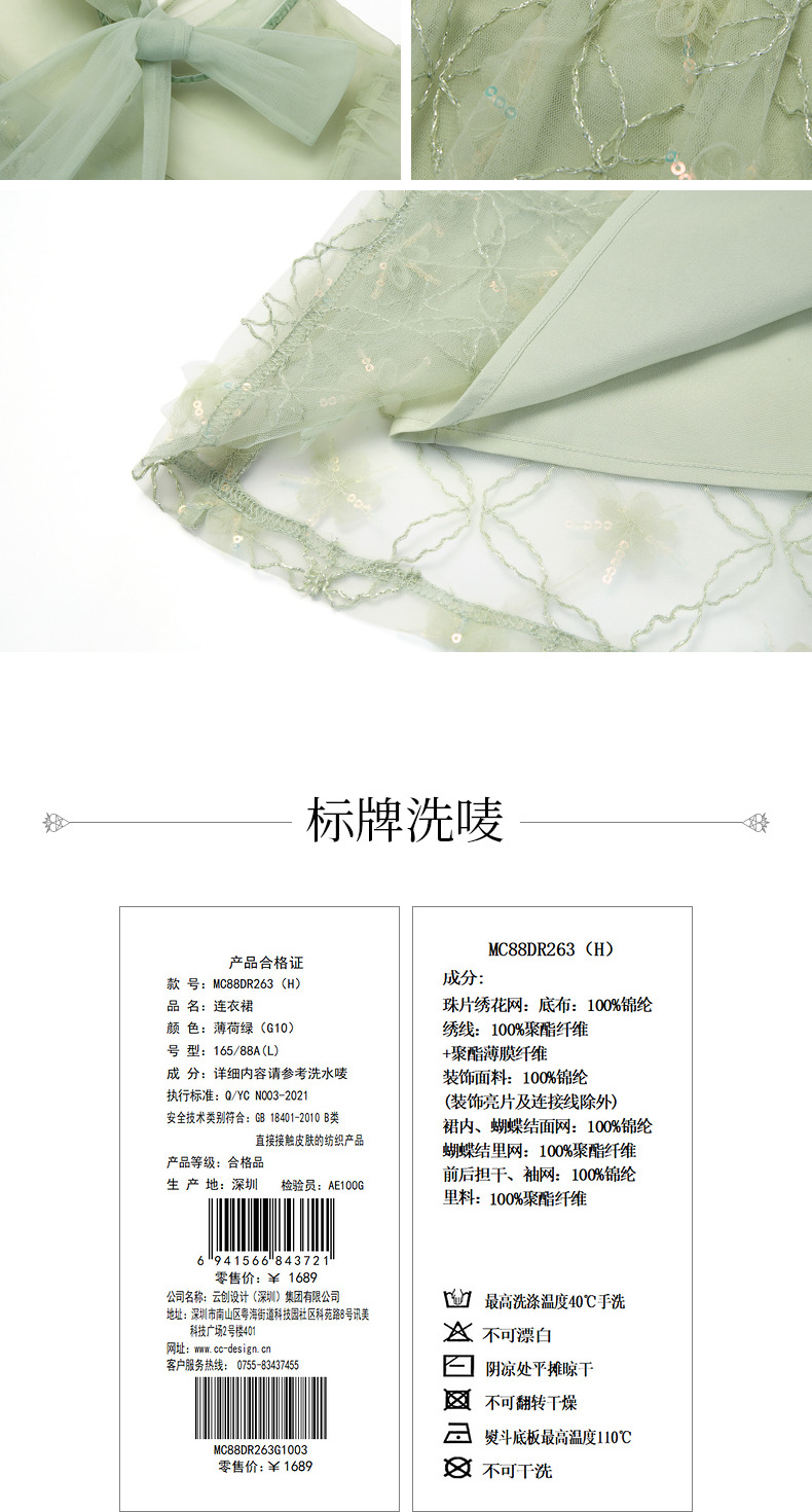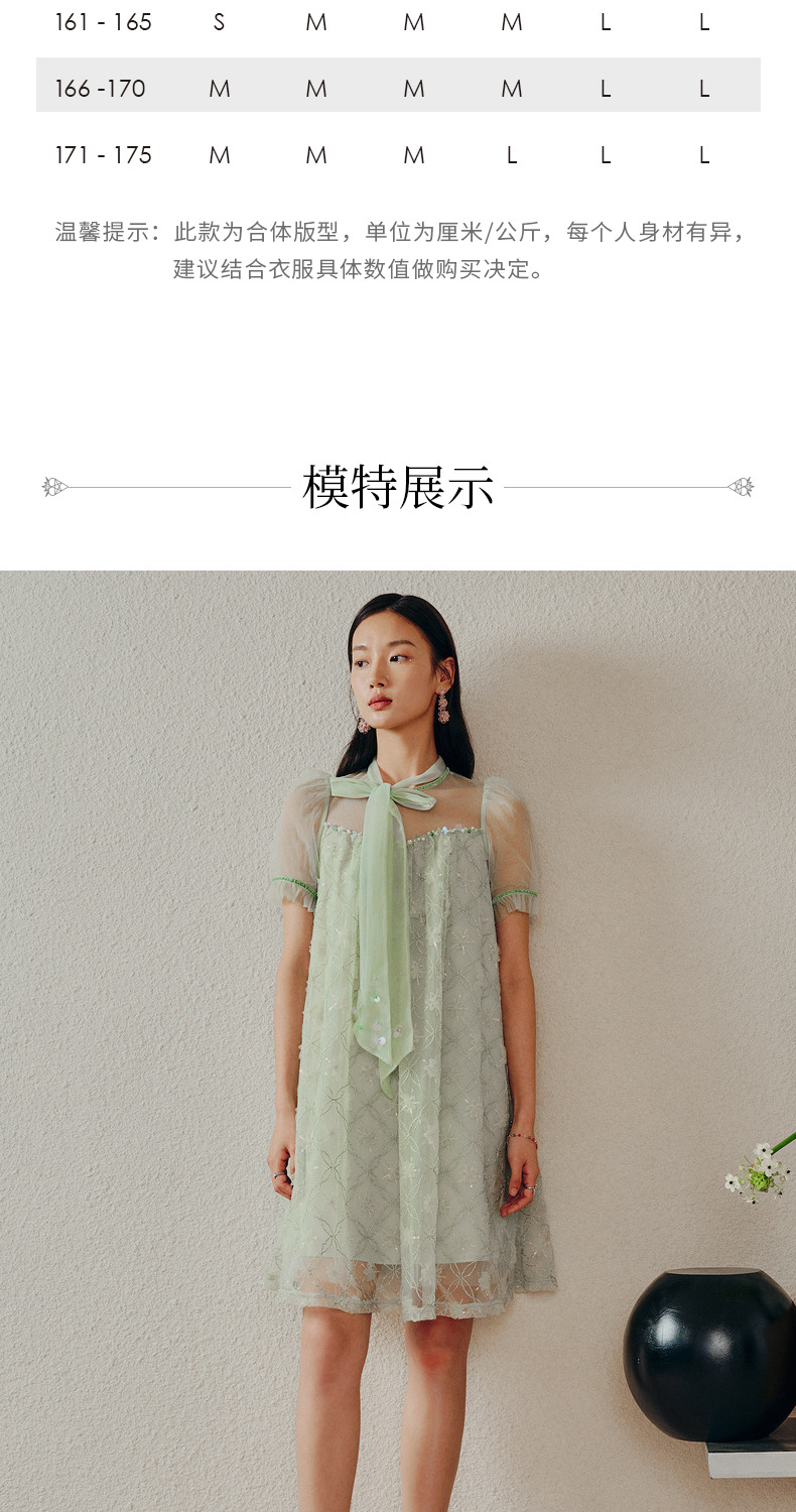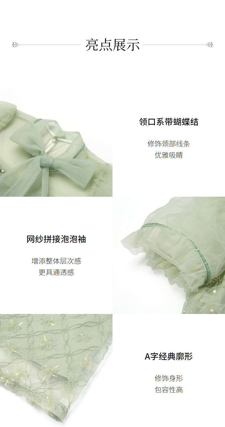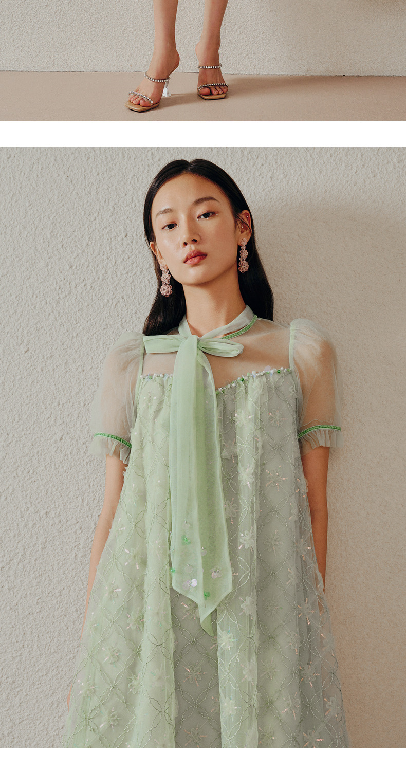 MAXRIENY欧式园艺风网纱连衣裙薄荷曼波风穿搭裙子(货号:MC88DR263)