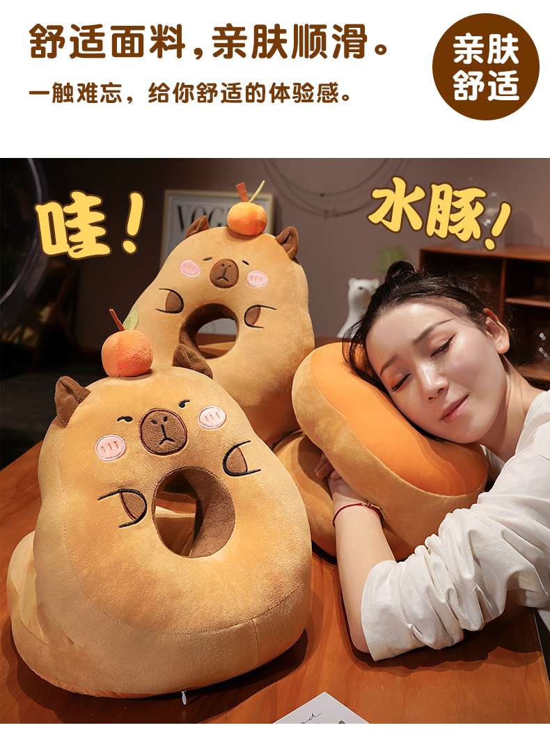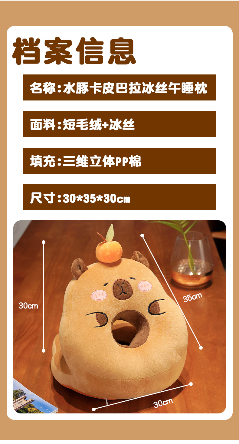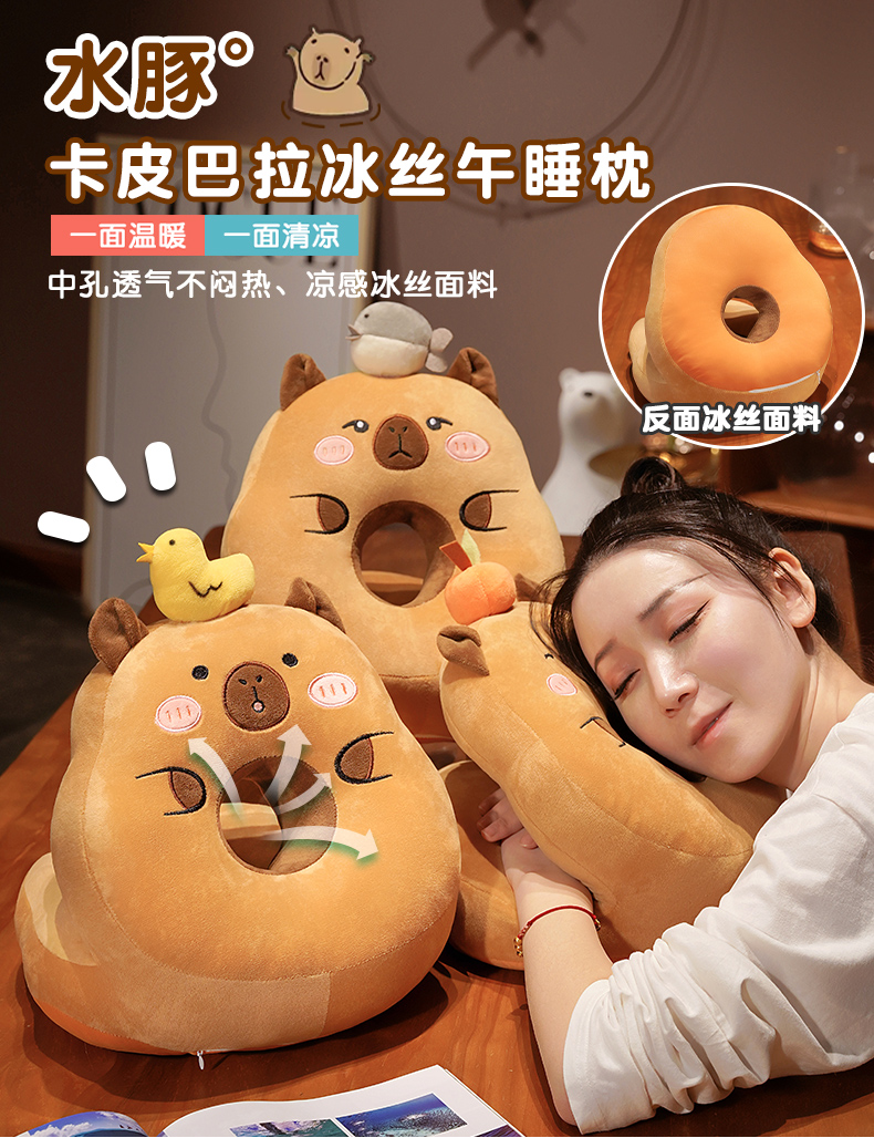 一面温暖,一面清凉【冰丝清凉!毛绒温暖】卡皮巴拉水豚午睡枕趴睡枕办公室午休神器抱枕女生小学生睡觉儿童。ha