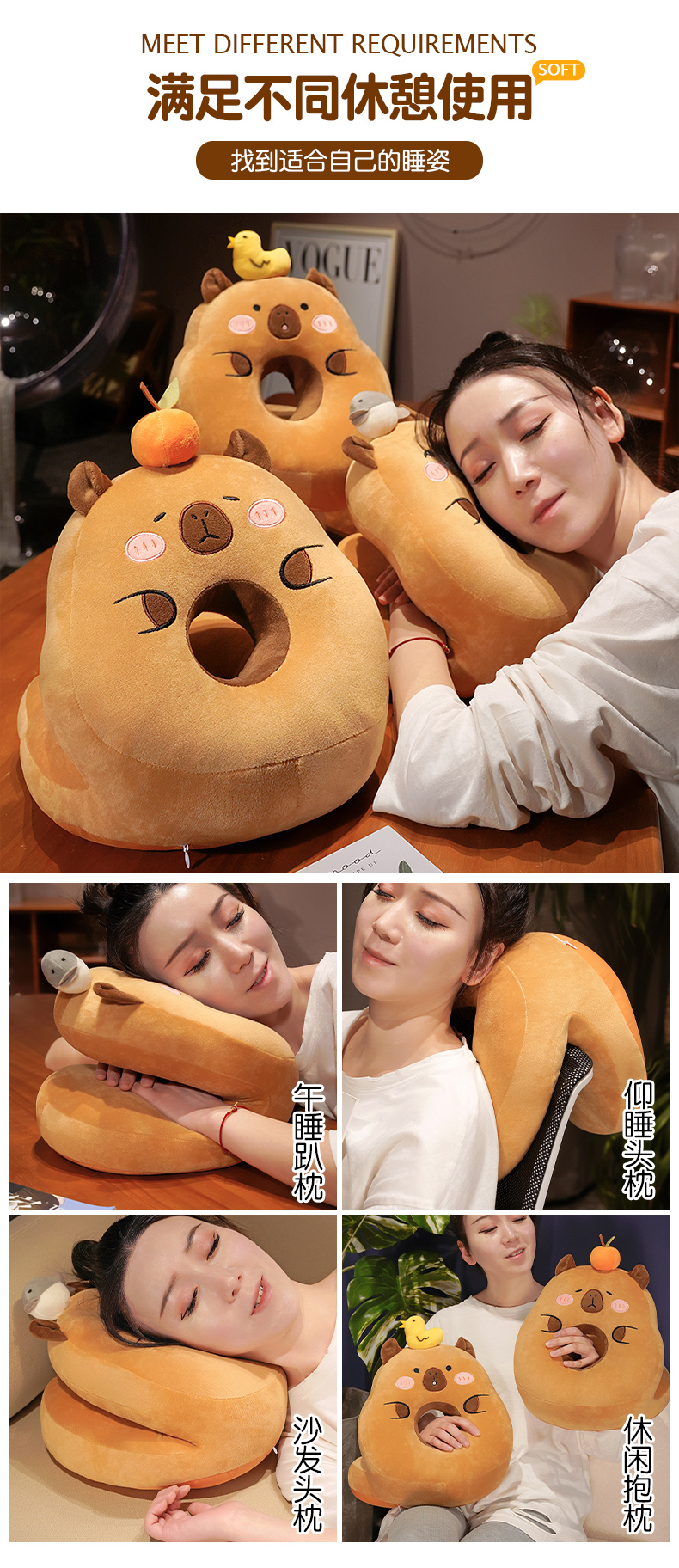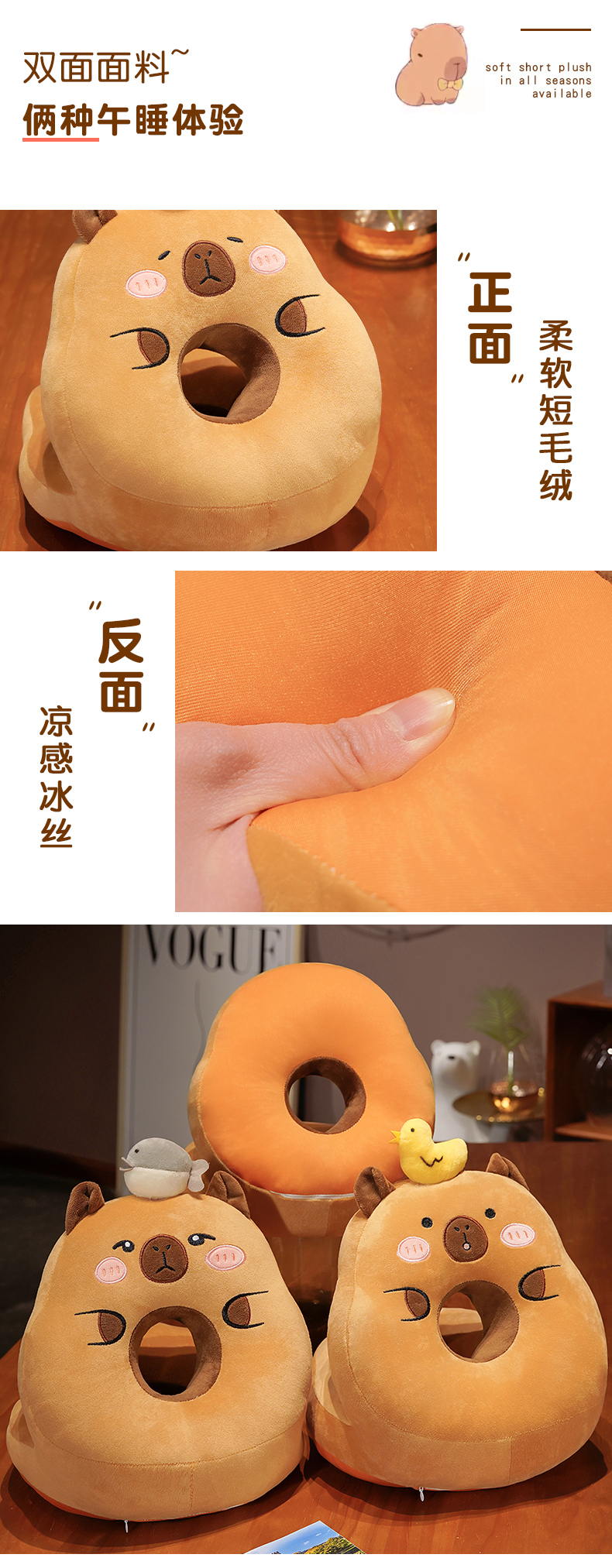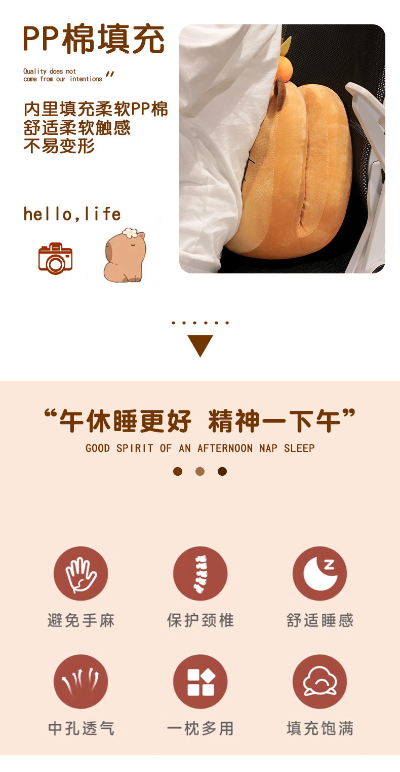 一面温暖,一面清凉【冰丝清凉!毛绒温暖】卡皮巴拉水豚午睡枕趴睡枕办公室午休神器抱枕女生小学生睡觉儿童。ha