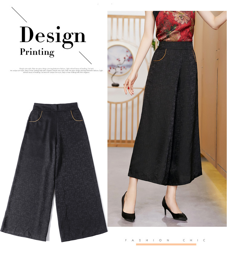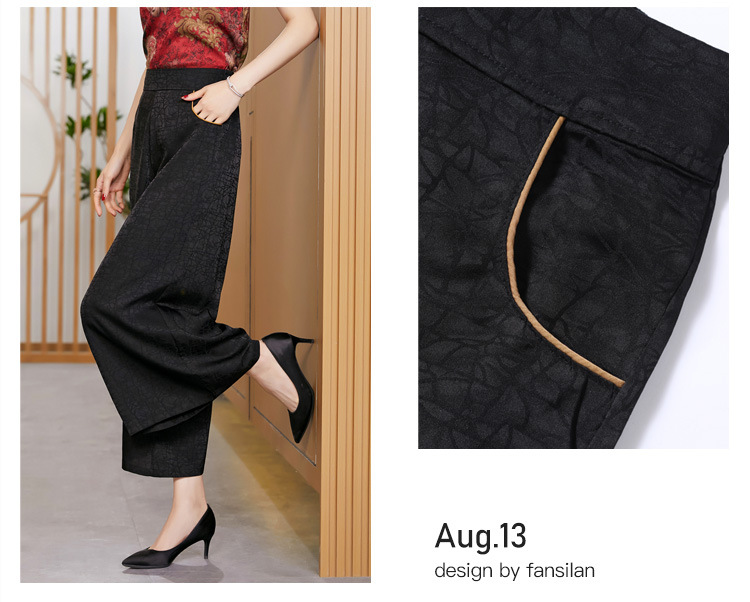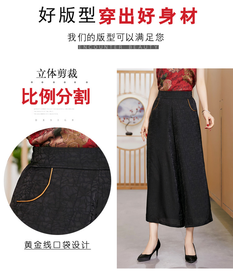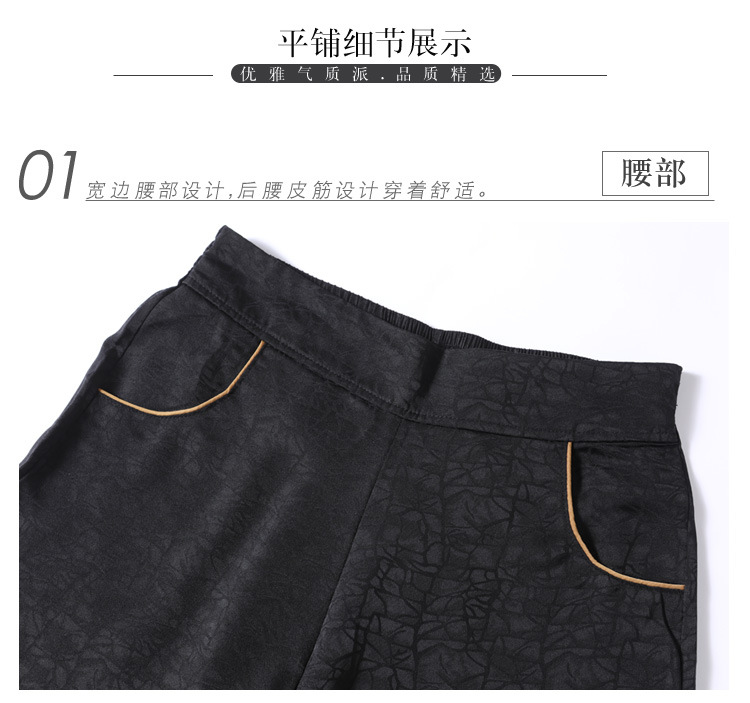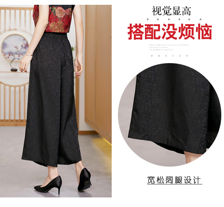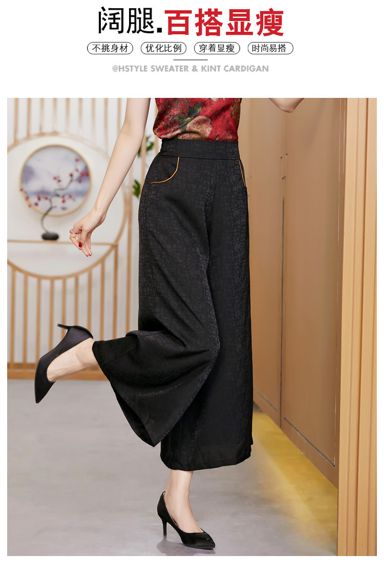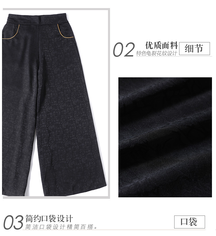 黑色松紧腰大码百搭龟裂纹缎面阔腿裤妈妈装K-E38M2239