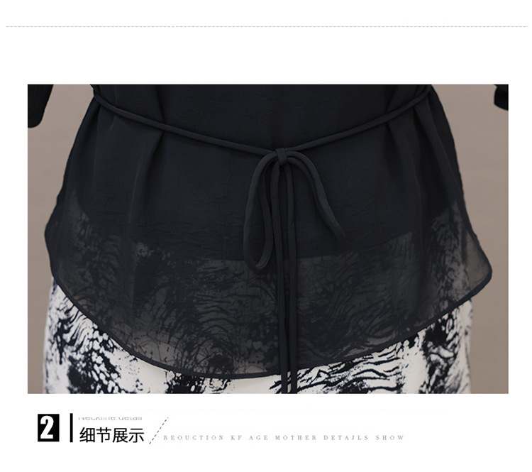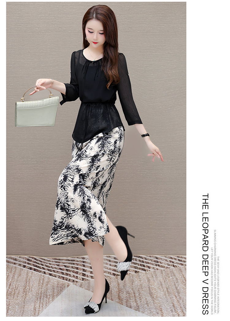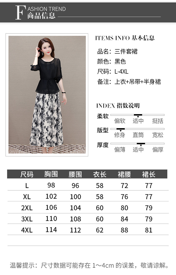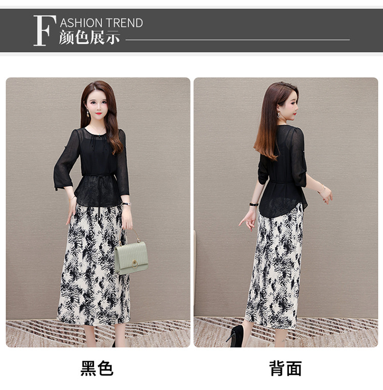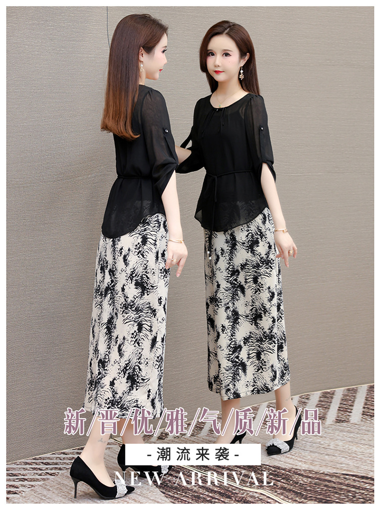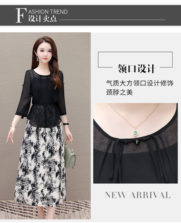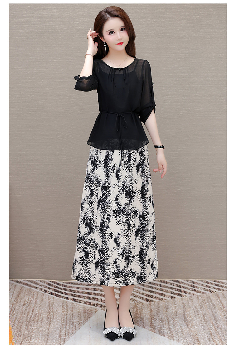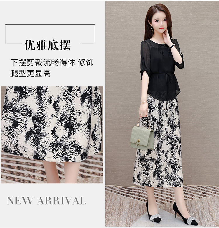 舒适百搭,中袖雪纺小衫印花半身裙两件套(送吊带)QYM-OMS-FDA456-L