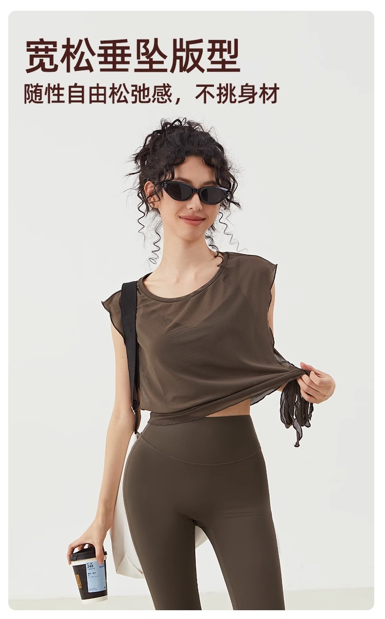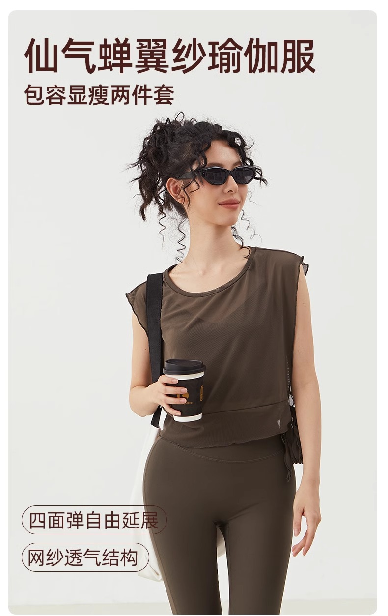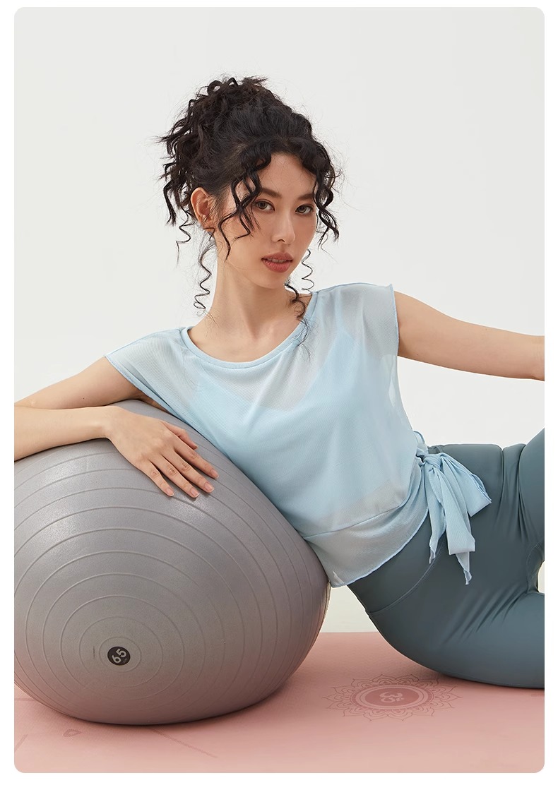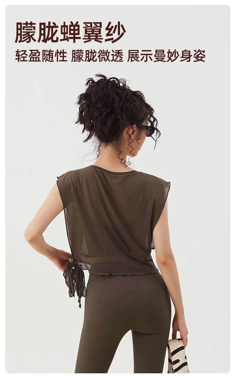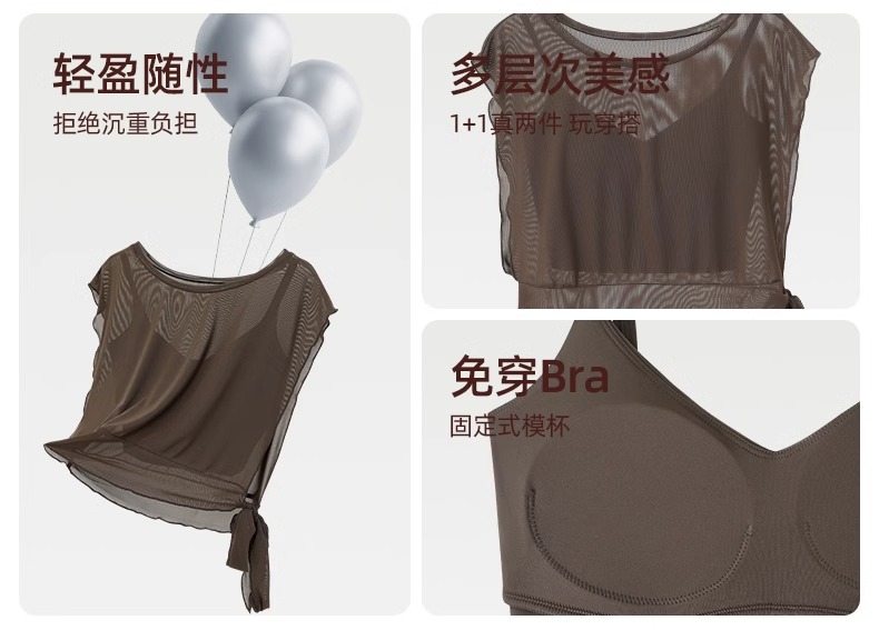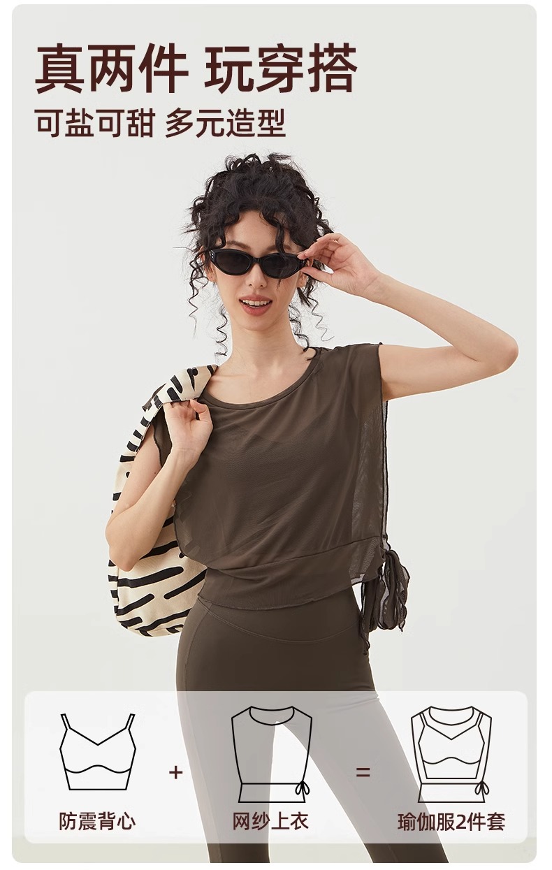 跃牌【禅语梵心】两件套网纱瑜伽服短袖速干运动文胸一体杯健身舞蹈服上衣WX5128