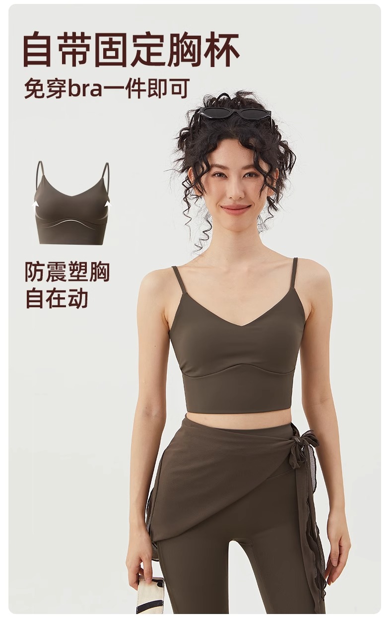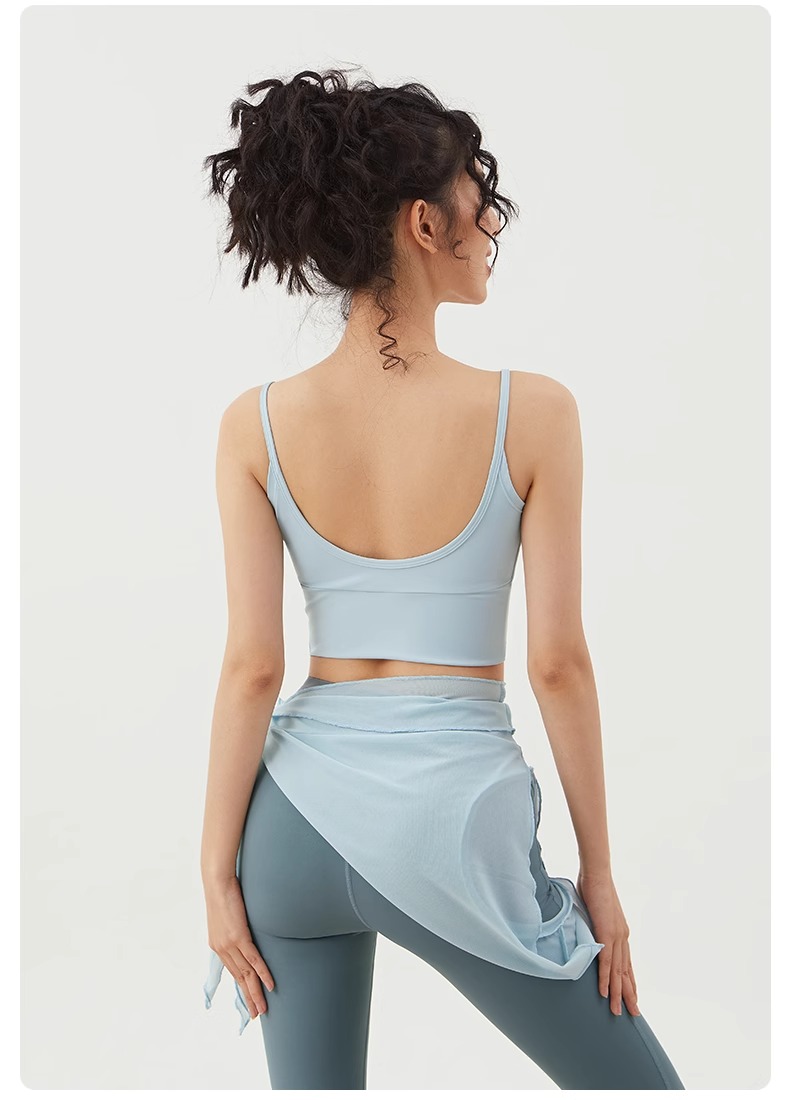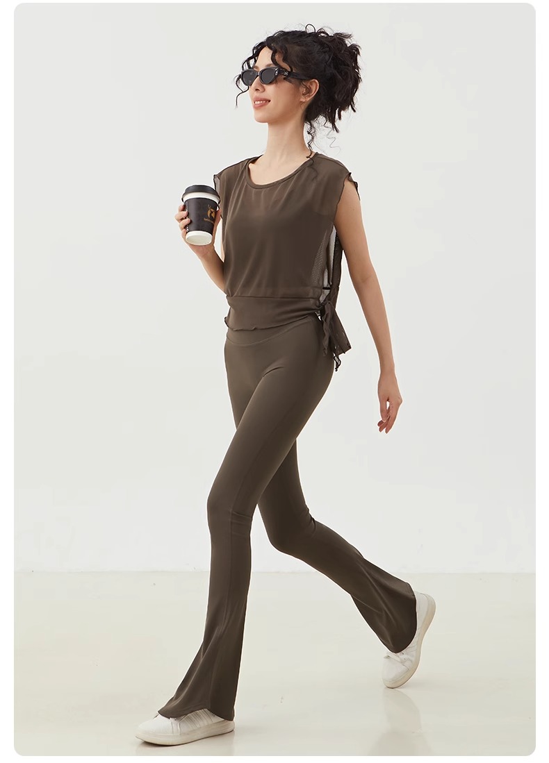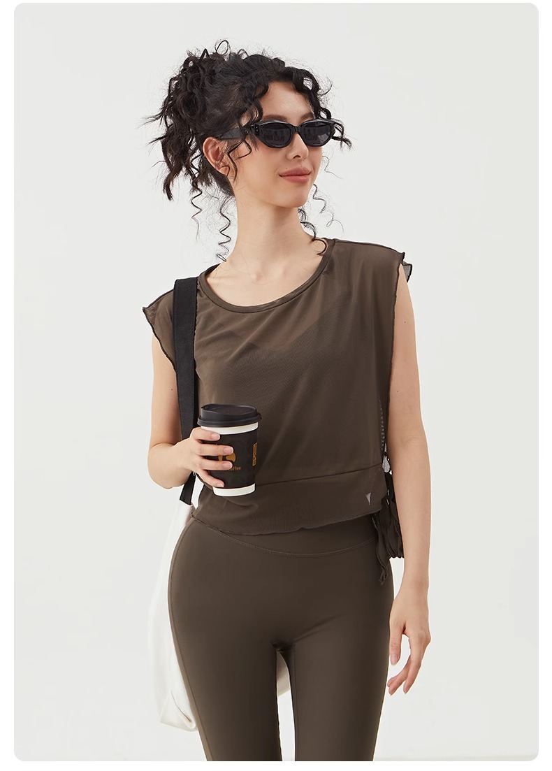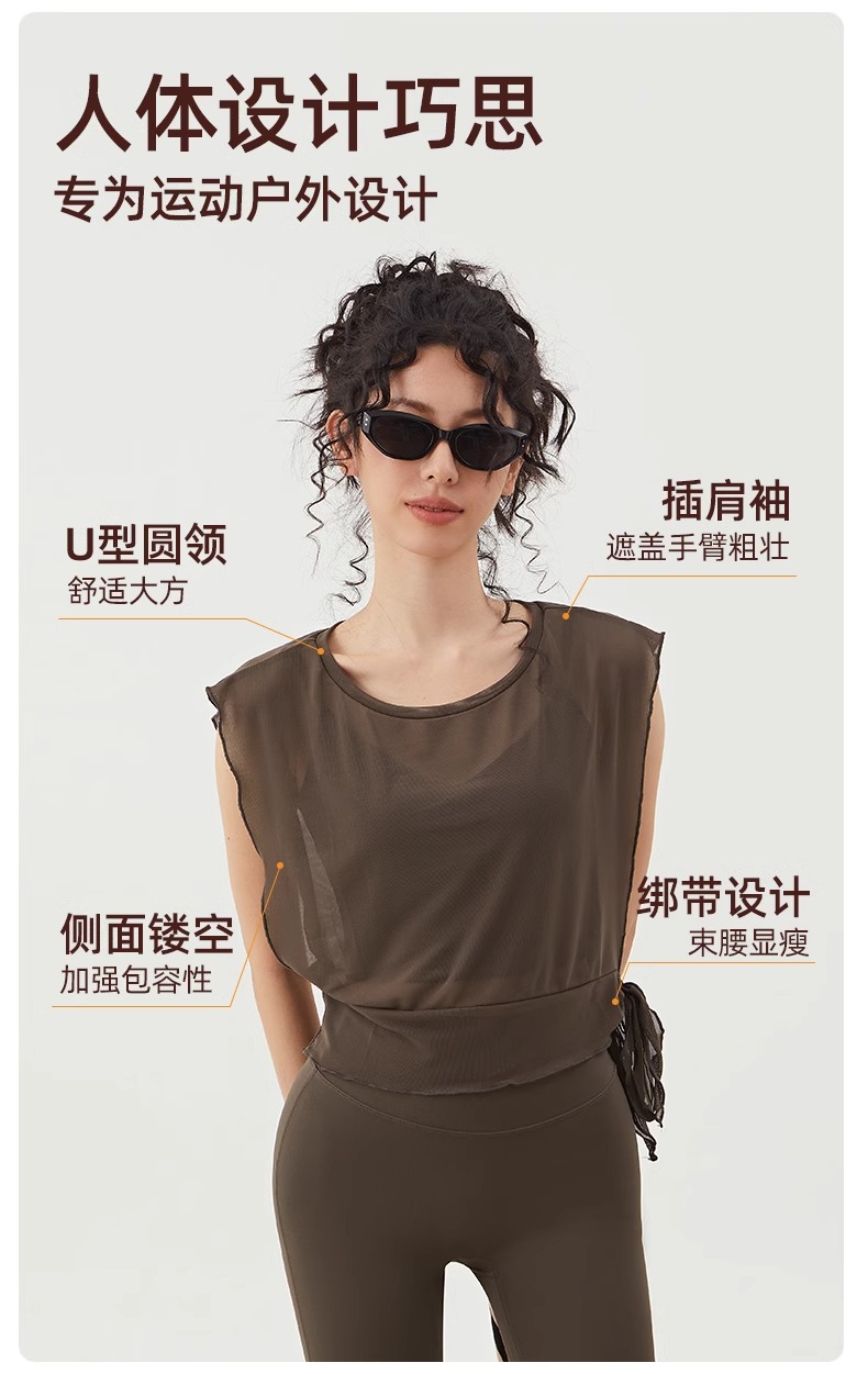 跃牌【禅语梵心】两件套网纱瑜伽服短袖速干运动文胸一体杯健身舞蹈服上衣WX5128