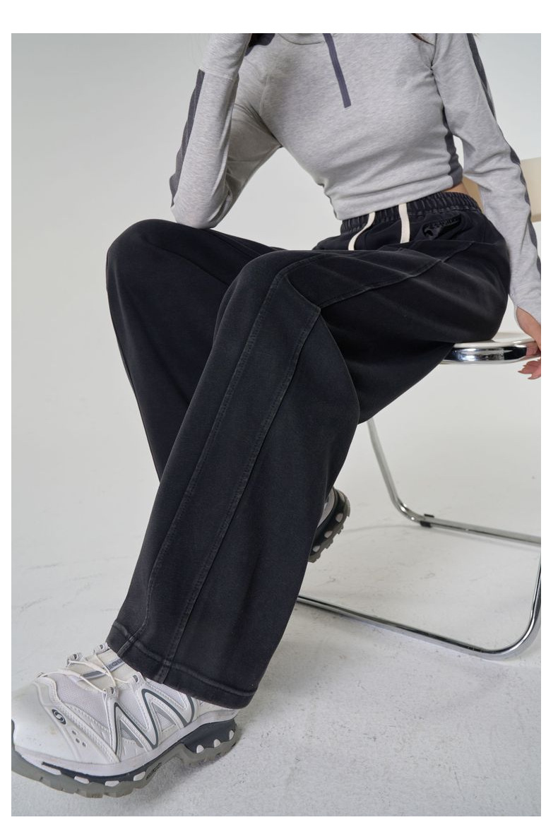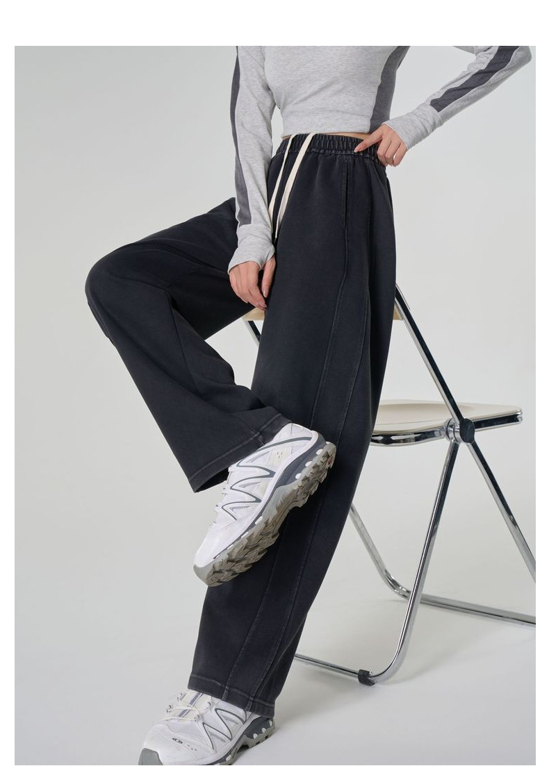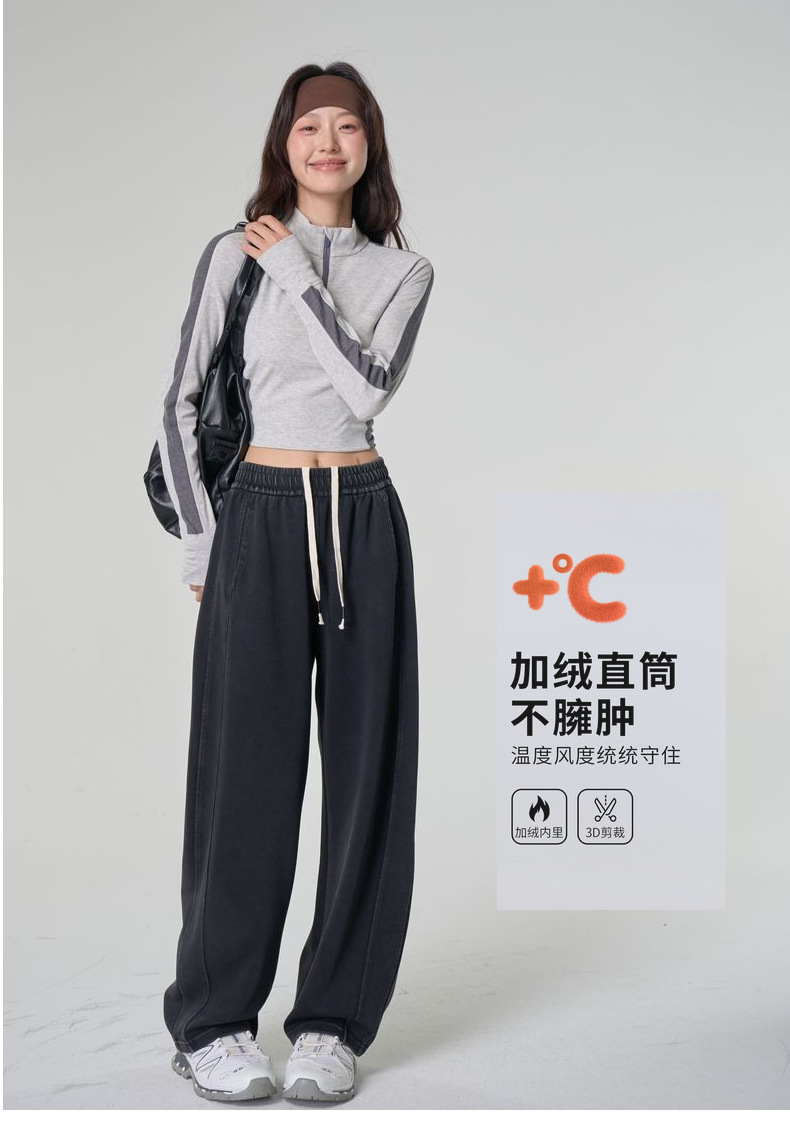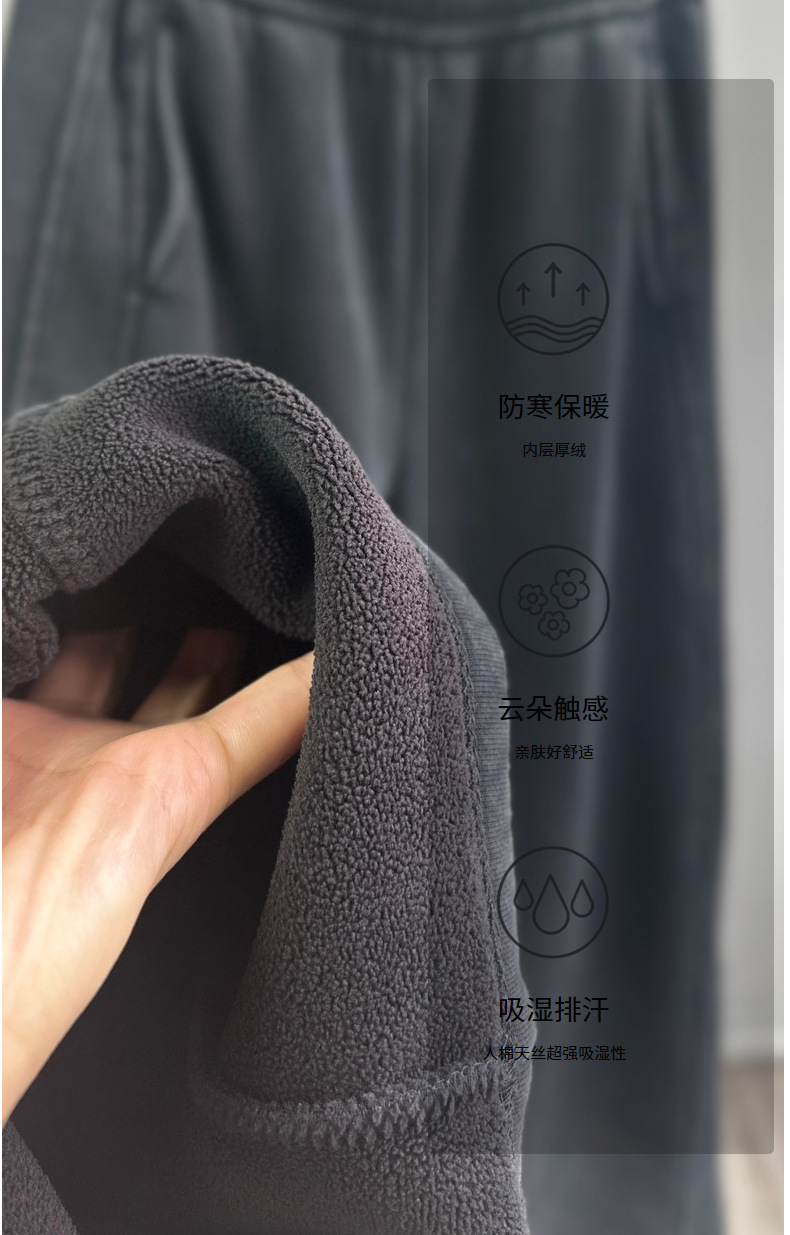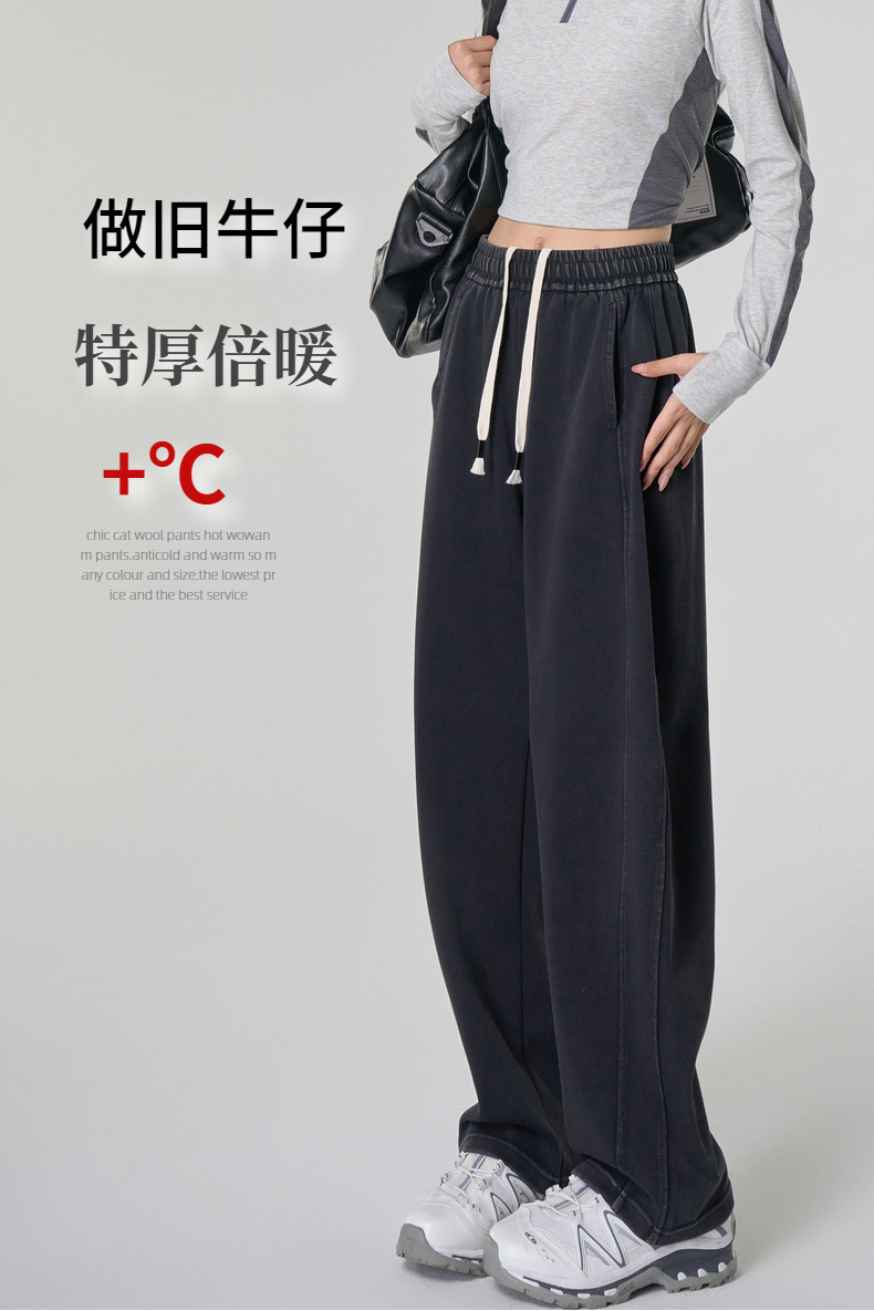 丁摩 【加厚牛仔】高个子秋冬女装做旧复古黑加绒800克阔腿长裤复古5ZF-C330H