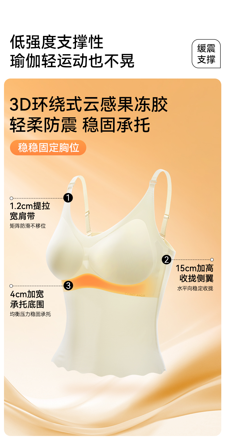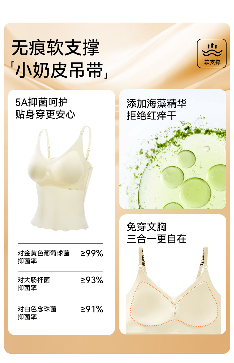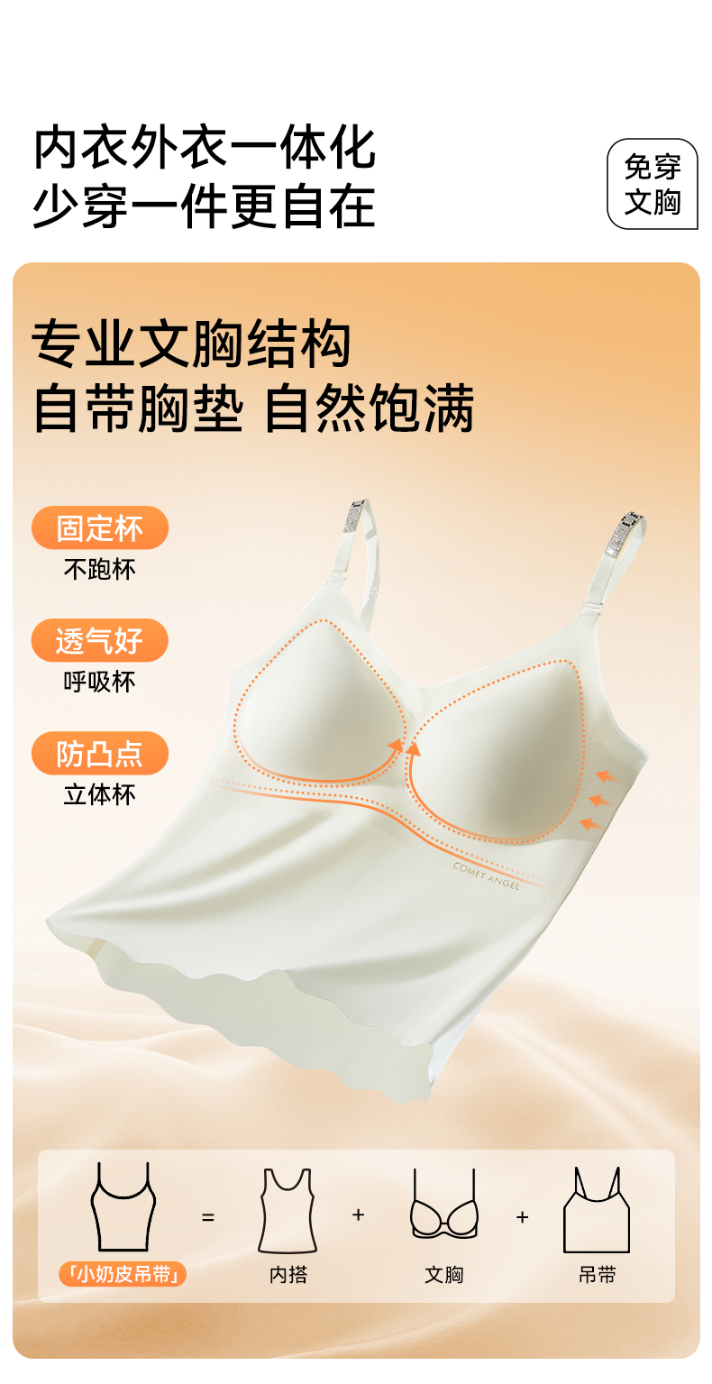 彗星天使小奶皮吊带女免穿文胸内搭3D支撑不跑杯一体式背心打底衫3822#