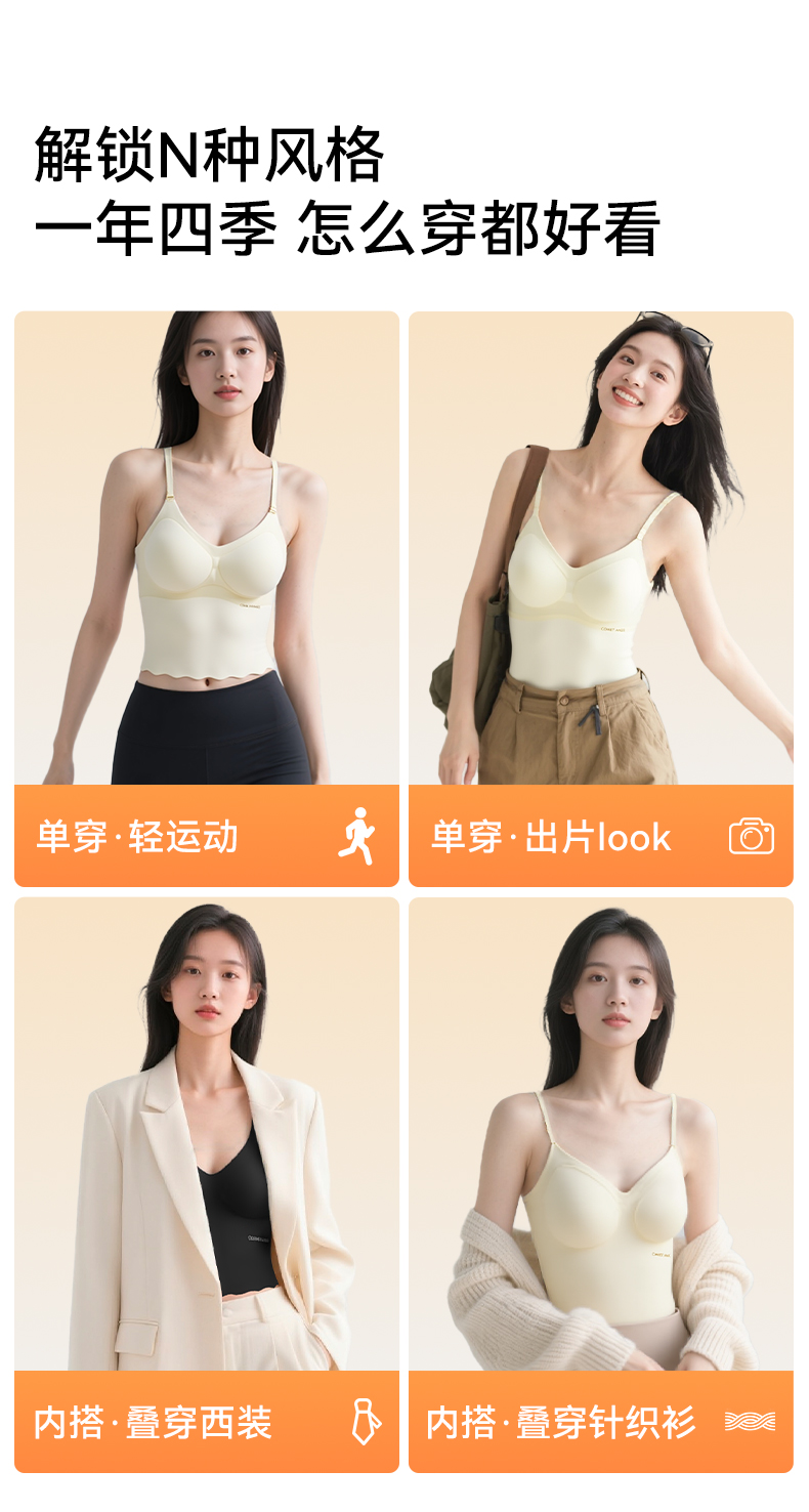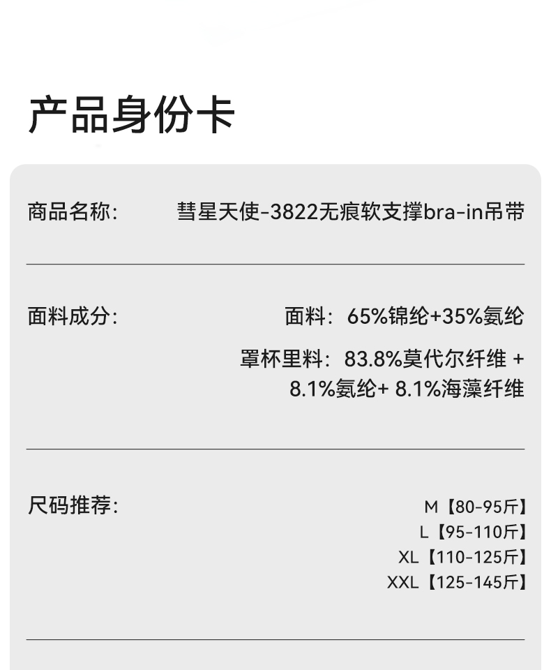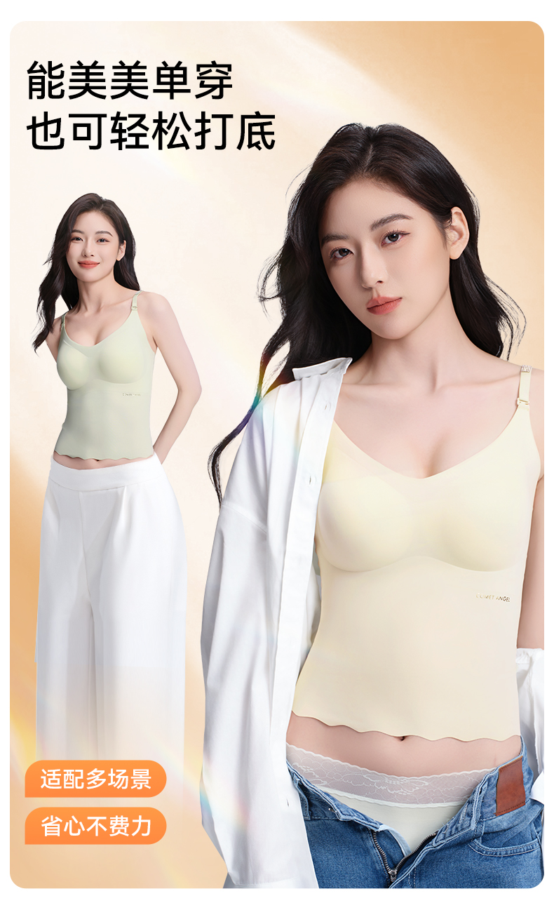 彗星天使小奶皮吊带女免穿文胸内搭3D支撑不跑杯一体式背心打底衫3822#