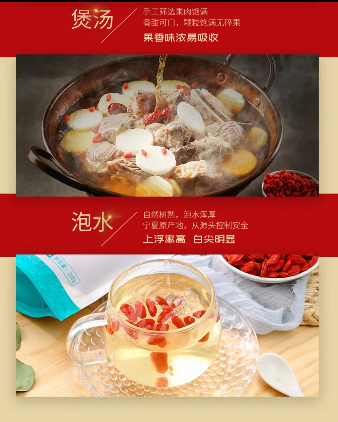 杞冠严选 | 沃福百瑞 特优枸杞 200g袋装 宁夏中宁免洗枸杞干果