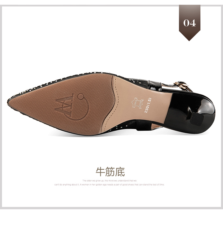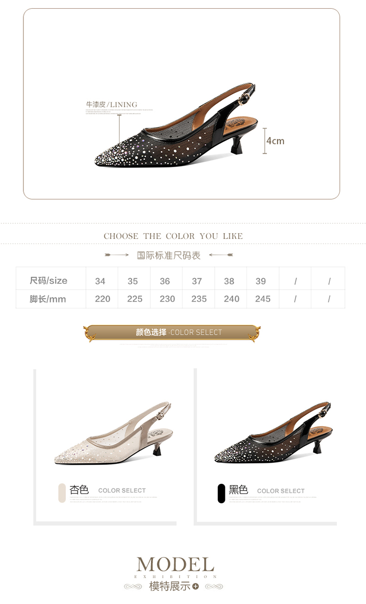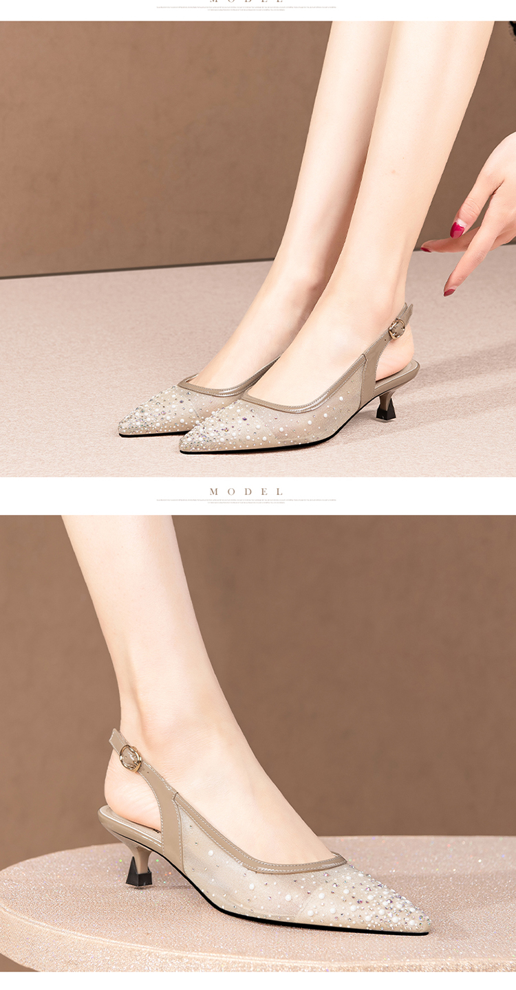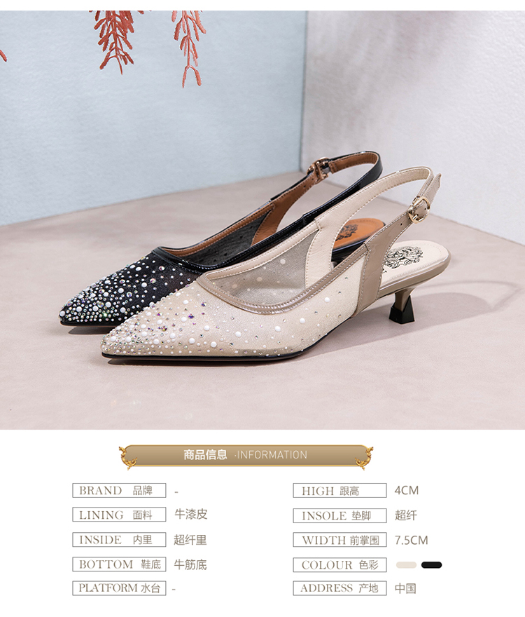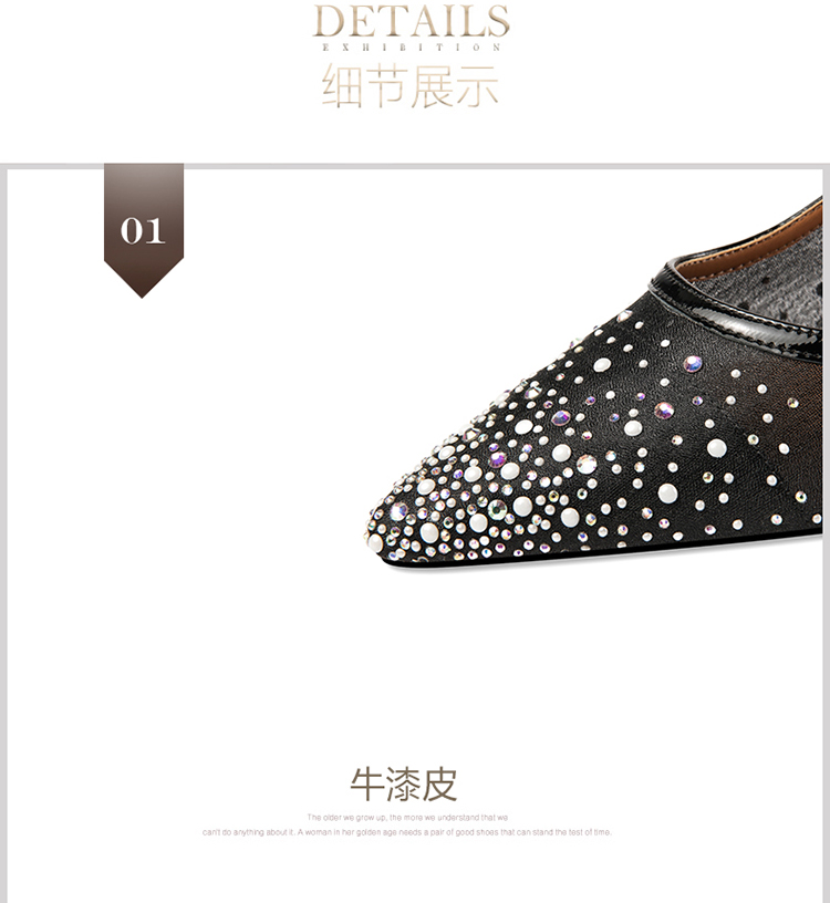 优雅百搭,牛漆皮+网纱尖头镶钻后空凉鞋HY-H3108