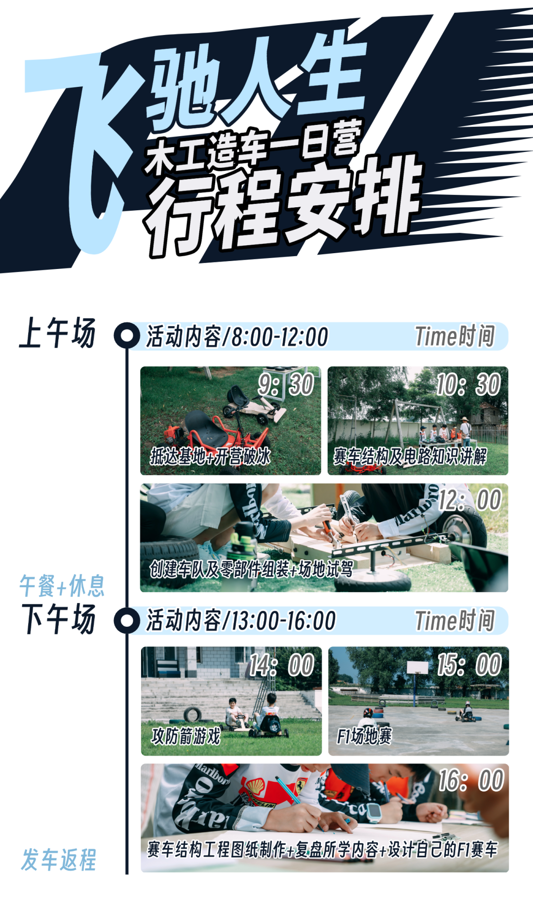 周末重磅【飞驰人生造车一日营】!亲手造一辆“赛车”!F1赛车比赛+赛车图纸设计+创建车队+场地试驾+攻防箭游戏!