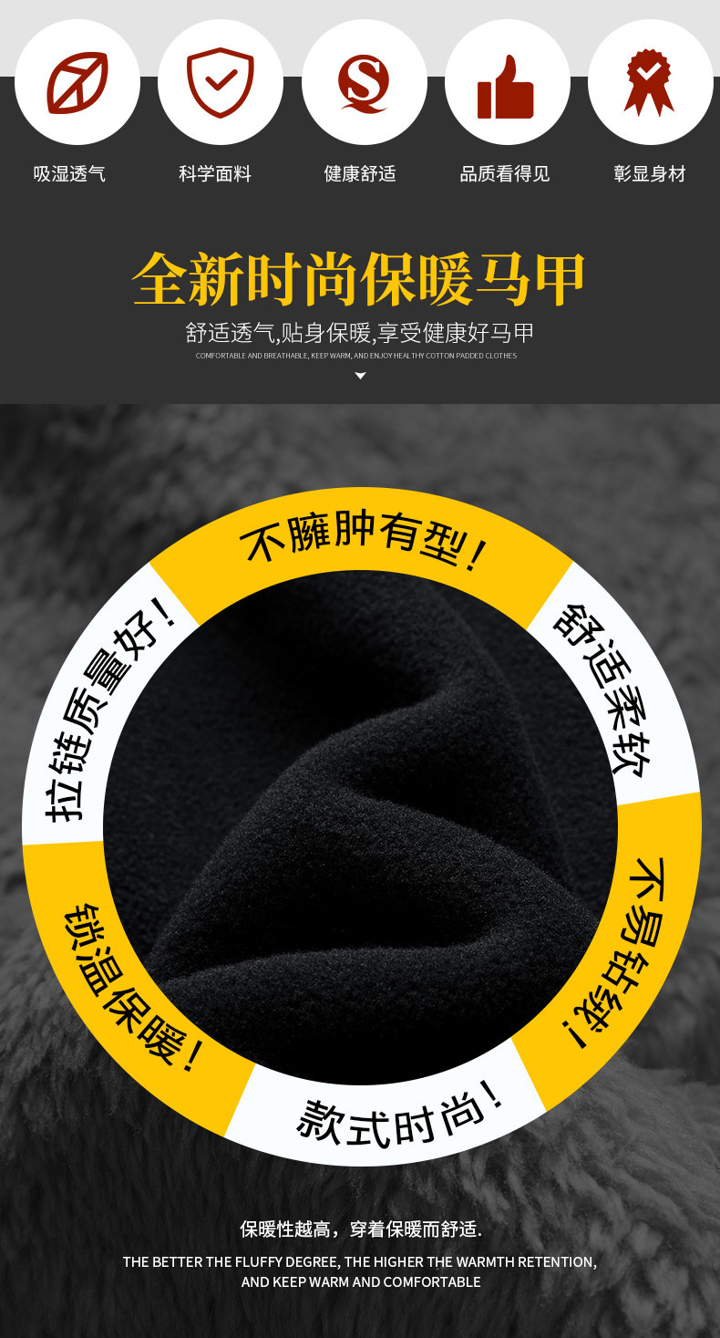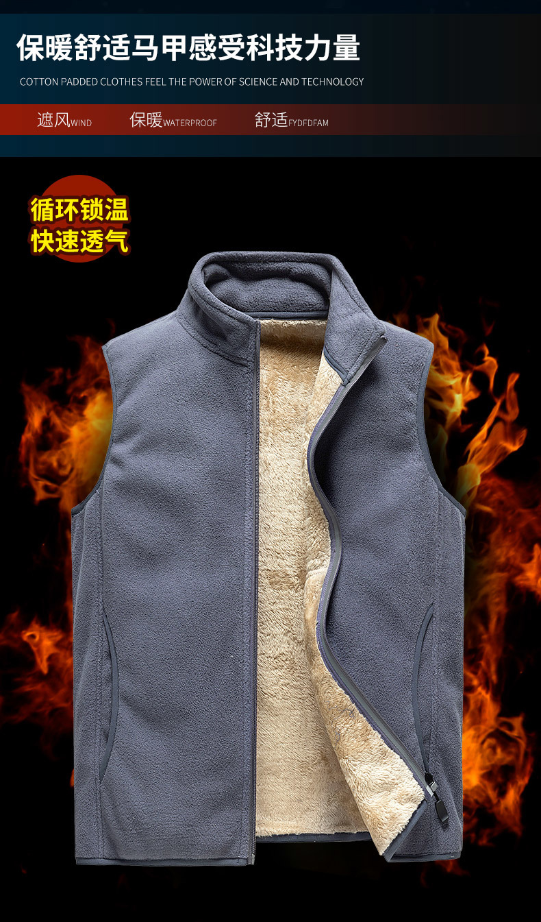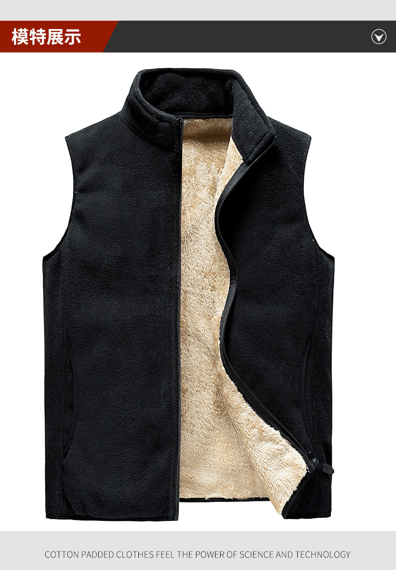 【新款DHD】大依优型大码男装立领抓绒加绒棉马甲简约休闲宽松外套男坎肩背心上衣男士