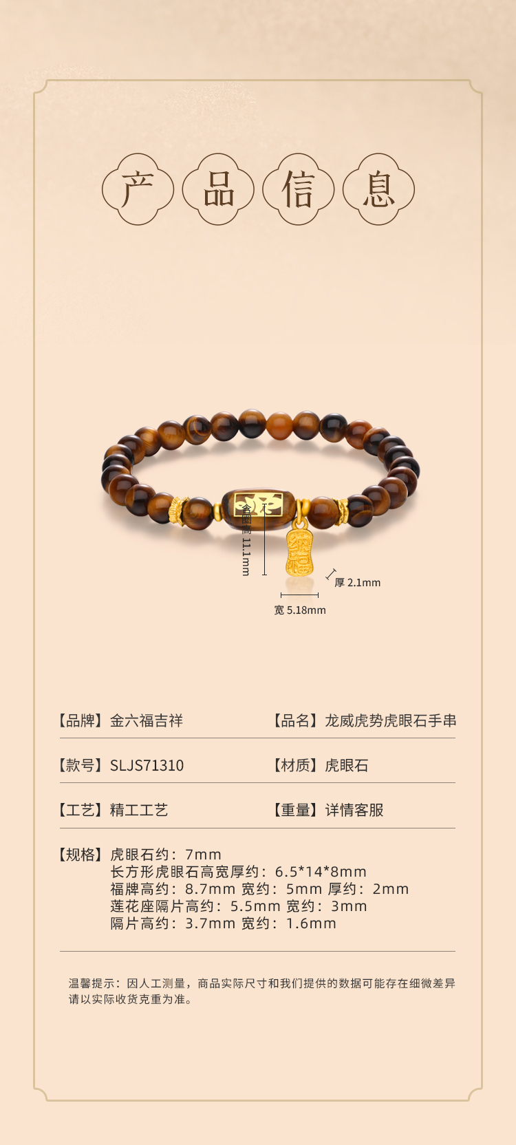品牌直发 【金六福吉祥系列手串 】多款式可选 沙溢胡可夫妇代言 线下门店1500家 ZXT