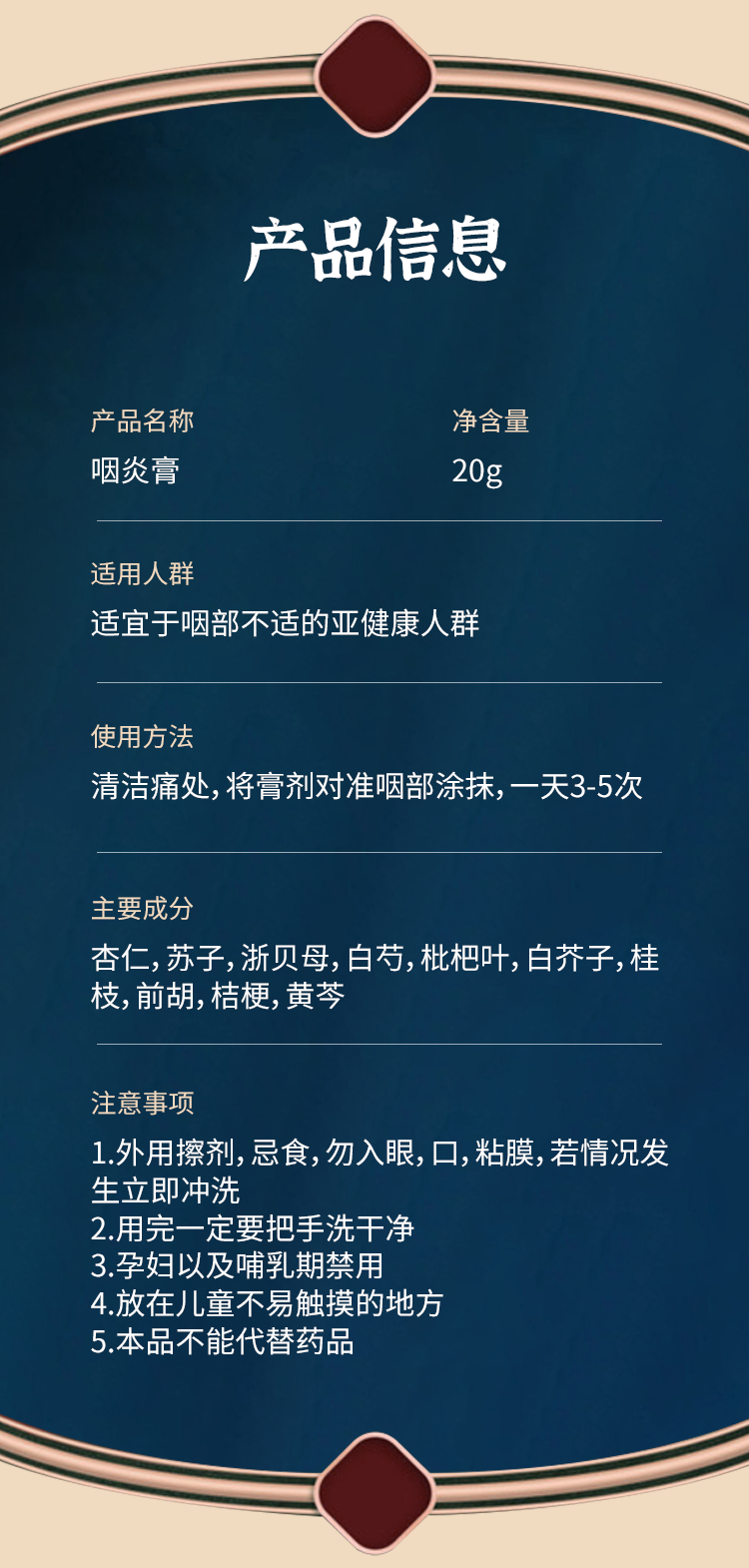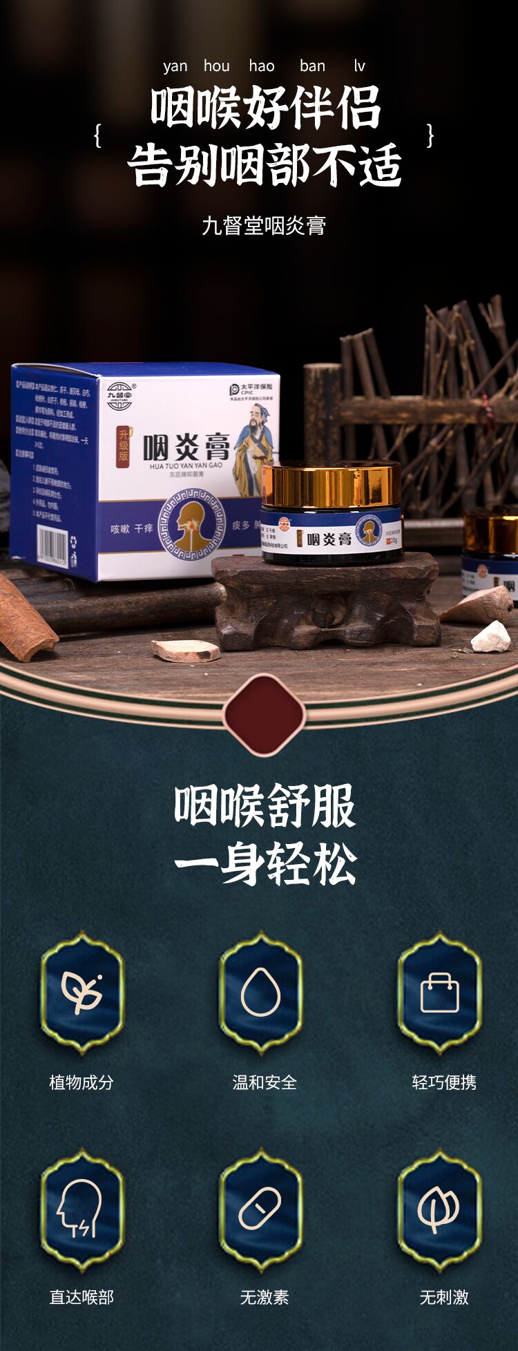 【告别咽喉不适】咽炎膏咳嗽痰多干痒肿胀多味植物悉心熬制直达喉部远离不适咽炎贴膏20g/盒