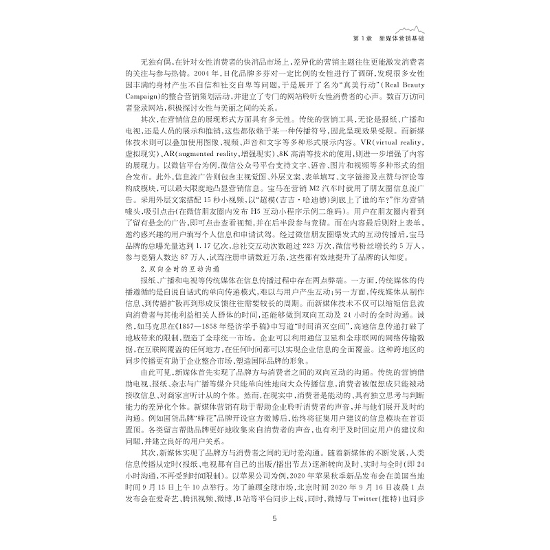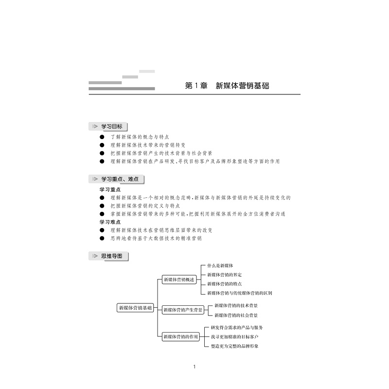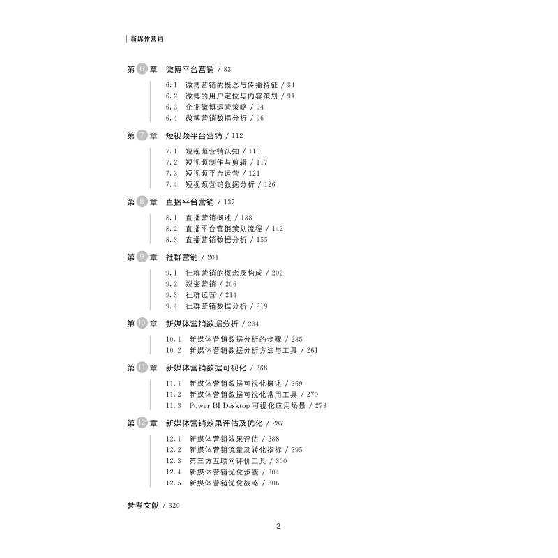 新媒体营销是财经商贸类专业的核心课程。随着新媒体技术的发展,新媒体被越来越多的企业和个人作为营销活动的重要载体,市场前景广阔。社会对新媒体营销高技能人才的需求巨大,对能及时反映新媒体营销新技术、新方法、新标准的教材的需求日益迫切。本书贯彻落实《国家中长期教育改革和发展规划纲要(2022-2022)》文件精神,全面提升本科教材质量,充分发挥教材在提高人才培养质量中的基础性作用,采用理论与案例相结合的方式,通过十三章全方位地介绍了新媒体营销的理论策略和实操过程,从而帮助读者快速了解新媒体营销知识,全面掌握新媒体营销技能。