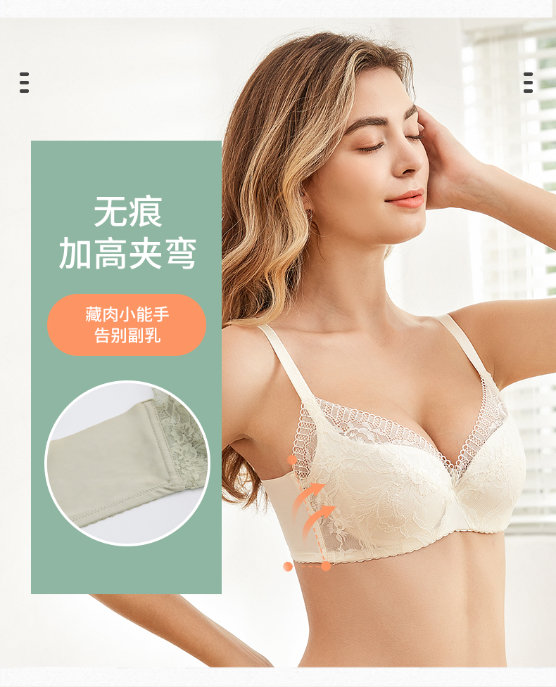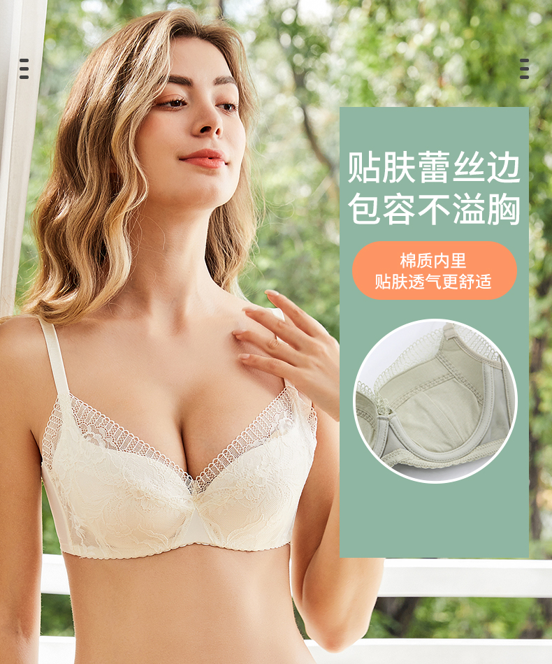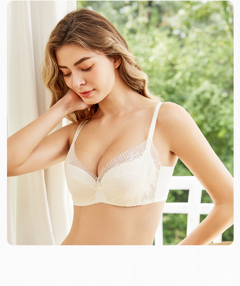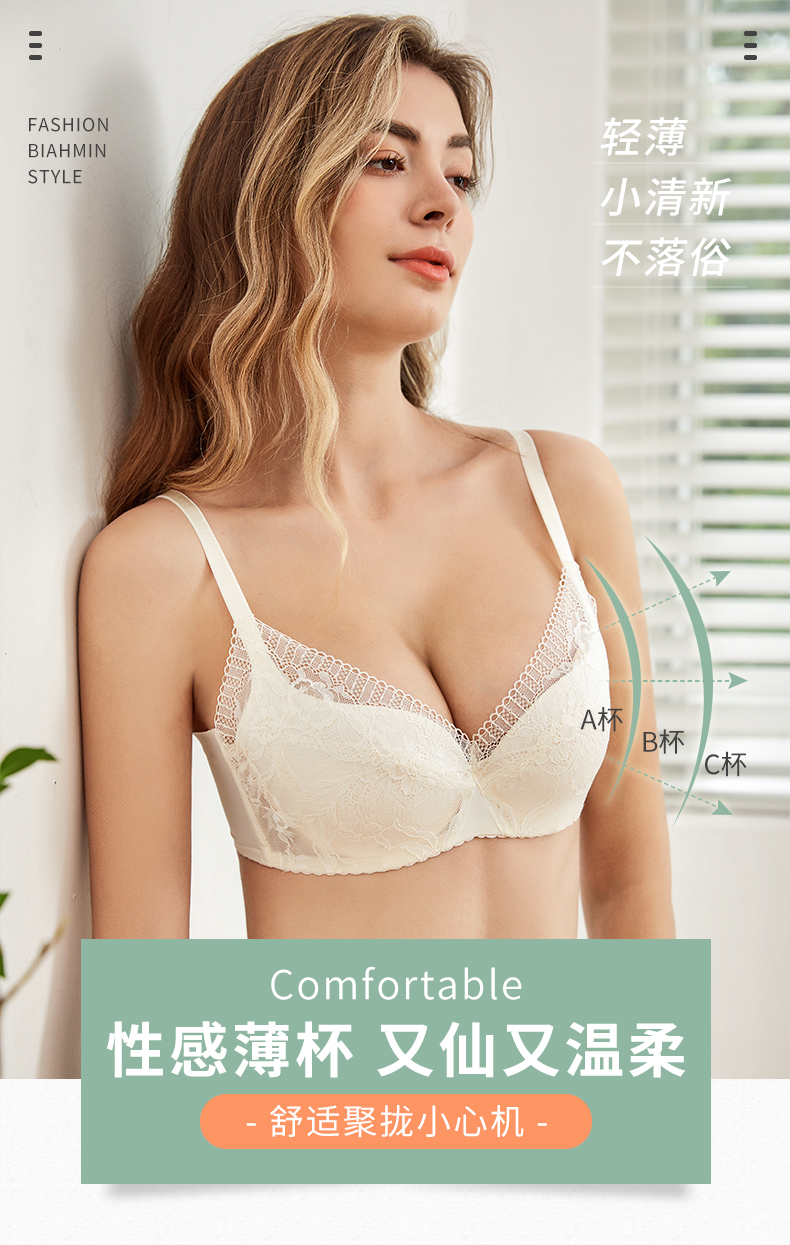 贝佳人新品清新蕾丝文胸自然上托侧收聚拢内衣女甜美薄款BW922108