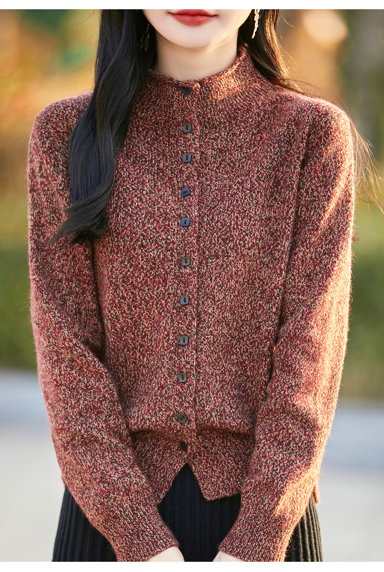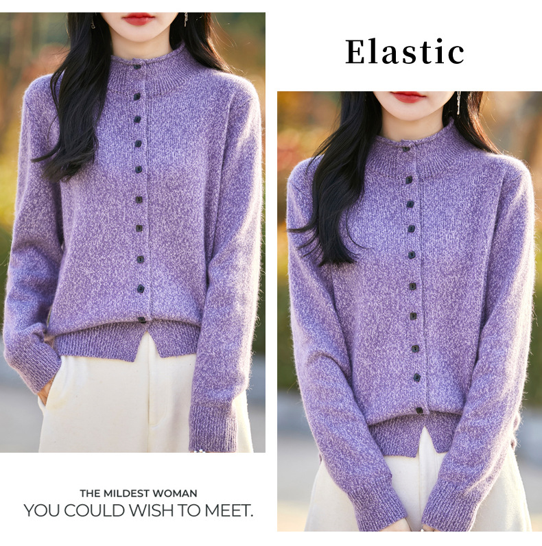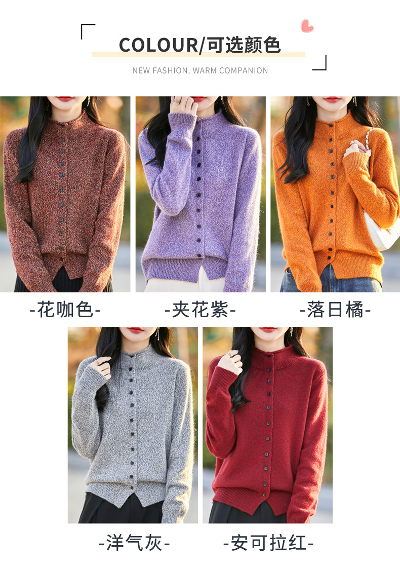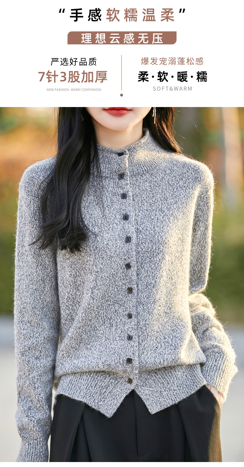 QHJY-JY8207亲肤绒7针加厚花纱开衫毛衣女25春秋新款韩系软糯针织衫外套上衣