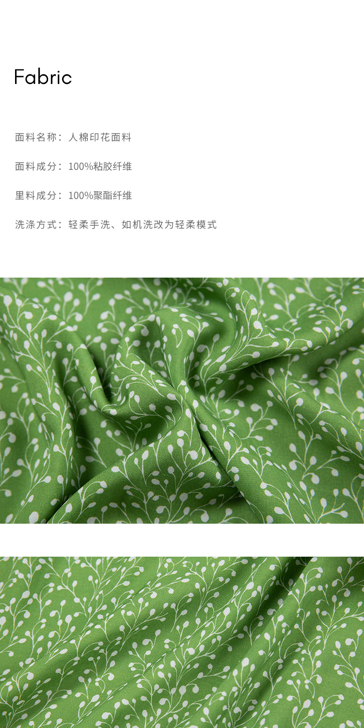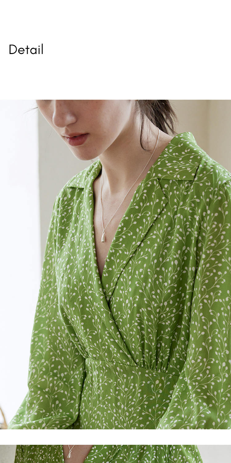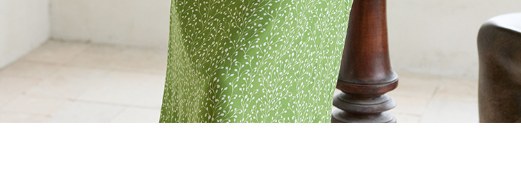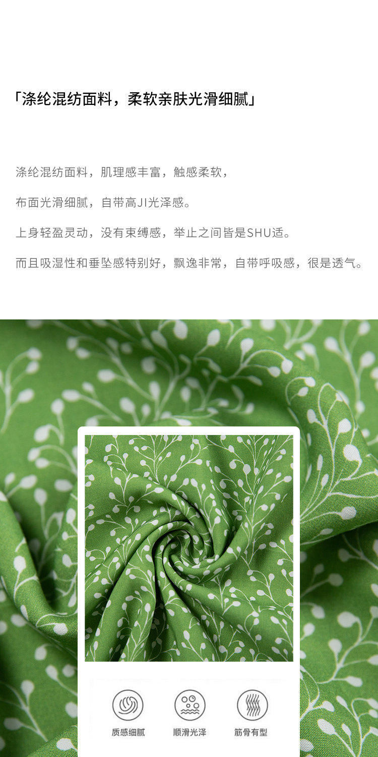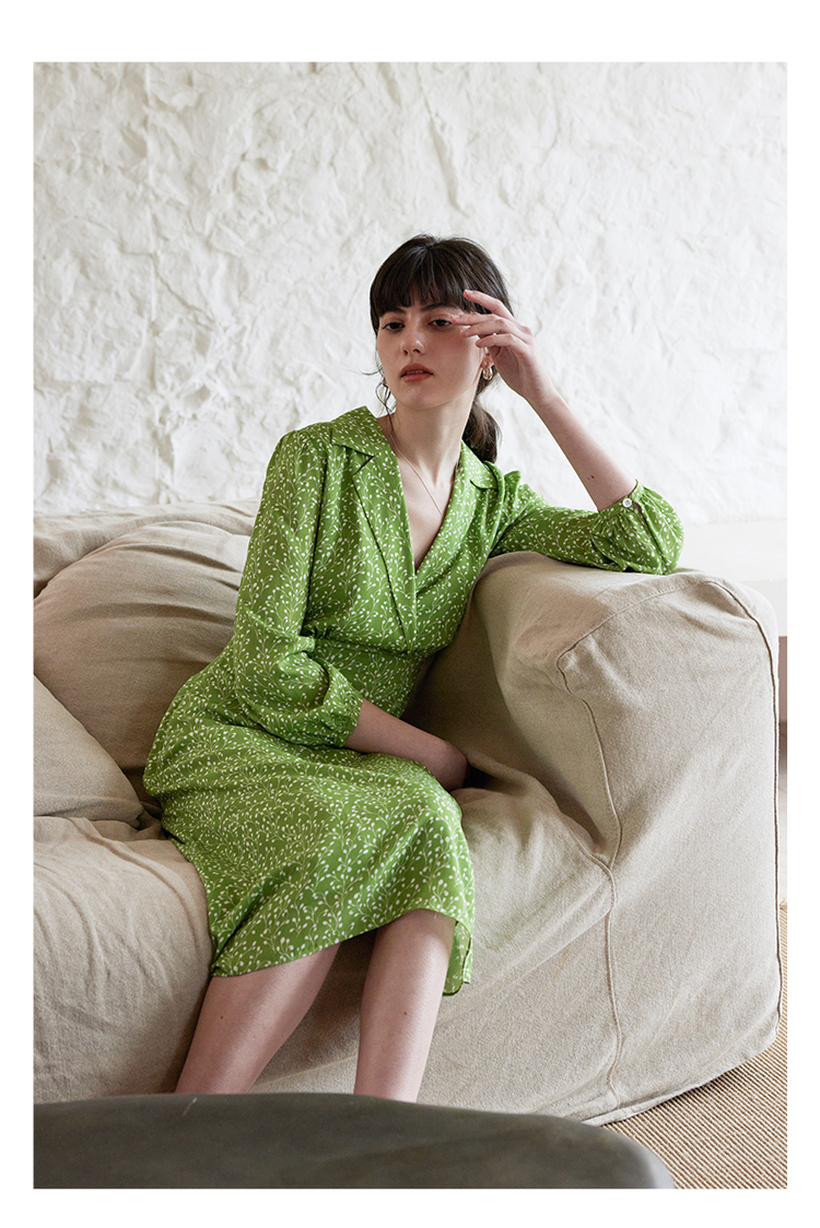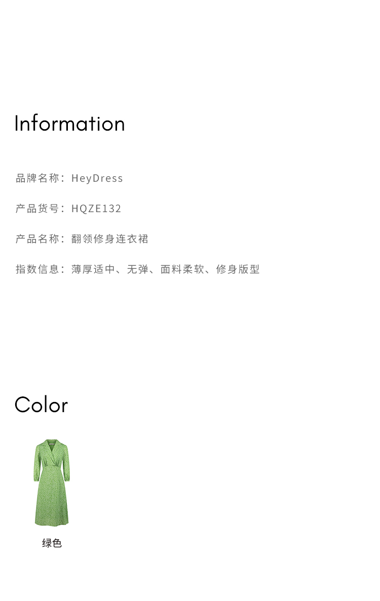 HeyDress绿色碎花连衣裙女春季法式复古翻领收腰设计浪漫印花裙子