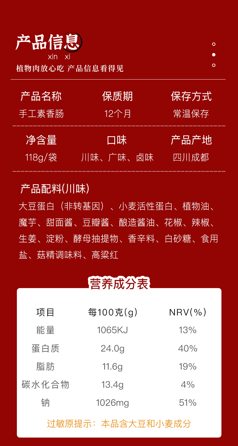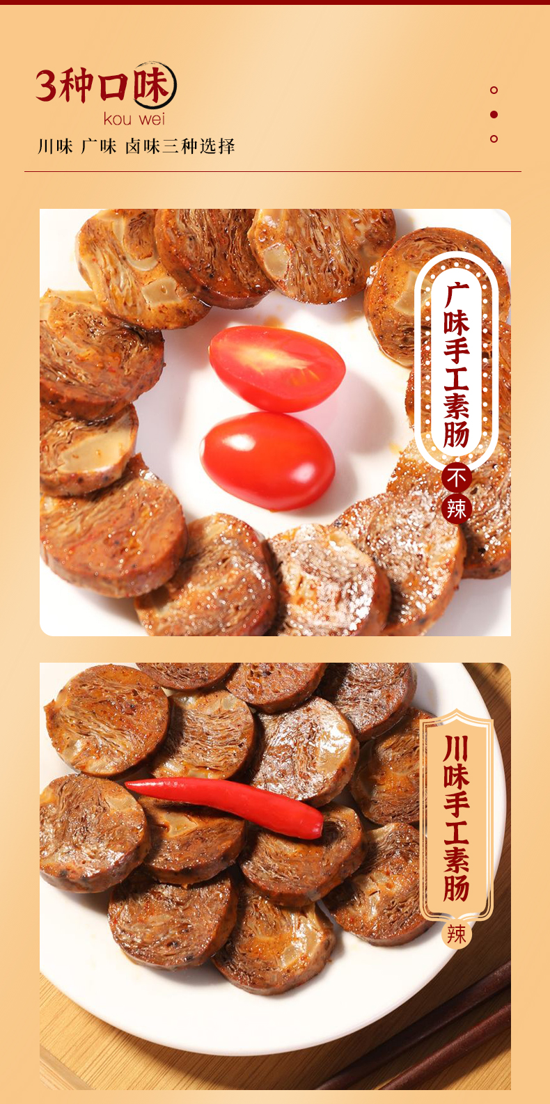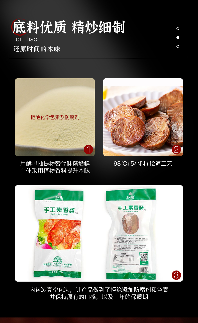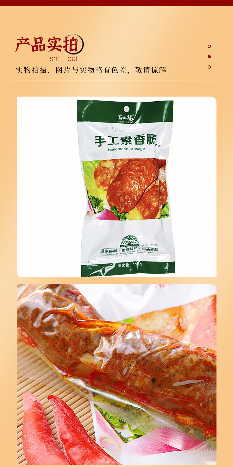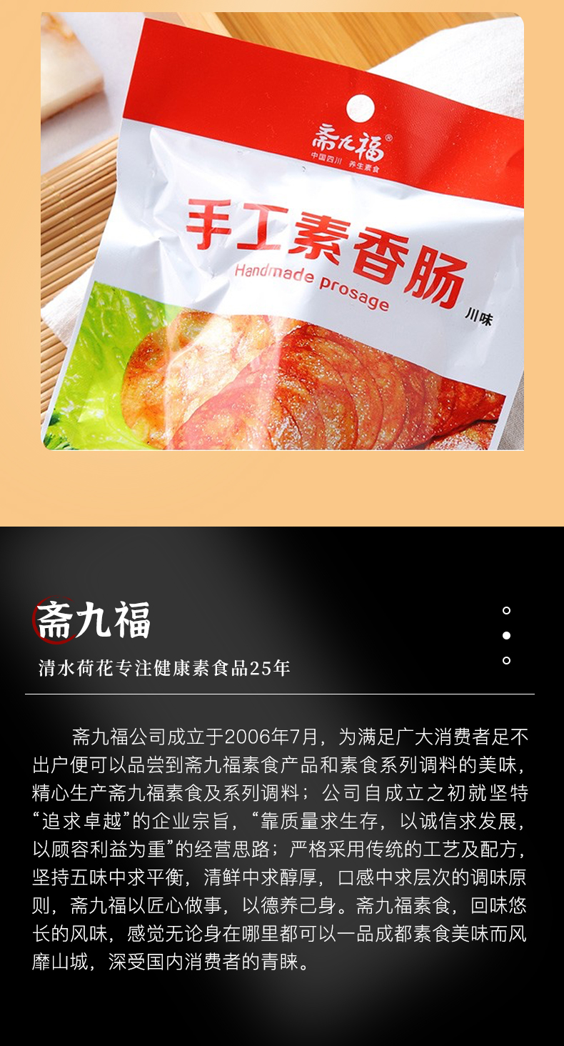 手工素香肠 | 118g*6袋(1根/袋)广味/川味/卤味 开袋即食 斋九福