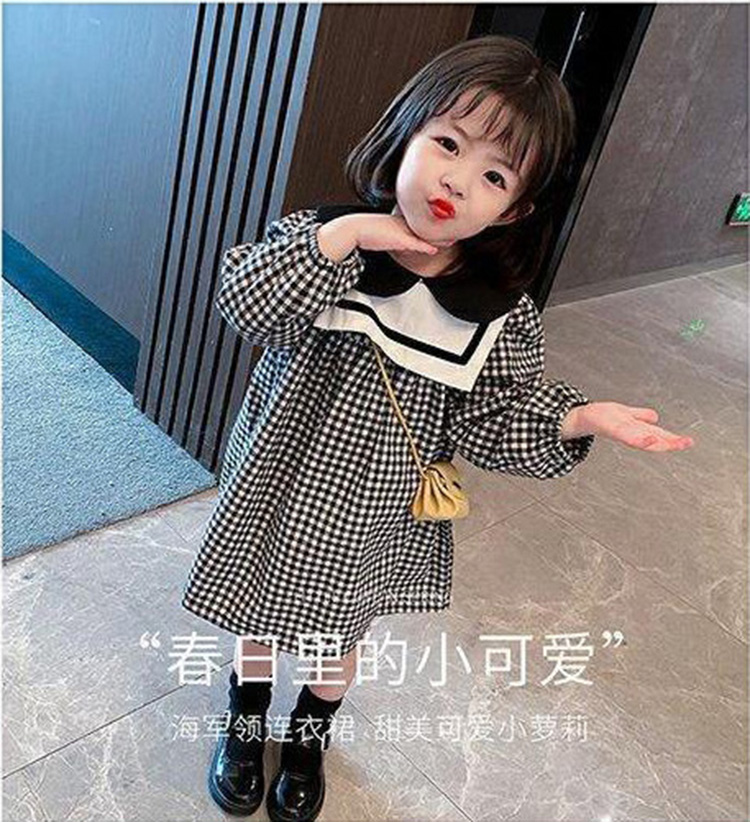【海军领格子连衣裙,增添了童趣和甜美感!】2023春秋装女童海军领格子连衣裙儿童娃娃领公主裙女宝宝洋气裙子心机设计,给孩子们带来舒适的穿着体验!lmsh