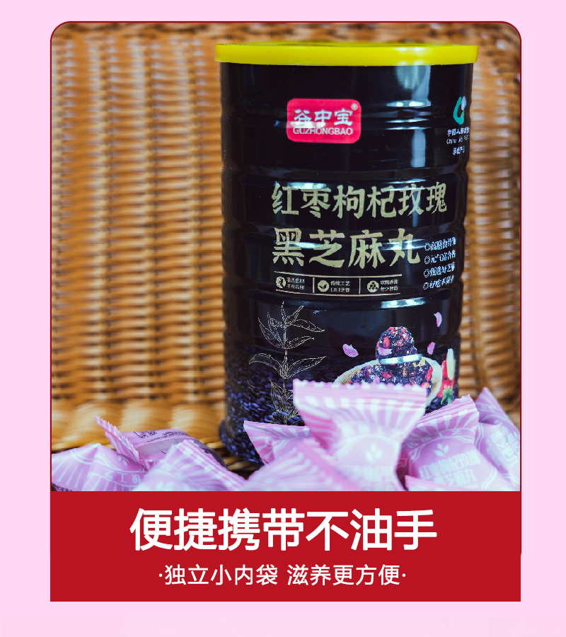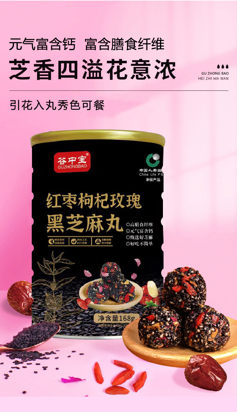 【亲好食品】谷中宝红枣枸杞玫瑰黑芝麻丸168g/罐