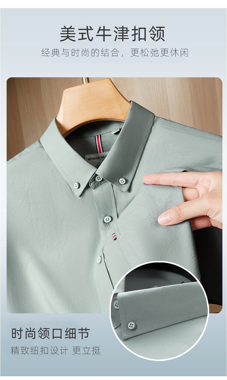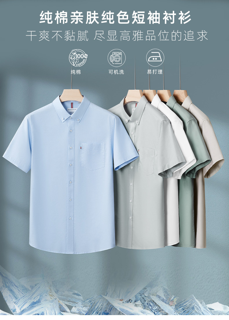 【DKP】【100%棉】大依优型大码男装美式牛津纯棉扣领短袖衬衫商务休闲短袖上衣