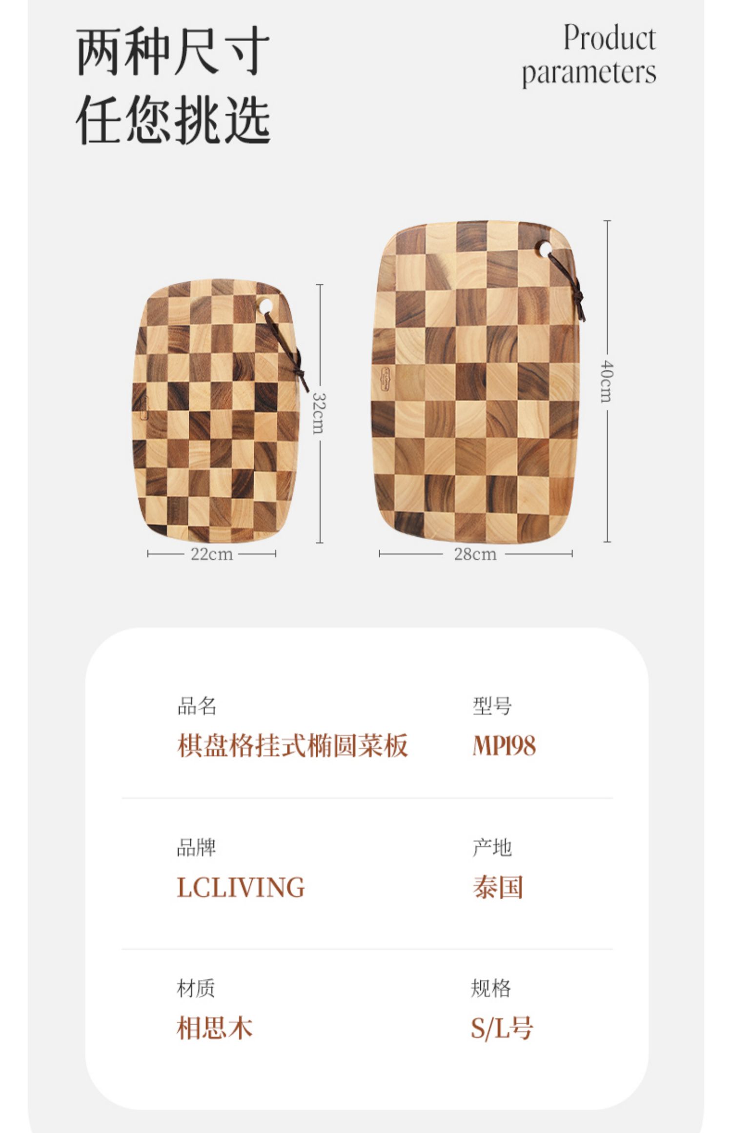 LC LIVING相思木棋盘格挂式椭圆菜板小号