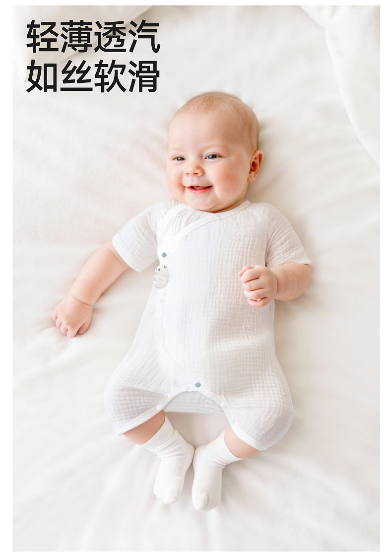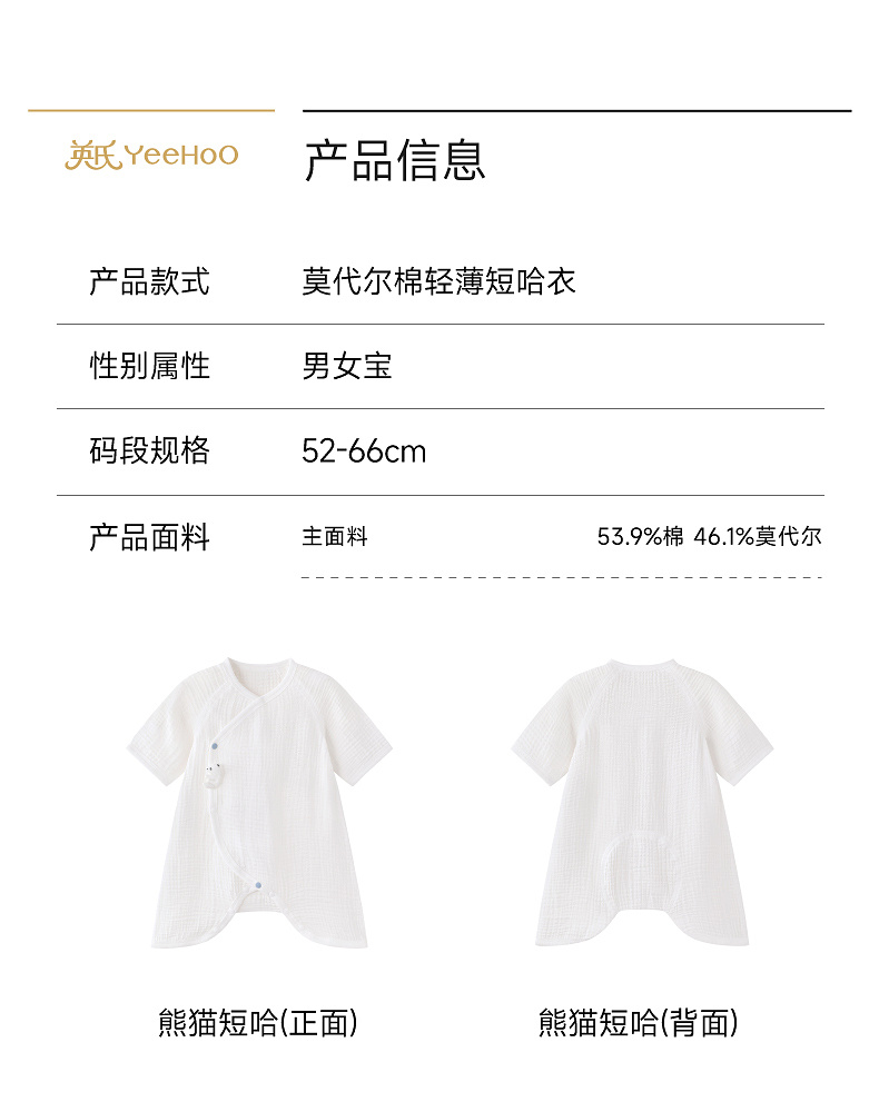 【商场同款】英氏婴儿连体衣夏季莫代尔短袖哈衣宝宝居家连身睡衣