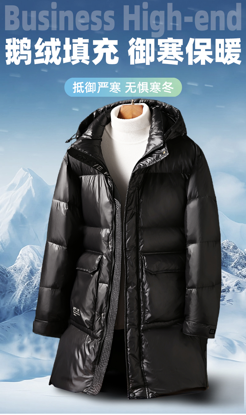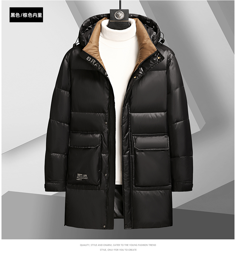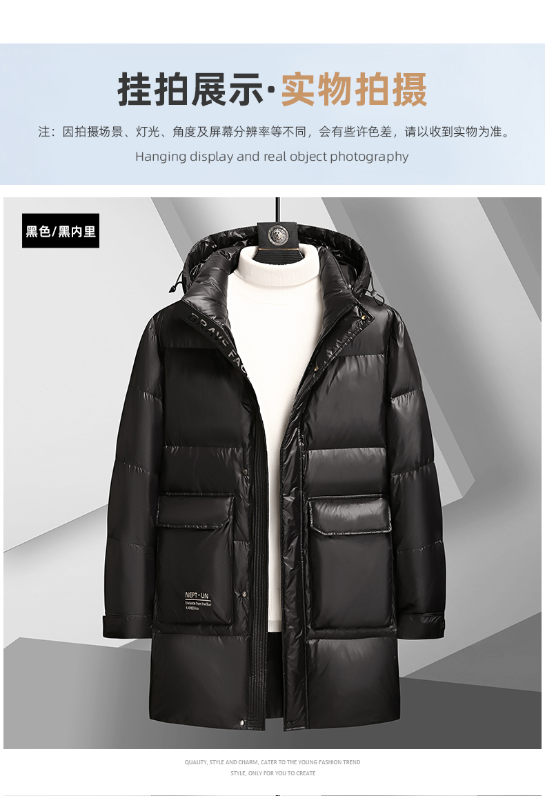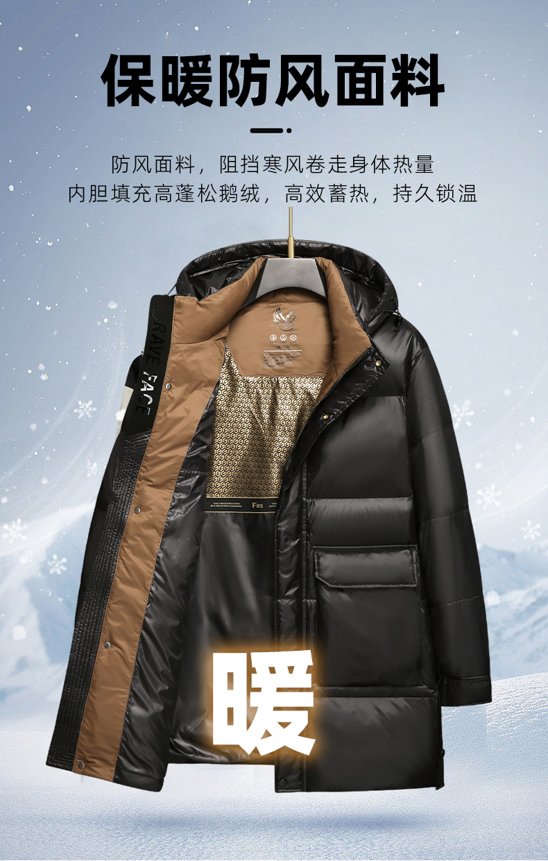 【可拆卸帽】【鹅绒服】【新款DSF】大依优型大码鹅绒中长款羽绒服外套休闲胖子大码男休闲宽松加肥加大上衣