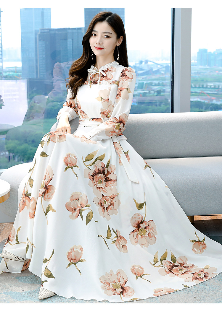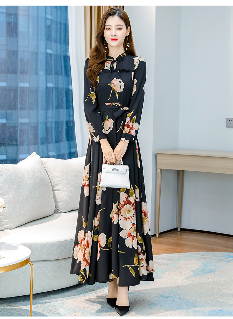 XFFS-1908新款复古大码收腰显高显瘦超长大摆裙ZXH
