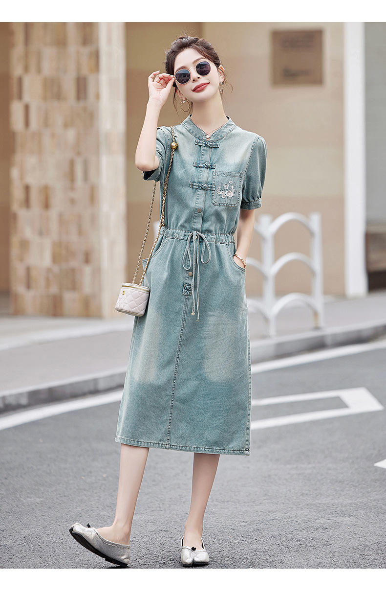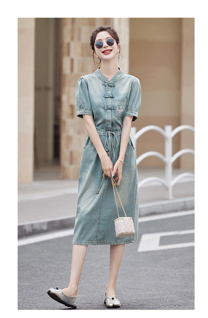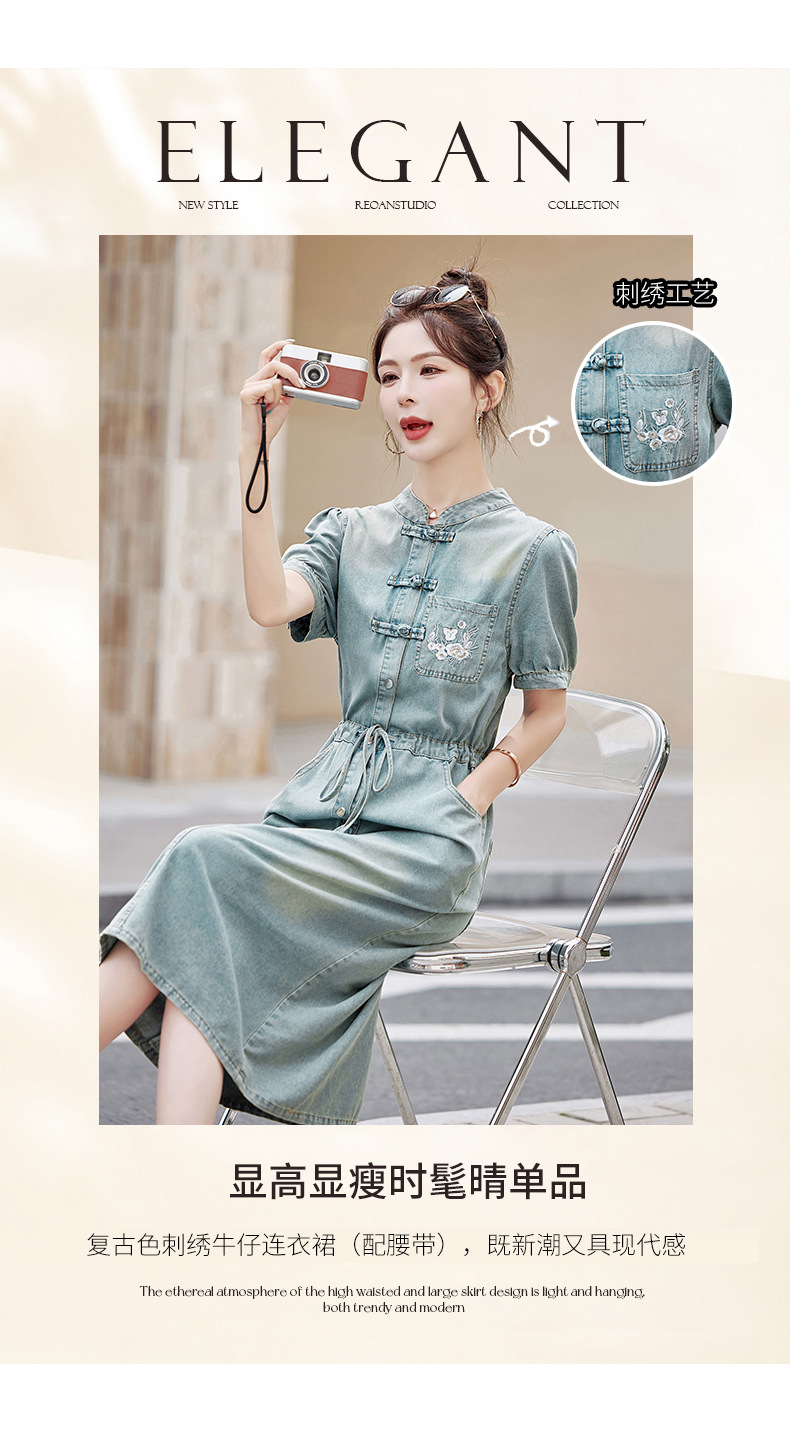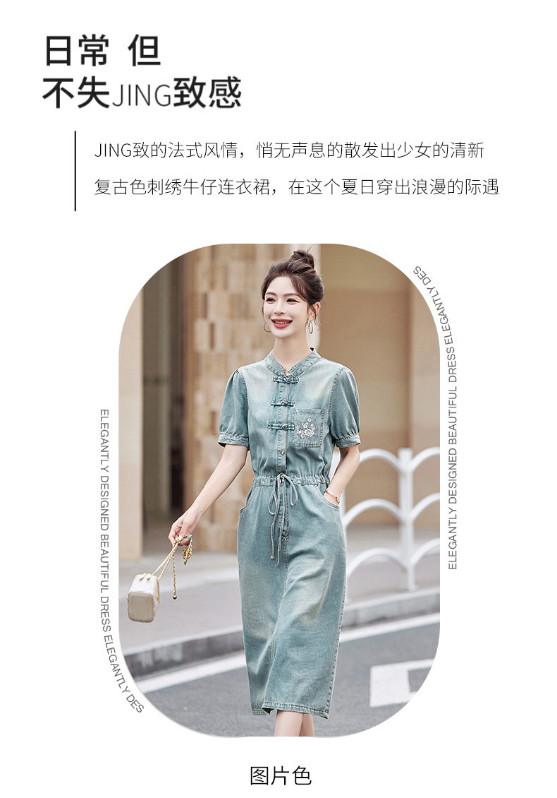 新中式国风牛仔连衣裙2024夏季款时尚洋气薄款收腰显瘦短袖裙子YINXXA615