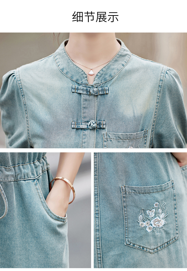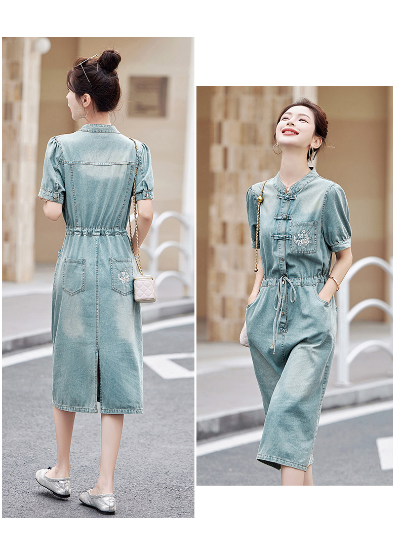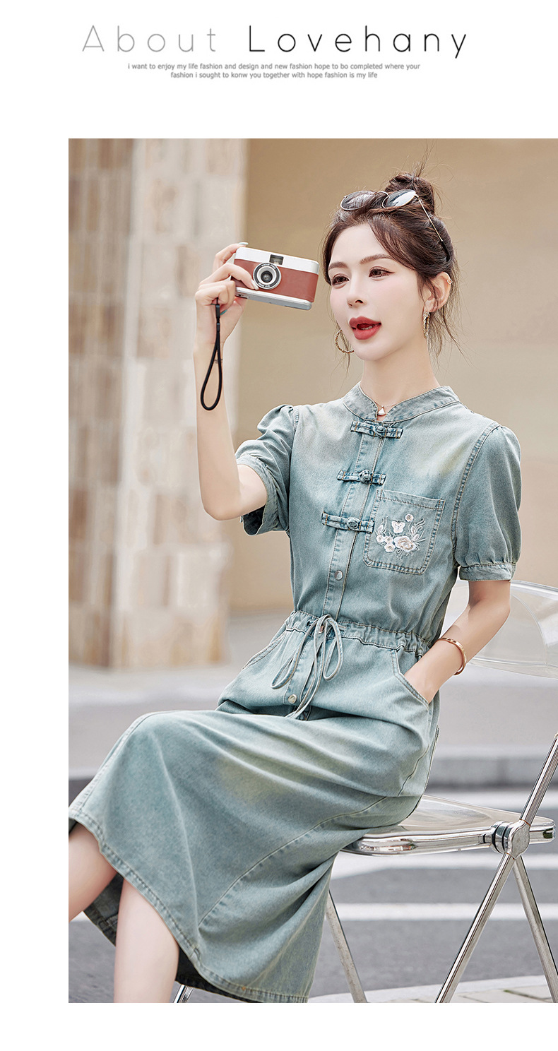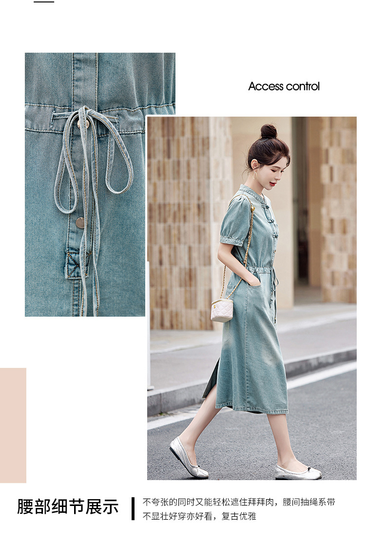 新中式国风牛仔连衣裙2024夏季款时尚洋气薄款收腰显瘦短袖裙子YINXXA615